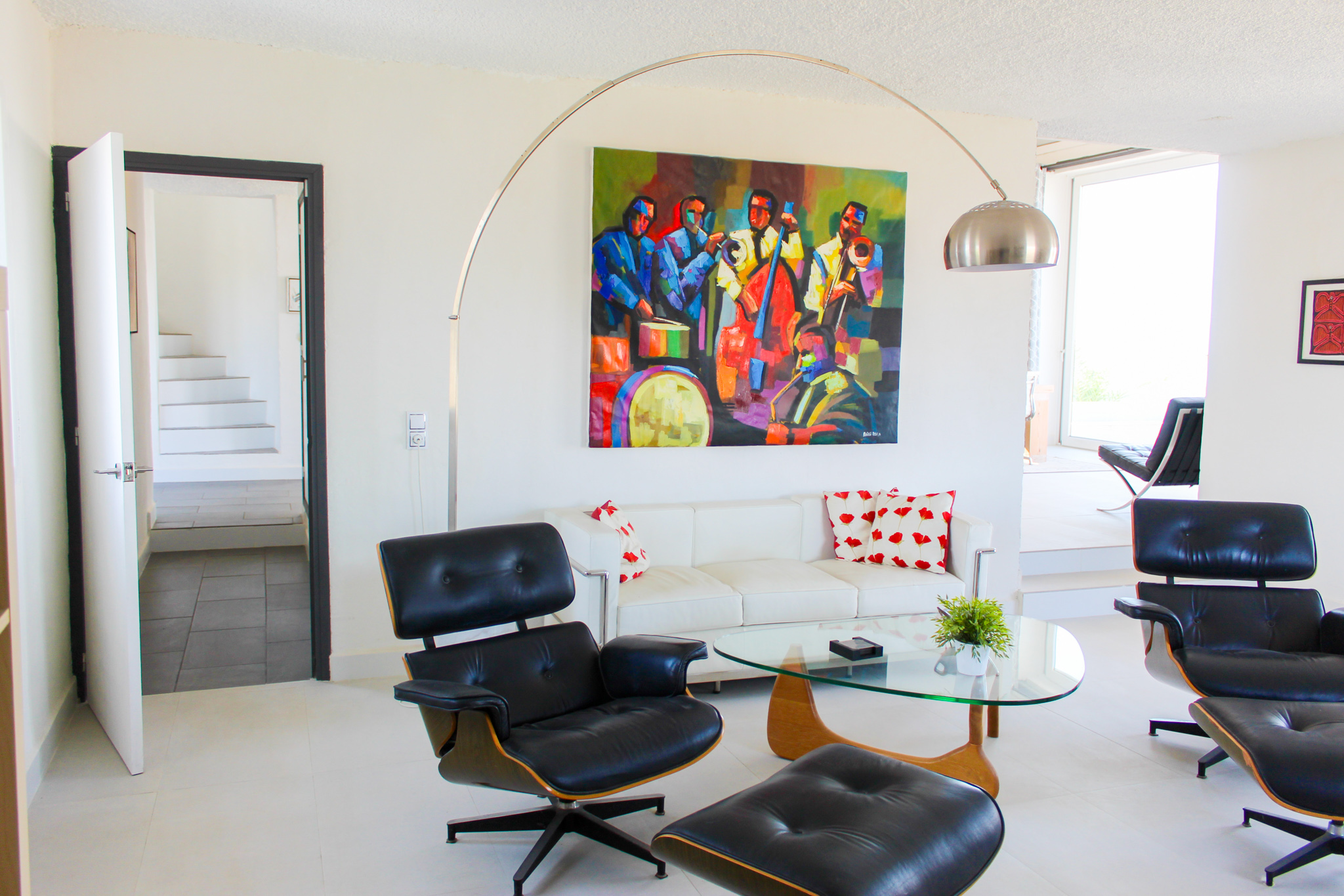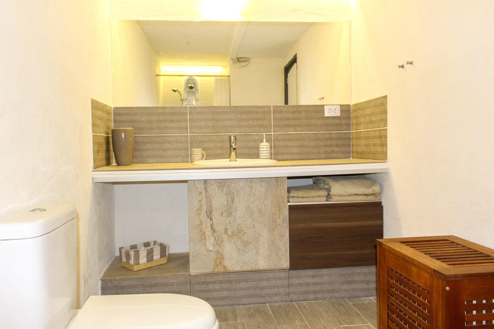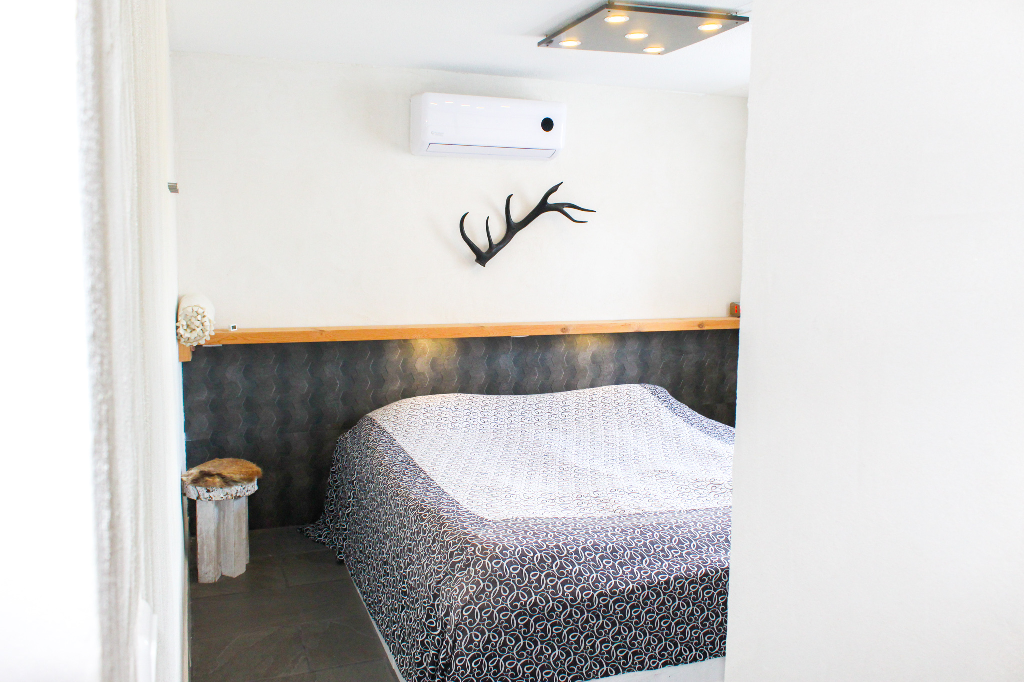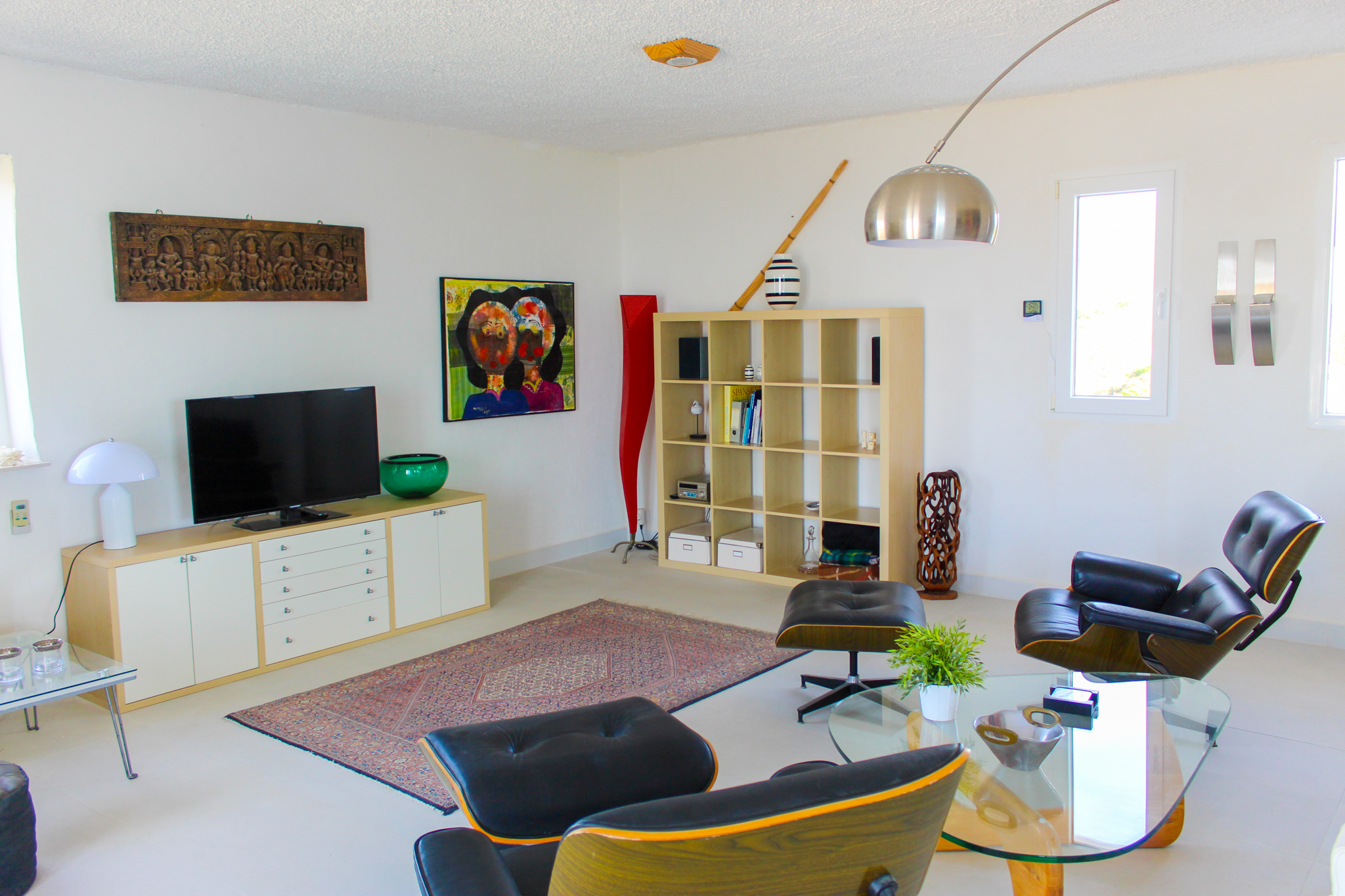 The home consists of a separate garage, 5 rooms of which 2 of them currently function as bedrooms with bathrooms en-suite and 3 additional rooms, which are used as studios, office / storage and a 'meeting room' which will be ideal to use as office if you want to do business from here, as there is a direct entrance from the driveway. There are 3 bathrooms in the residence, 2 of which are connected to the bedrooms. The fifth room, which currently is used as a ‘meeting room’, can easily be integrated with access from the second bedroom and can possibly be used as a large walk-in closet.