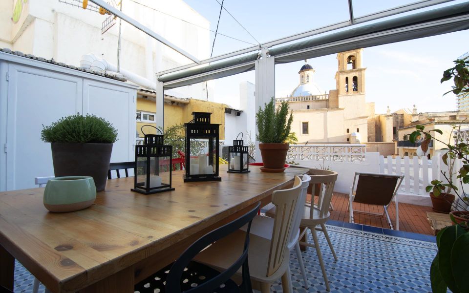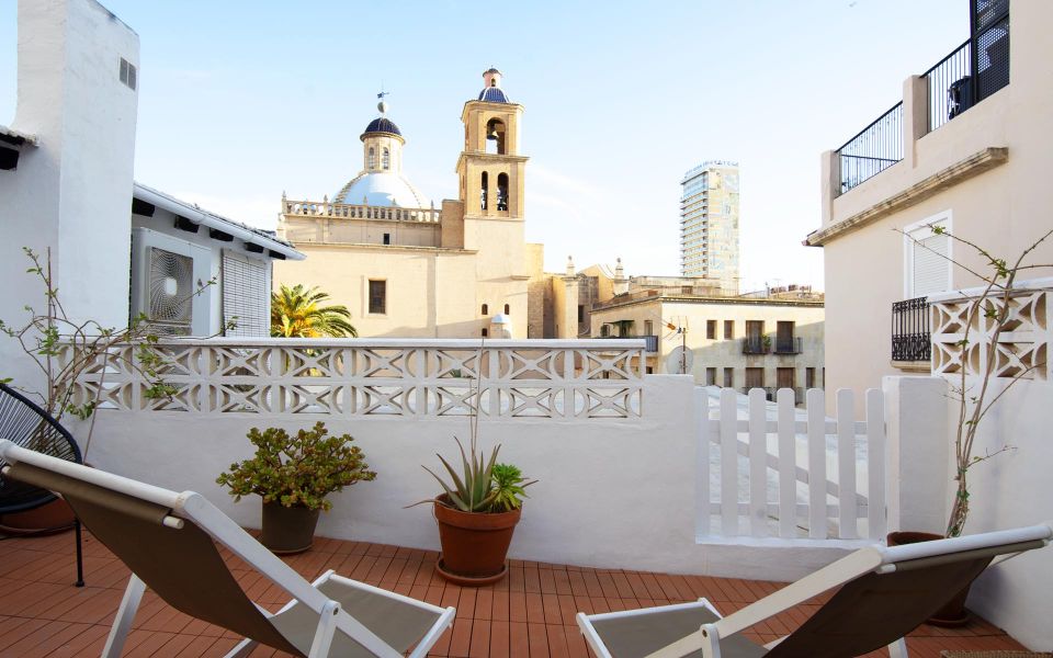 Located in the historic center of Alicante, in one of the most emblematic streets of the neighborhood with views of the cloister of the Co-cathedral of San Nicolás, where you will find a great gastronomic and leisure offer, very good connection with the rest of the city thanks to the countless bus stops that you can find in La Rambla and the Tram stop of the Main Market, which is just a few minutes away. And if you want to go to the beach, the Postiguet awaits you 500 meters away.