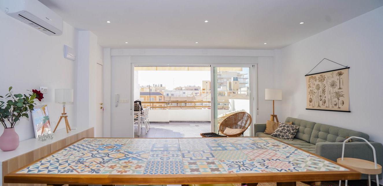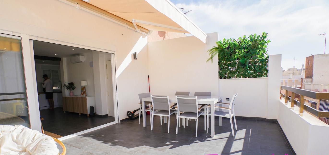 Welcome to this beautiful Penthouse, located in the heart of Santa Pola, with all the shops around it such as supermarkets, restaurants, pharmacies, a few steps from La Plaza La Glorieta and 2 minutes walking from Playa Levante and The Paseo Marítimo. The apartment is completely renovated, with completely new electricity and water installation and air conditioning with hot and cold pump.