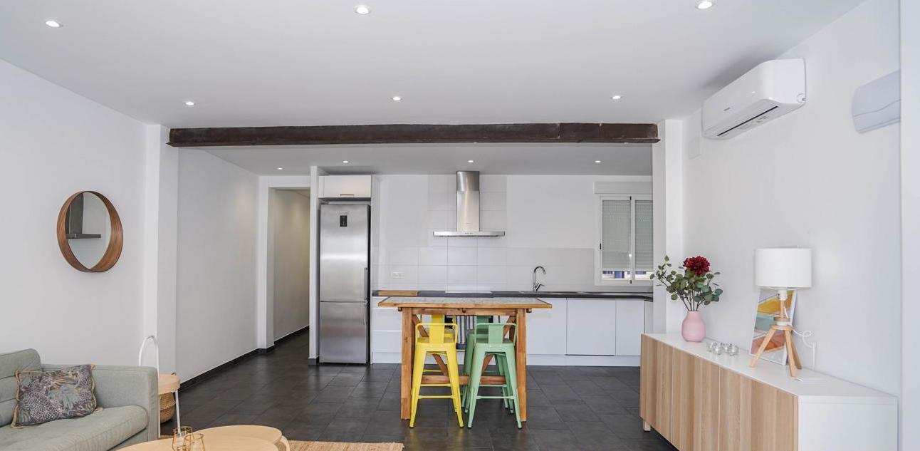 It has 110 m² of construction WITH 3 bedrooms and 1 bathroom, kitchen incorporated into the living room and a beautiful and large terrace (25 m²) facing south where you can enjoy the sunny days.