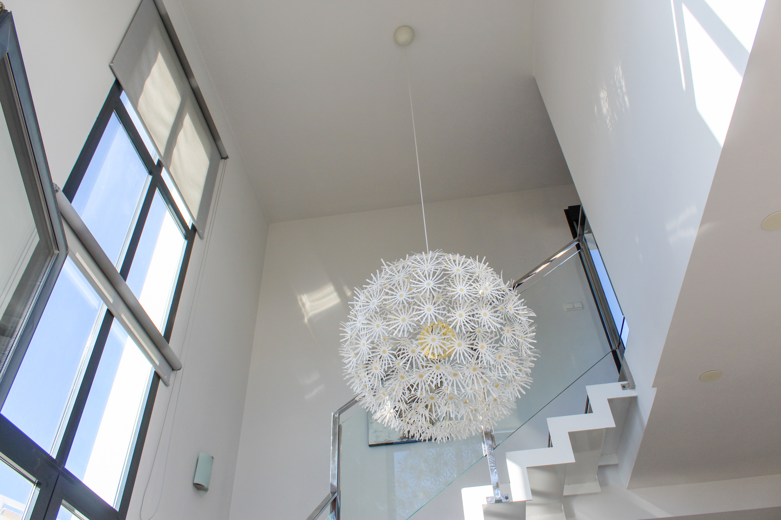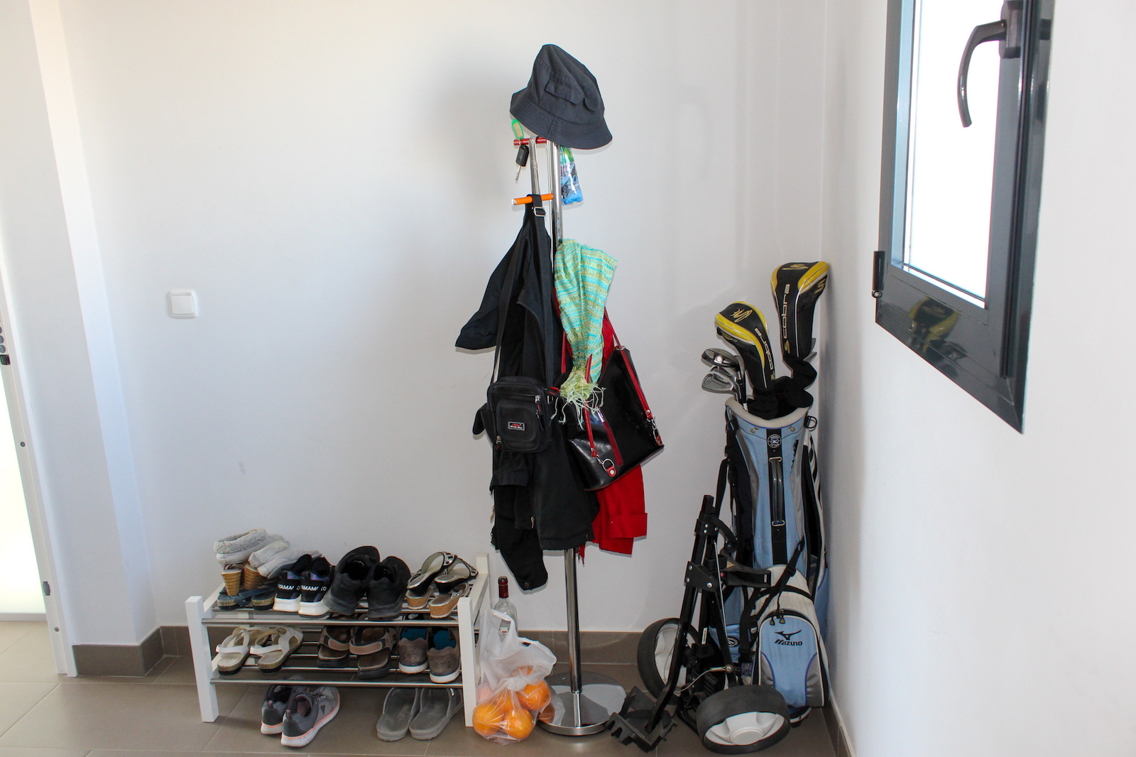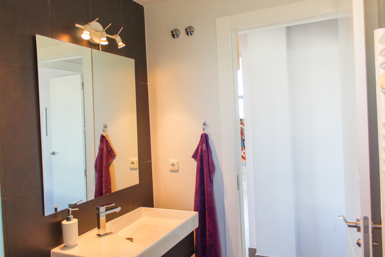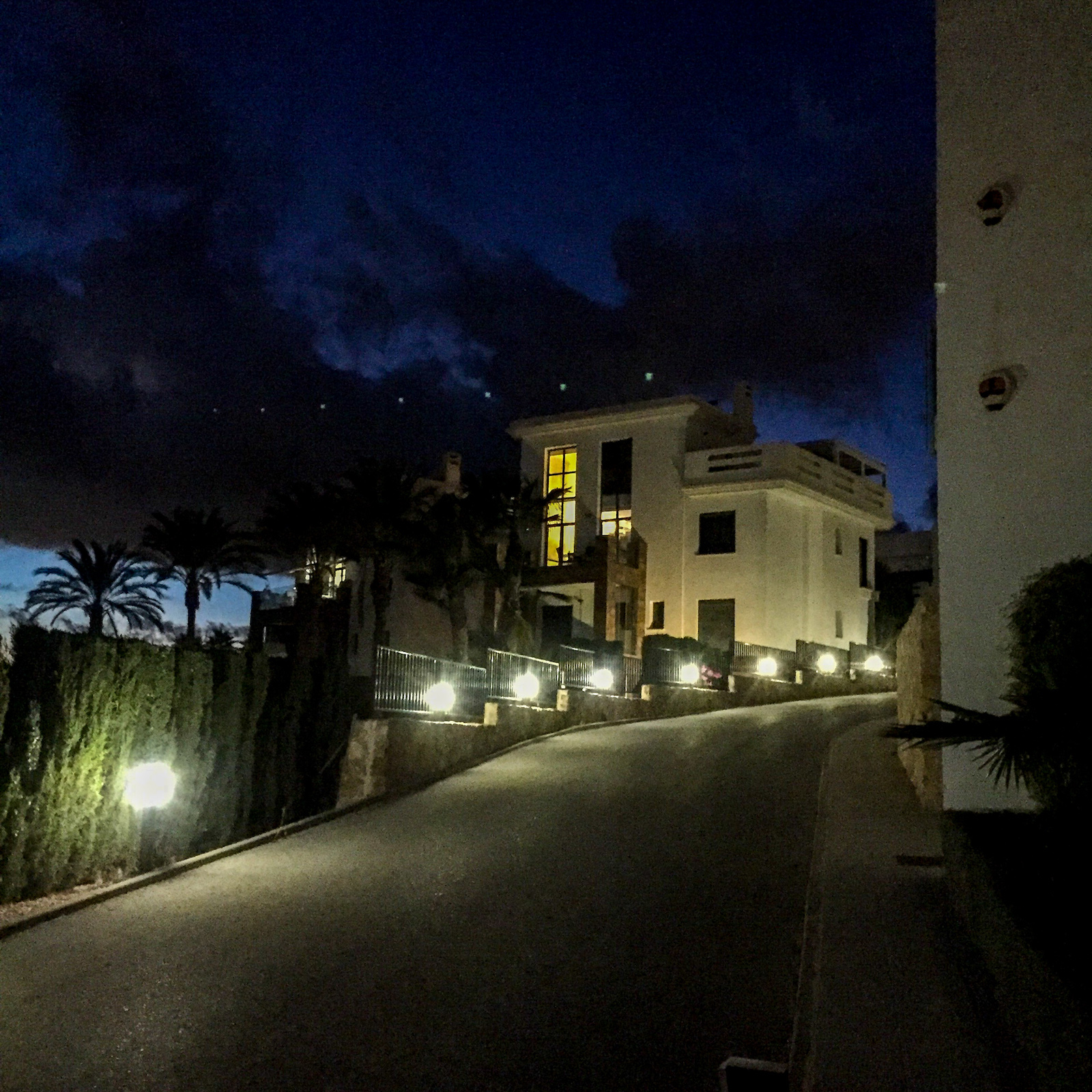 The home is located on the first floor and when you come up the stairs, there is a large landing which is used for storage of, for example, golf bags and entrance, where jackets and footwear are placed before entering the home. On the ground floor of the home, you have a large, bright kitchen/living room with a modern kitchen, dining room and living room. In this room, as previously mentioned, there is a fantastic amount of light, as well as a ceiling height that gives a fantastic feeling of space. From the kitchen / family room there is access to a 12 m2 large south-facing terrace from which you can enjoy the view of the pool area, the golf course, the Mediterranean Sea, and the beautiful lights down on the coast in the evening. In addition to the kitchen/living room, there are 2 good bedrooms with fitted wardrobes and a bathroom.