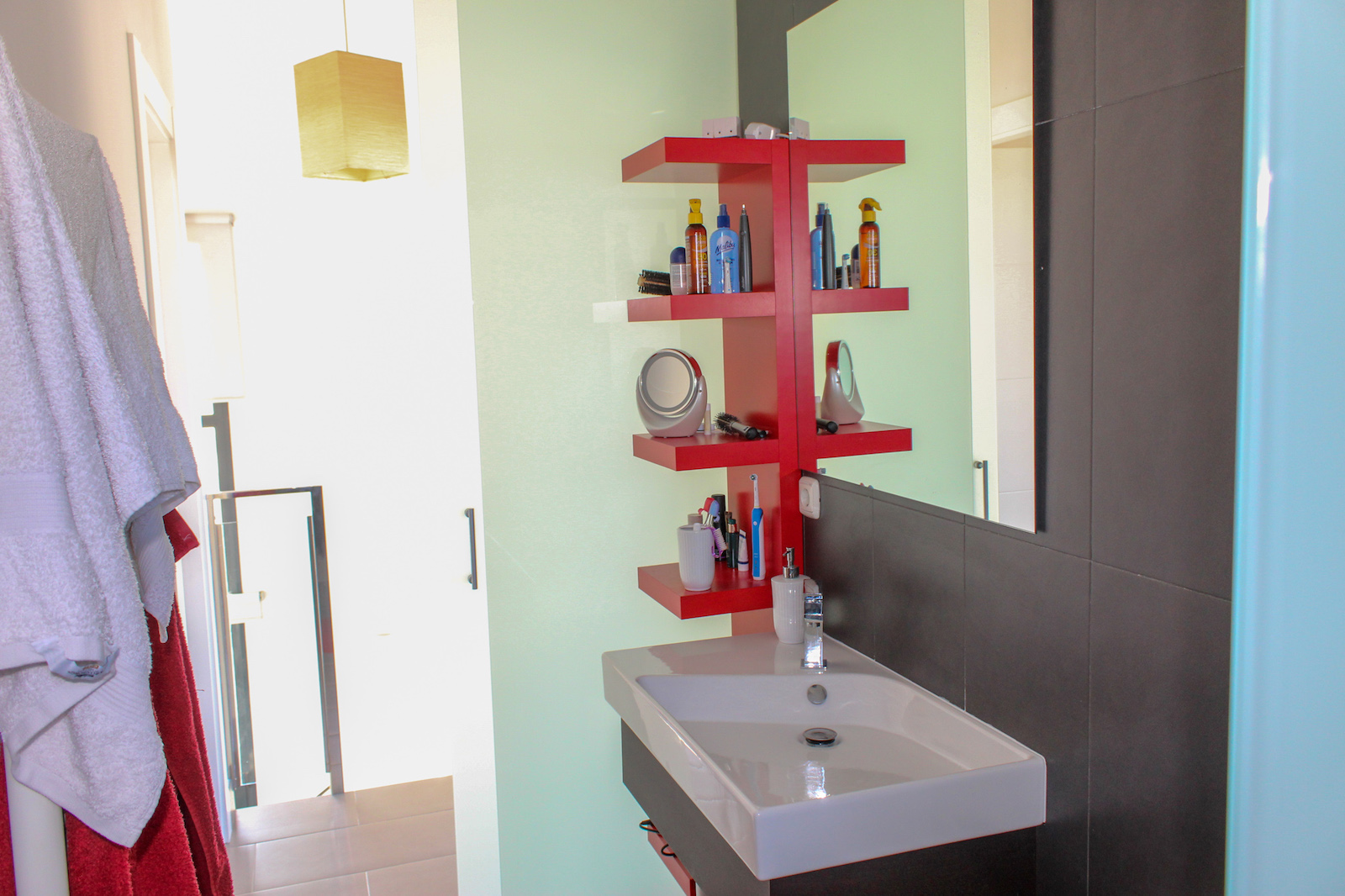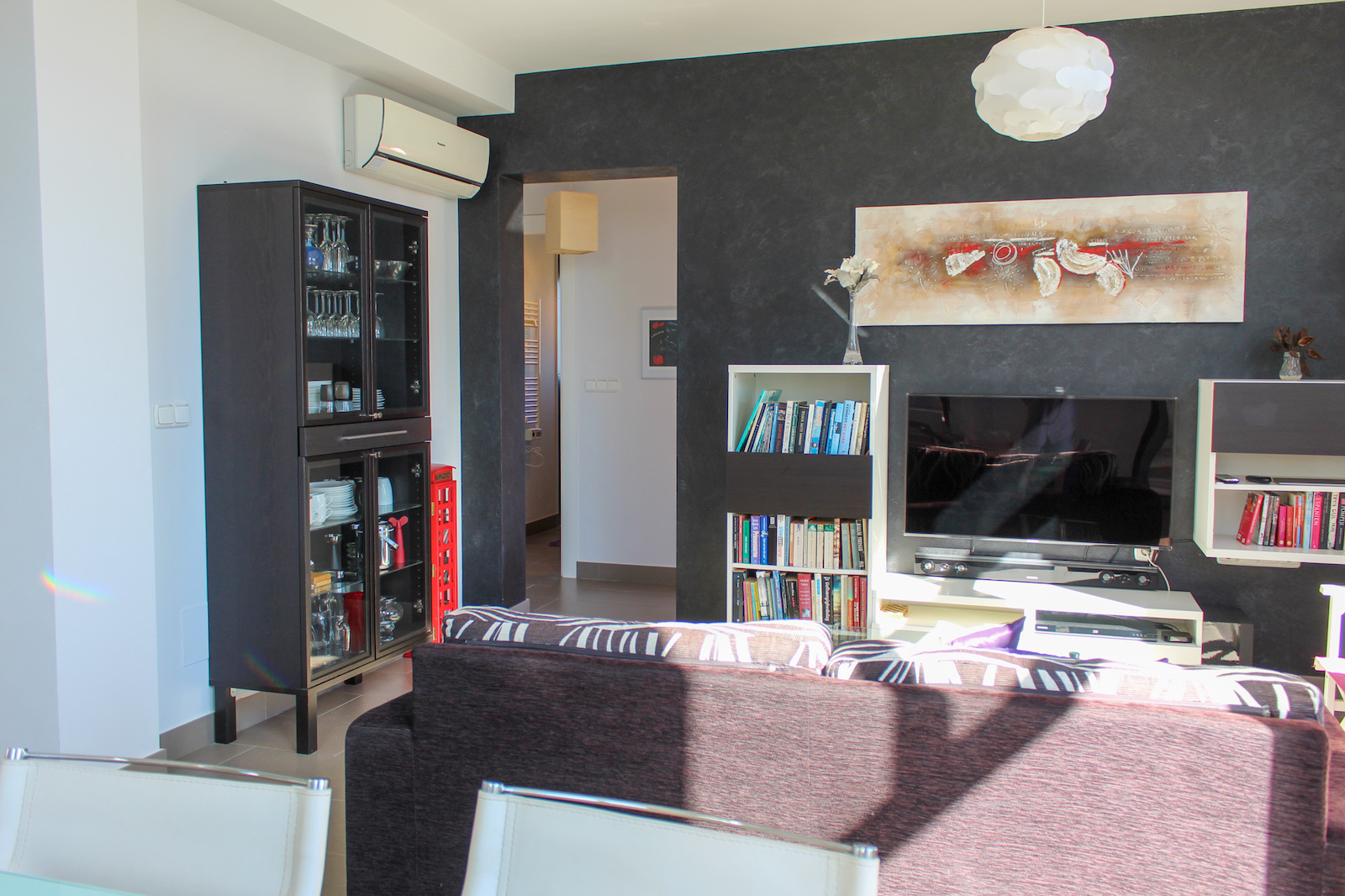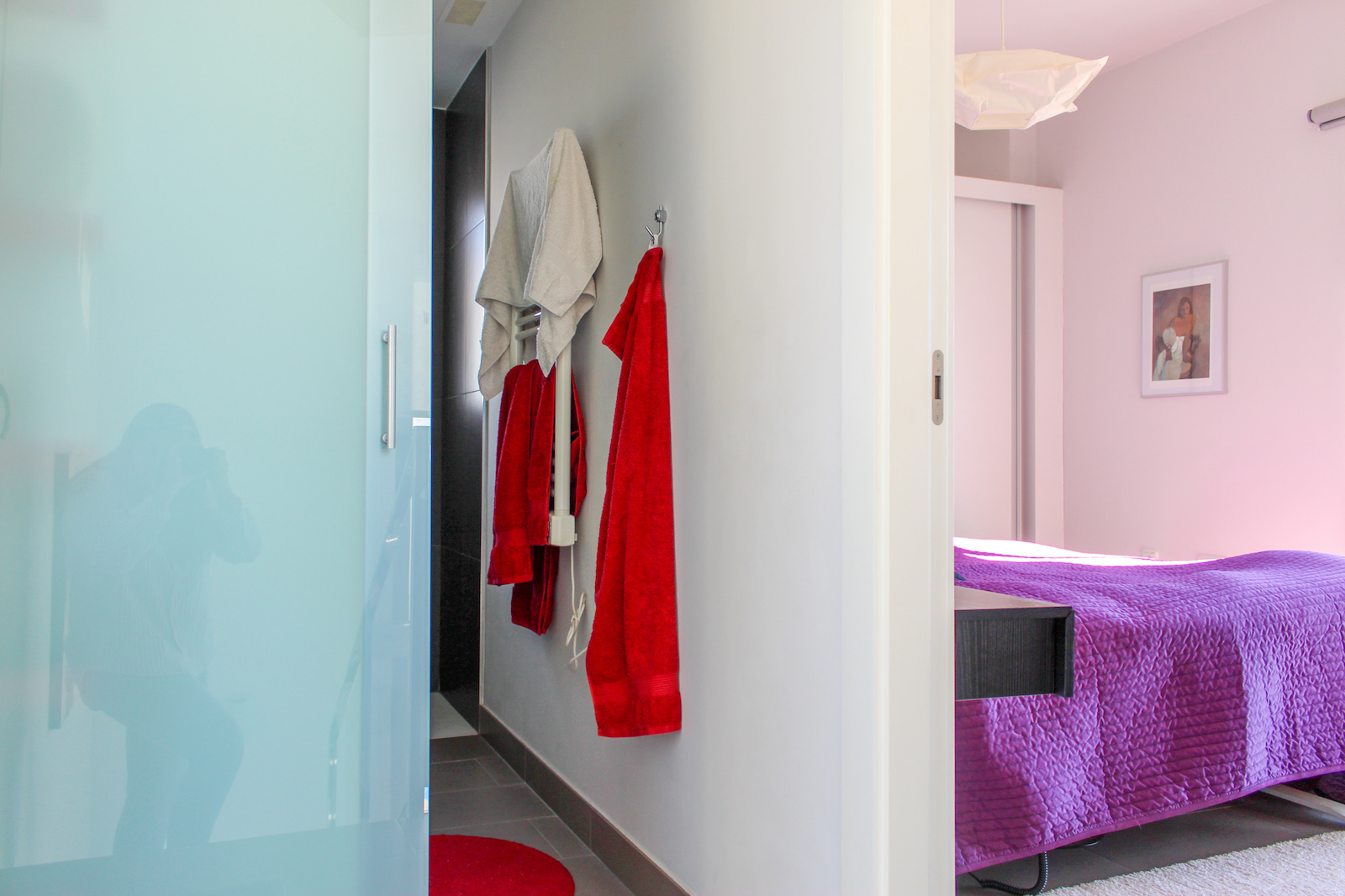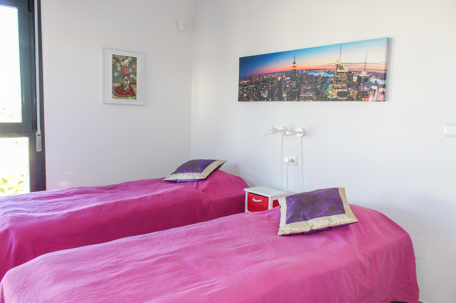 On the first floor you will find the home's master bedroom, from which you also have a fantastic view of the Mediterranean, as well as a bathroom and the 69 m2 large roof terrace. On the roof terrace, the seller has made storage space along the entire one side, where a refrigerator is also installed. They have also installed a pergola, which allows you to close both the sides and the top when you need shade from the back sun - or shelter from the wind. This means that the roof terrace can be used all year round. There is air conditioning throughout the home, and it is sold furnished and is therefore completely ready to move in!
