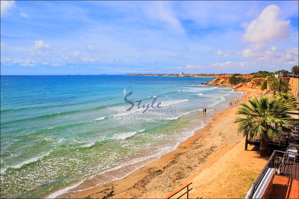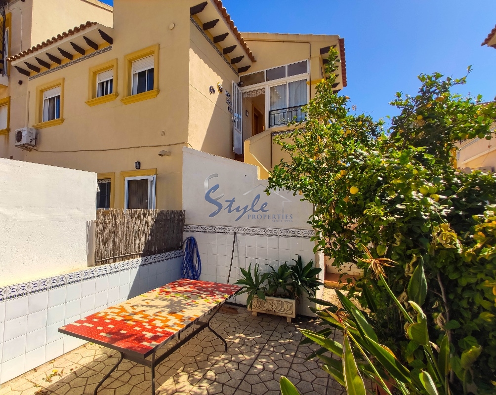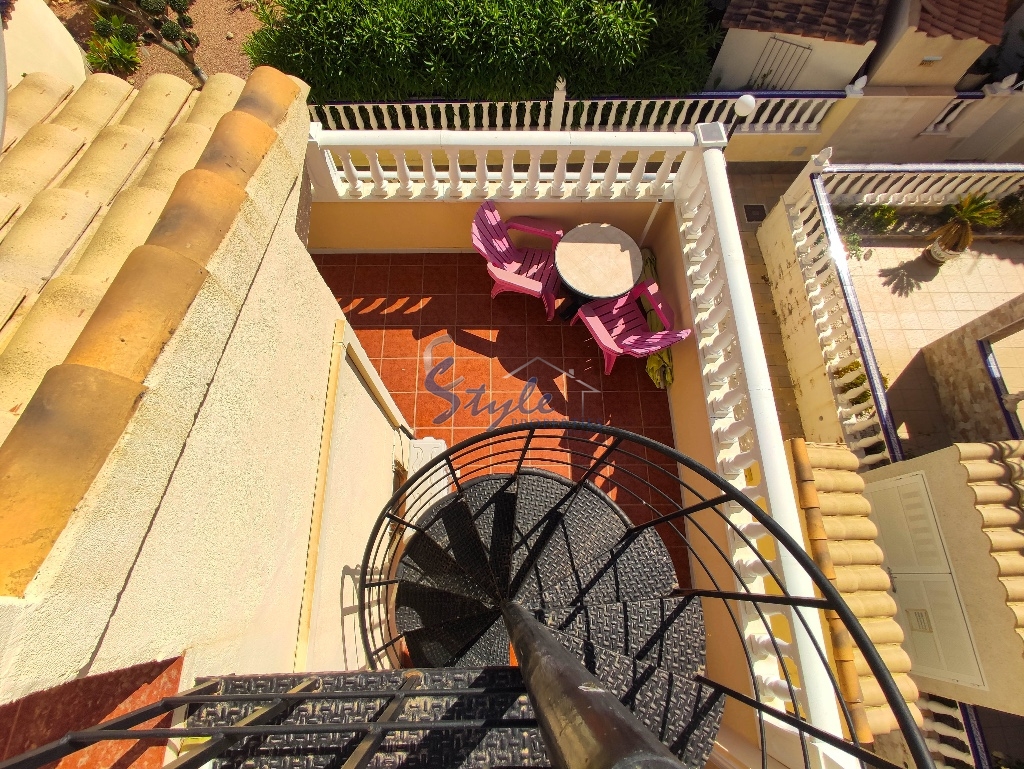 Cozy and bright top floor bungalow with patio, large terrace and private solarium, from where you can enjoy views of the sea, in a cozy and perfectly located urbanization La Campana, in the heart of Punta Prima, with nice communal areas and a swimming pool.