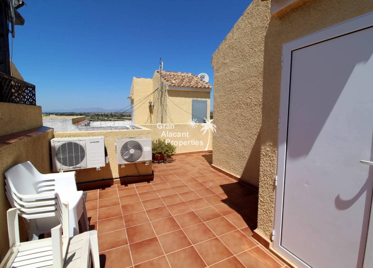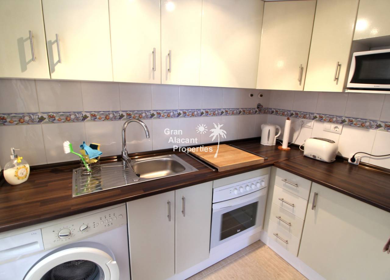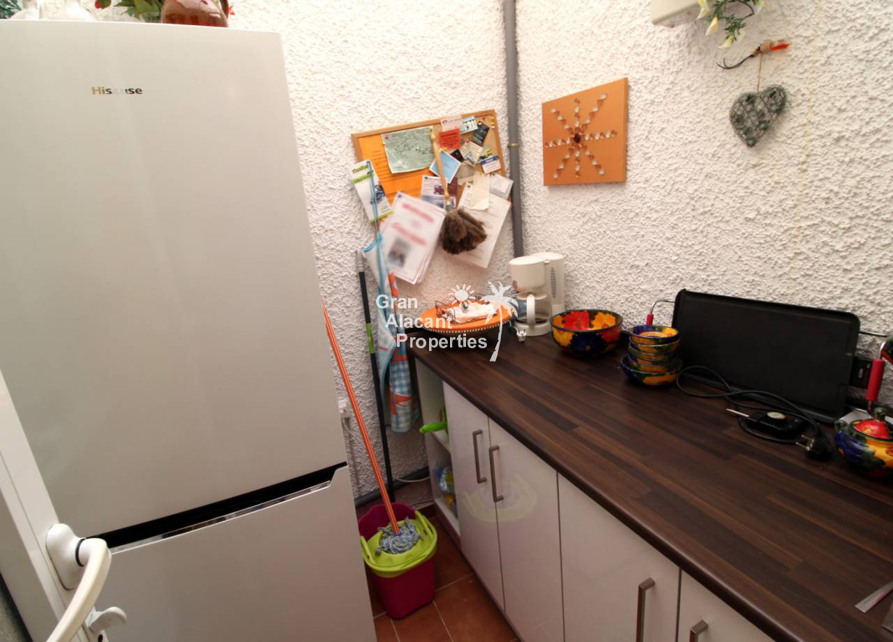 This property has an unbeatable location on a sought after community with pool in lower Gran Alacant just a few minutes walk to the local amenities. Within a few minutes walk, you will find cafes, restaurants, hairdressers, supermarkets, banks and so much more. Also within easy walking distance, there is the local church, dog park, more supermarkets, dentists etc. Nature lovers and bird watchers will be happy to know the Clot del Galvany is just a 10-minute walk away offering acres of unspoiled wetlands to explore as well as ruins of Civil War bunkers. There are stops for the bus and tourist train close by offering an inexpensive way to get around the area. The beautiful sandy beaches of Los Arenales and Carabassi are about 30 minutes away on foot or 2 minutes away by car.