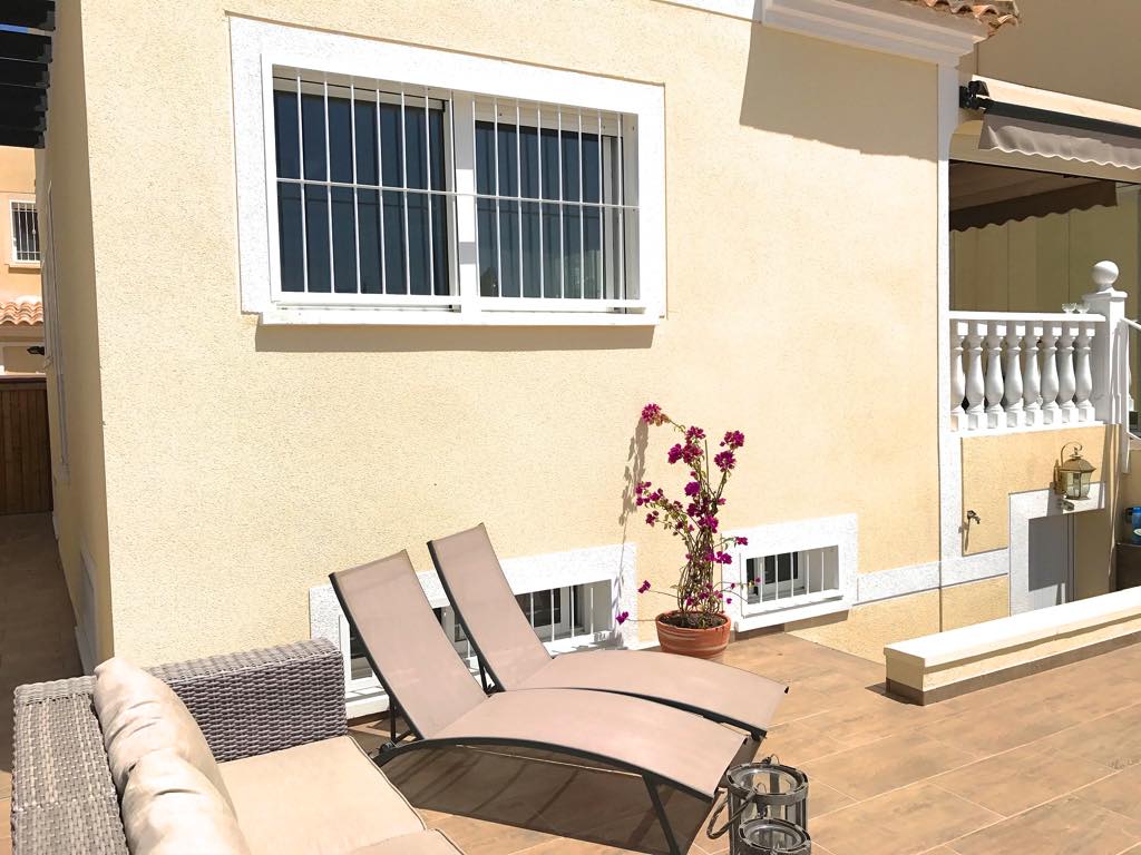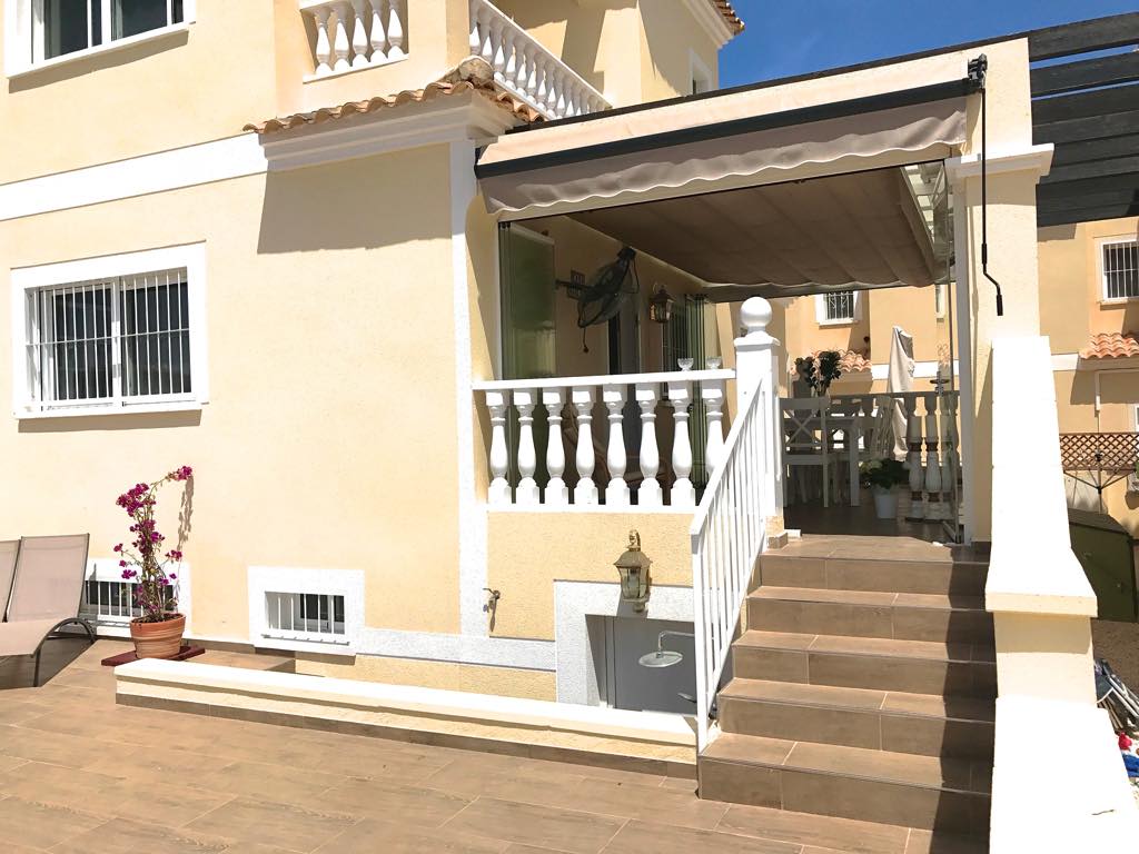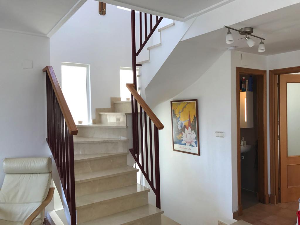 On the first floor you will find 2 double bedrooms and a bathroom. The villa has a huge basement, in where there are made 3 rooms and a bathroom as well. Furthermore you will also find a huge storage room/workshop. The villa is a part of a community and has access to communal swimming pool.