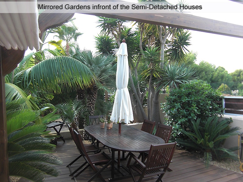 Two semi-detached houses - 140 m2 each with tropical gardens and private parking in prime location with views for sale. The houses are 275.000 € each, but with the possibility of buying both for 500.000 €. Good renting potential.