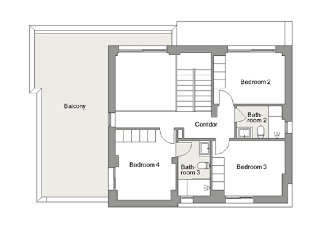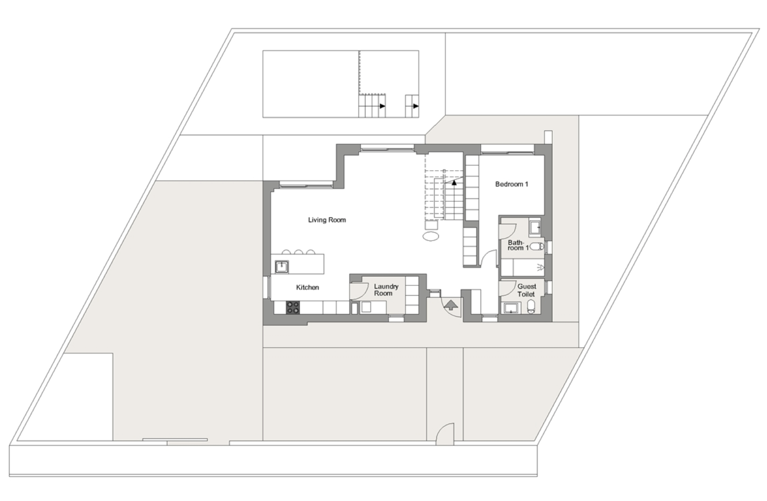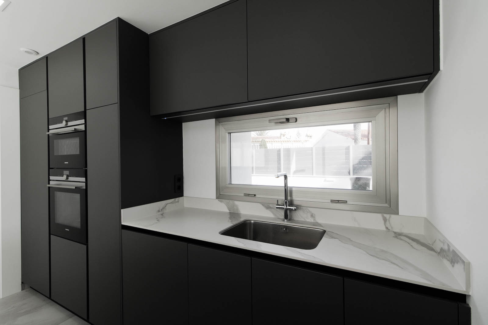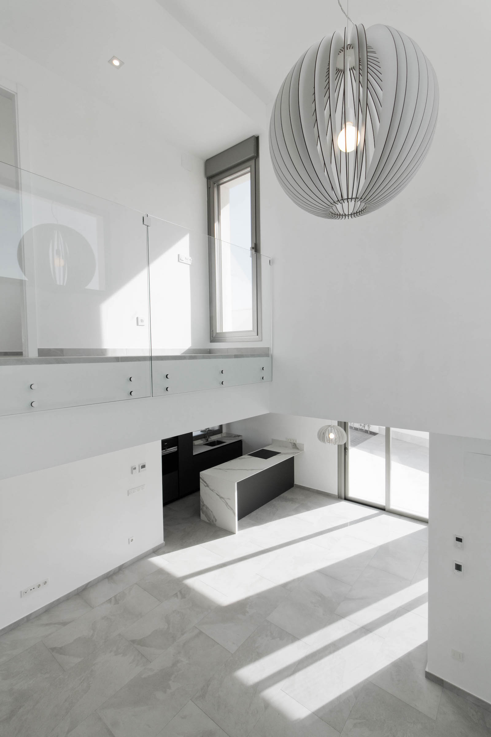 On the ground floor you will find a spacious kitchen-dining room with direct access to the pool area and double ceiling height with a view to the first floor, which gives a nice light to the kitchen and dining area. The kitchen is equipped with Siemens appliances. From the kitchen there is also access to a utility room. In addition, on the ground floor, there is a bedroom en-suite as well as a guest toilet.