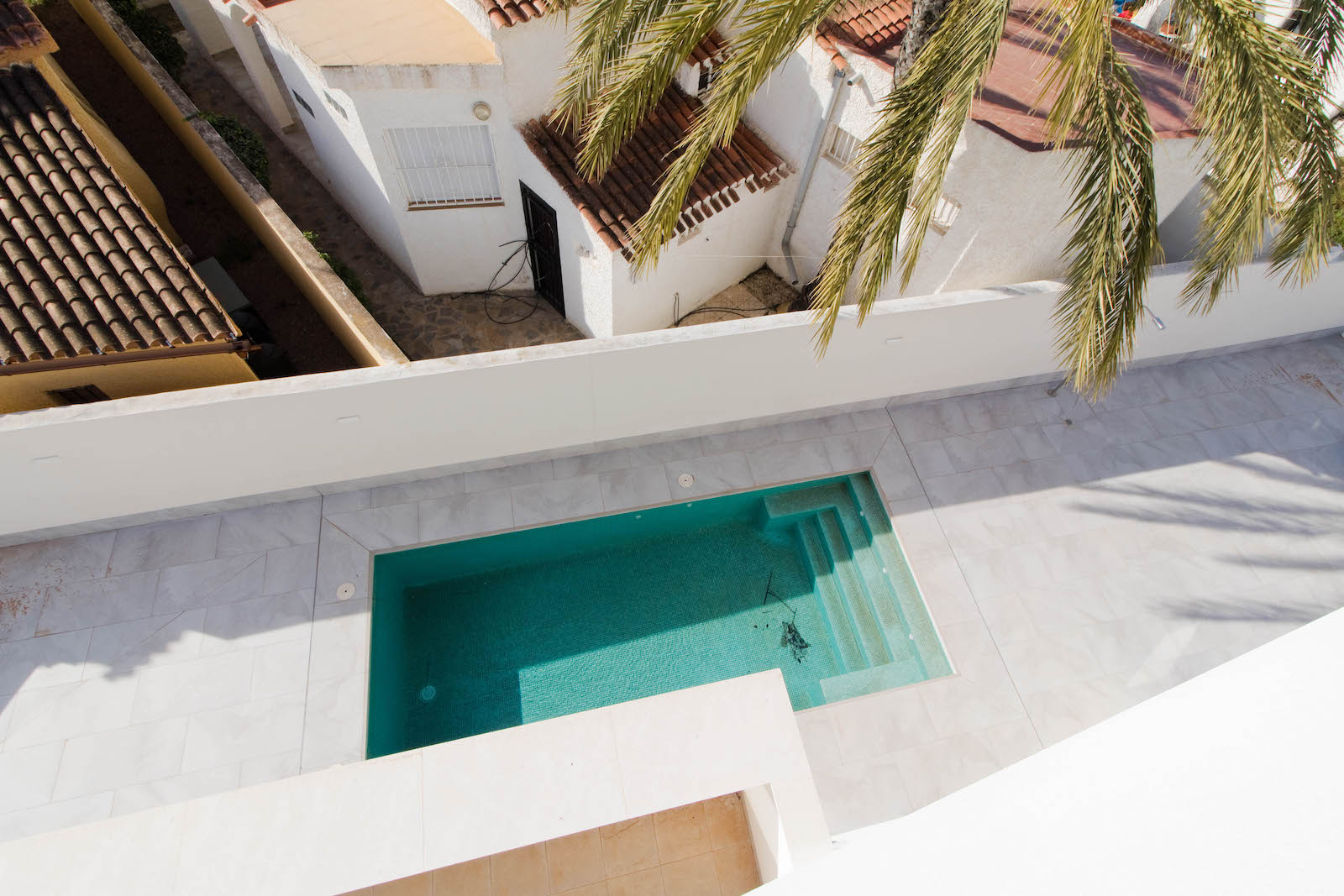 The first floor consists of 3 bedrooms and 2 bathrooms, one of which has an en-suite bathroom. All rooms in the house have fitted wardrobes. From the distribution corridor, there is access to a large terrae and roof terrace overlooking the city and the sea on the horizon. The pool is strategically located south facing, which ensures you to enjoy the sun all day. In addition to this, there are good parking conditions both inside the plot itself, via the electric gate, as well as on the road.