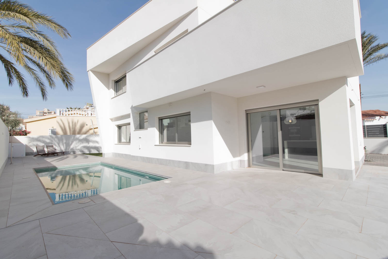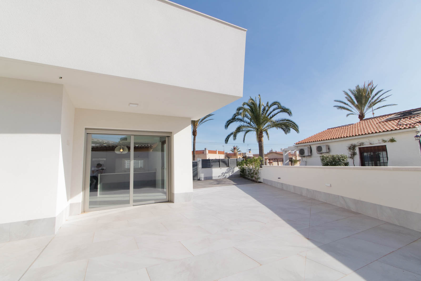Lovely new-build villa on 2 levels, located in one of Torrevieja’s many popular neighborhoods – surrounded by restaurants and bars within walking distance. The villa is located just a 20-minute walk from the popular sandy beach, Playa de los Locos.
