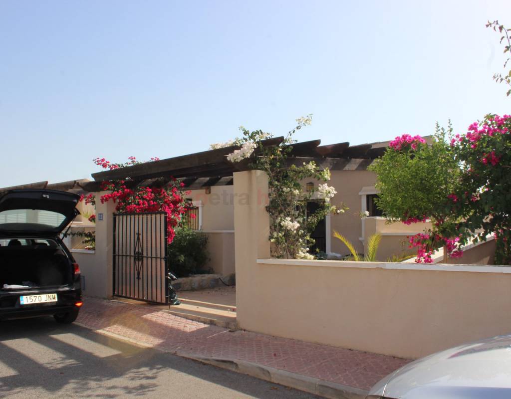 This nice south facing townhouse is situated in Ciudad Quesada and has a living area of 101 sqm. The house consists of three bedrooms, two bathrooms, a toilet, large living room with lounge area, spacious and fully furnished kitchen, an utility room and a storage room.The house has air conditioning and fitted wardrobes. OUTDOOR AREA The townhouse is located in a complex with 16 houses. Here you will find a large swimming pool which can only be used by the residents. The townhouse has a 142 sqm plot, with an area for parking, nice seating areas and a lovely balcony on the first floor with fantastic views over the surrounding area. AREA The property is located in Ciudad Quesada, a charming place on the Costa Blanca. Here you will find an 18-hole golf course, tennis courts, spa, water park, bowling, mini golf, shops, bars, restaurants and much more. The beautiful beaches of Guardamar and La Mata is just a 10 minute drive from Quesada. Torrevieja, a cozy city with a vibrant city life, is only a 10 minute drive away. The airports in Alicante and San Javier / Murcia are about 40 minutes away.