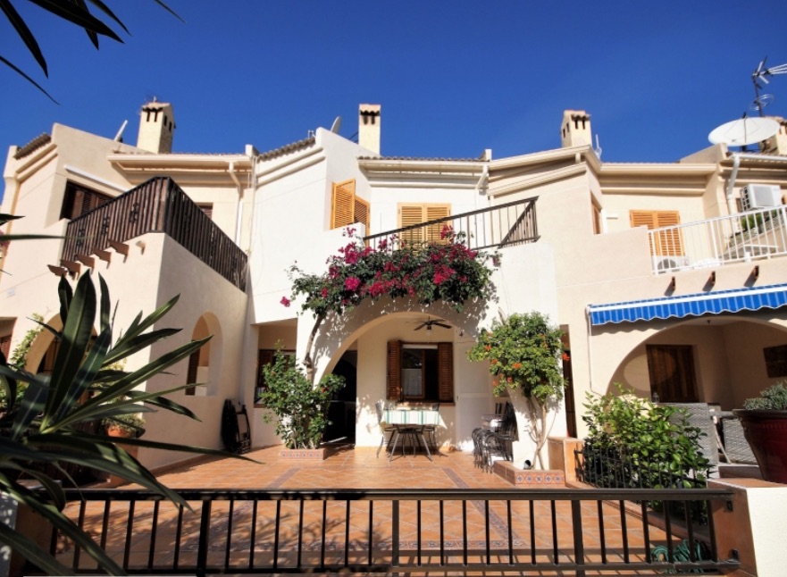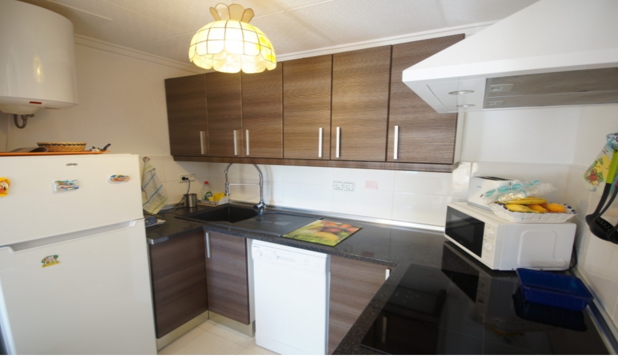 Available this SUNNY townhouse East-facing located in a fabulous position in Urb Buenavista close to the blue flag beaches of Playa El Rebello, Guardamar. The property has 2 bedrooms, 1.5 bathroom with a lovely balcony with great views of the area. The accommodation of 62 m2 is over 2 floors, starting on the ground floor, entrance a fully tiled front garden of 25 m2 with plenty of room to sit and relax. A covered terrace ideal for al fresco dining leads to a fabulous modern lounge/ diner with feature fireplace, also a newly fitted open plan kitchen that has granite worktops and fully equipped with appliances, a storage cupboard and there is also a separate WC with sink. Stairs lead to the first floor, two bedrooms with wardrobes, the master bedroom ....