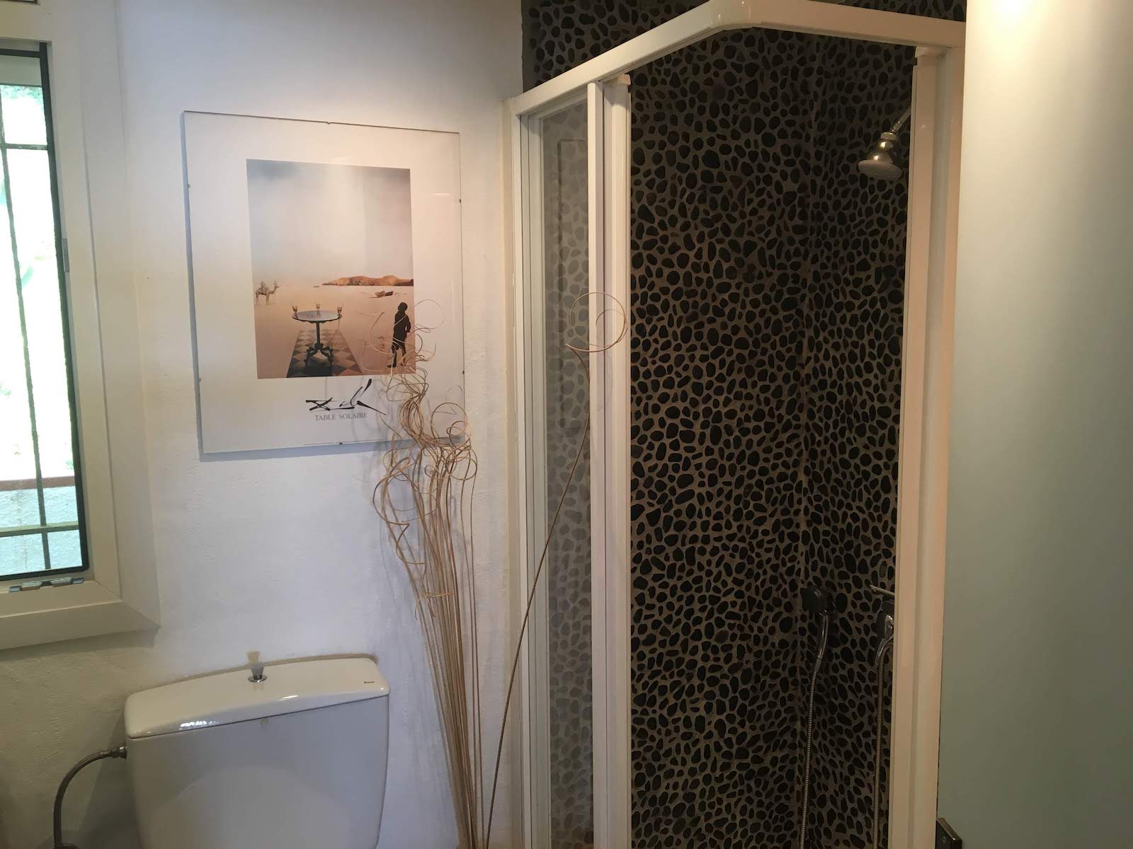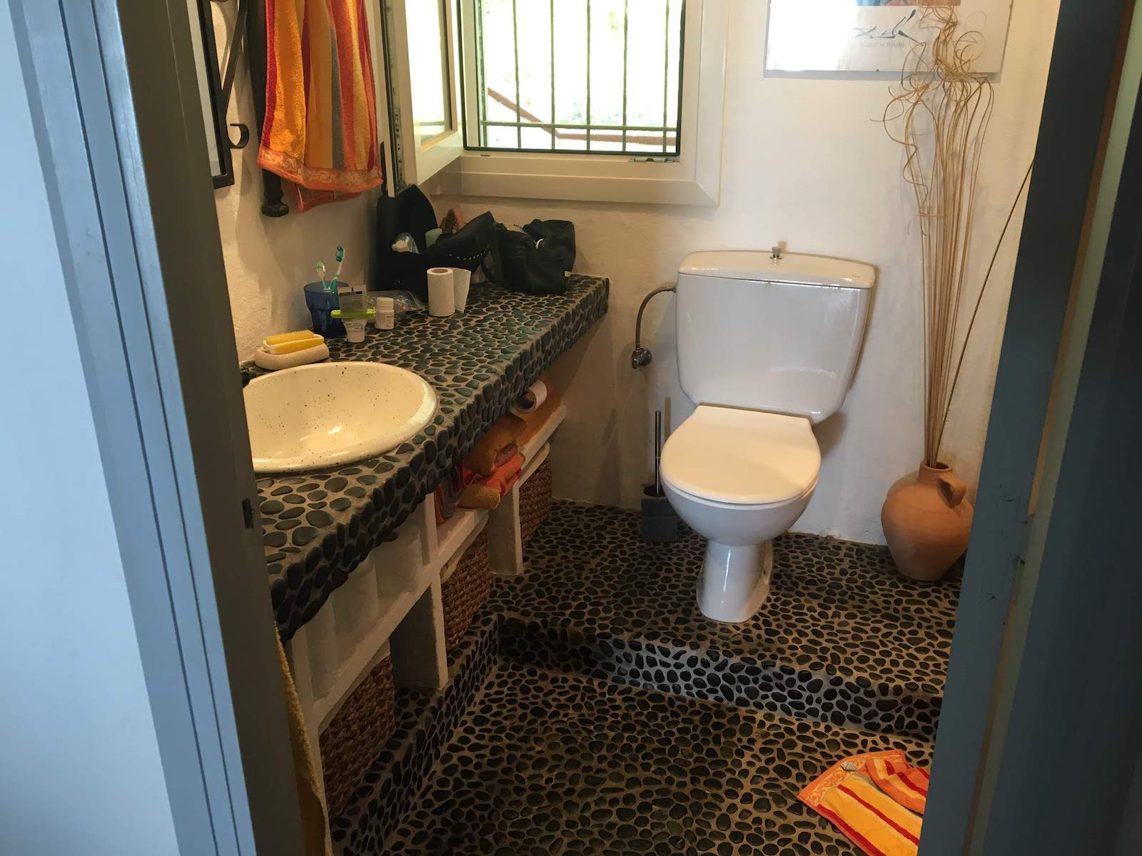 with double bed. Open kitchen (4 hotplates - gas) and electric oven. Bath / WC. Washing machine with condenser dryer. Large, secluded terrace of 35 m2 with garden furniture, outdoors
