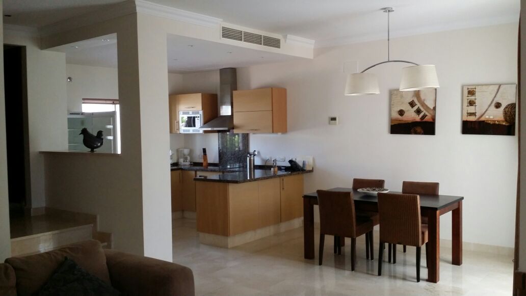Townhouse located in a block of 4 similar homes, distributed over two floors, with porch, entrance hall, WC, fully fitted kitchen, breakfast bar, dining area, lounge with chimney, access to open and closed terraces patio doors.