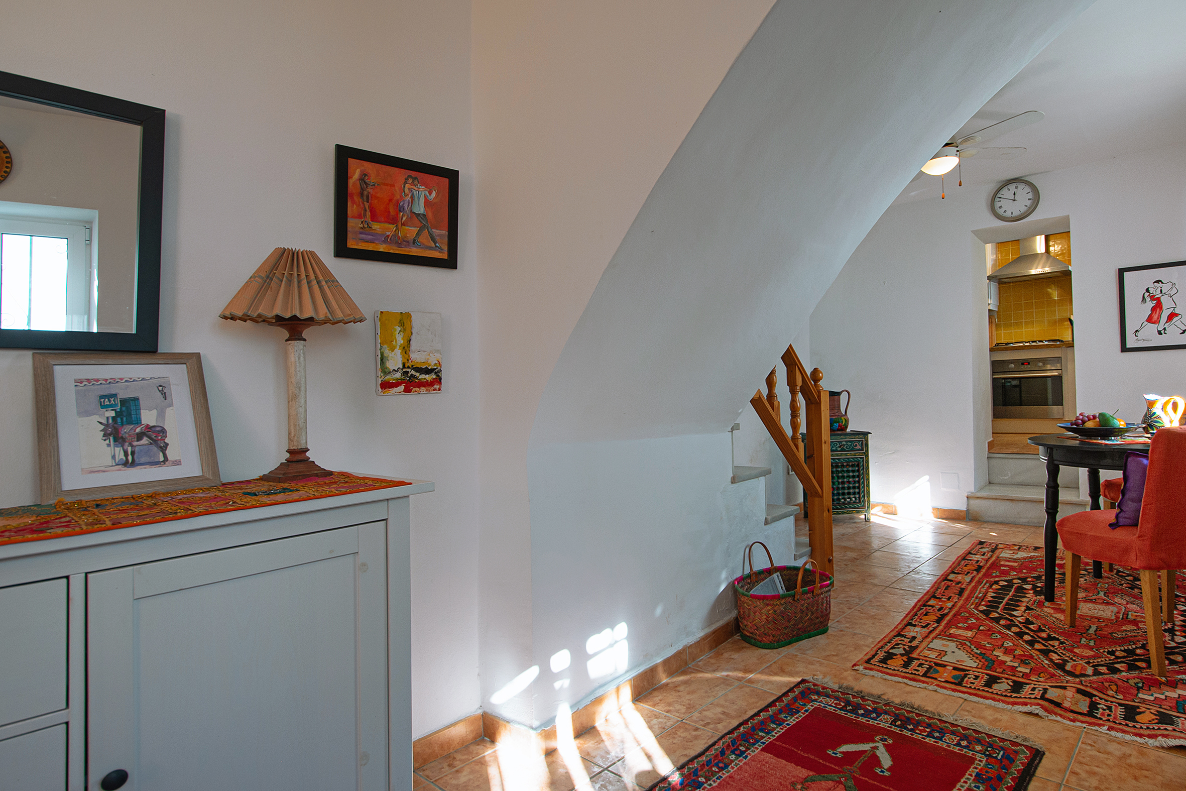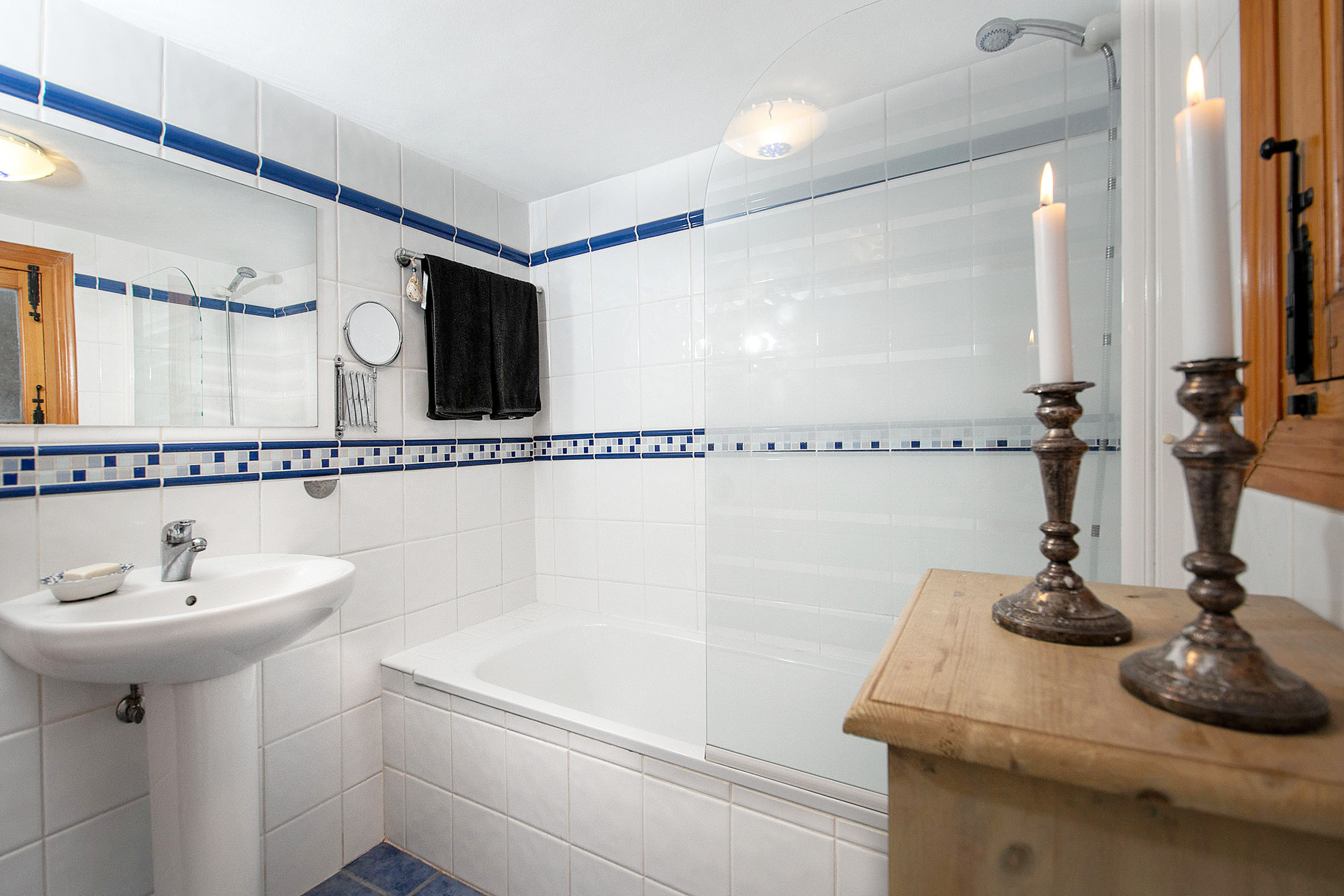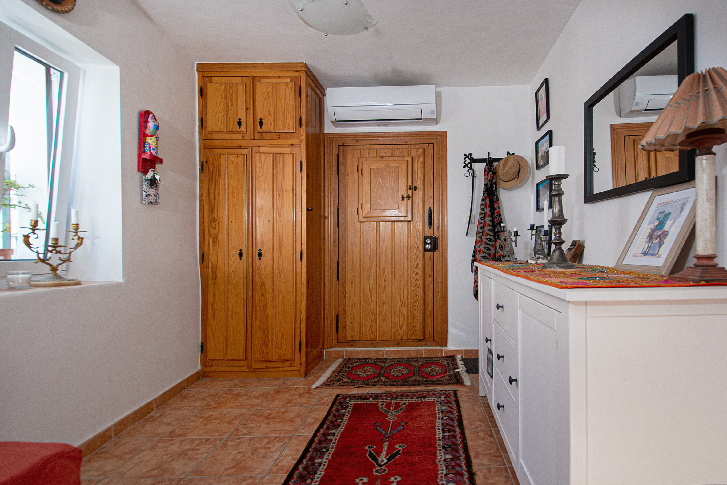 There are two back doors leading up to the two terraces, one down through the kitchen and the other on the first floor through a bedroom. From the terraces you have a fantastic view of the “Pueblo” and the sea. Sun is available from morning to evening! There is also parking outside as well as a parking garage with free spaces near the house.