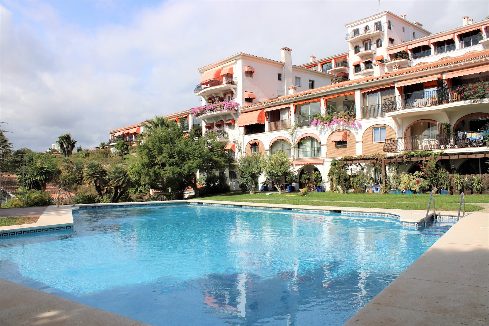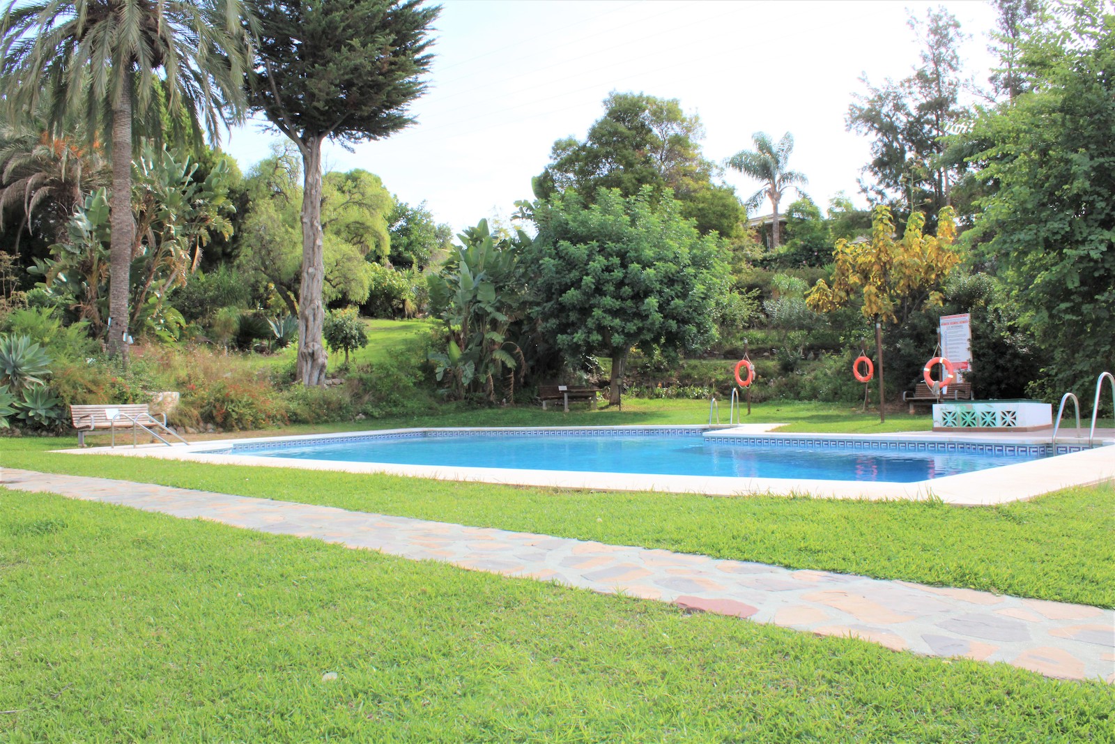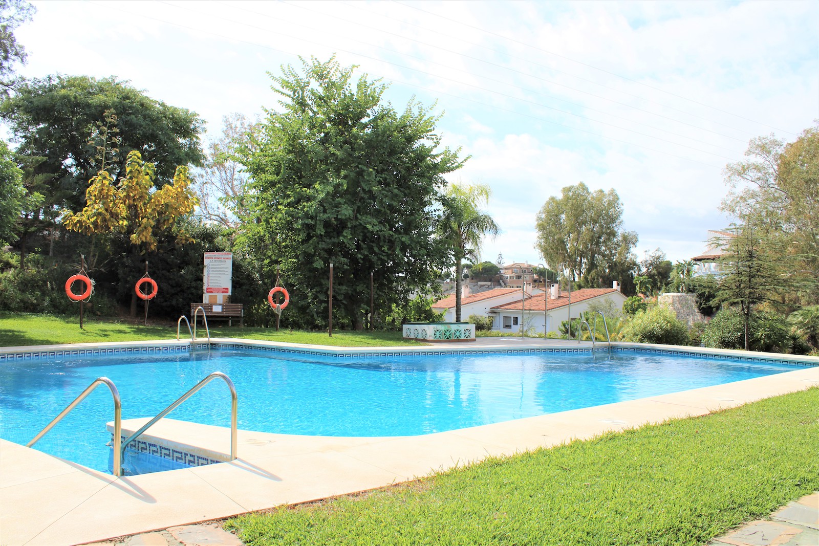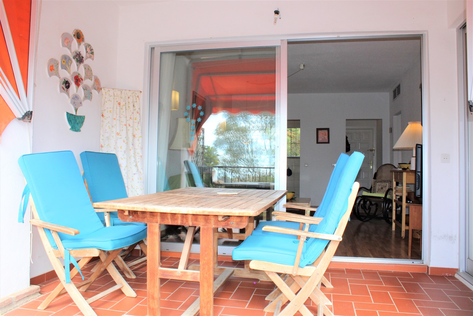 Bra planlösning med två sovrum, ett badrum med dusch och tvättmaskin, fullt utrustat kök och ett stort vardagsrum med utgång till en härlig terrass på 13 kvm. Från terrassen har ni utsikt över den stora trädgården och den härliga poolen, det går även att skymta havet från terrassen.