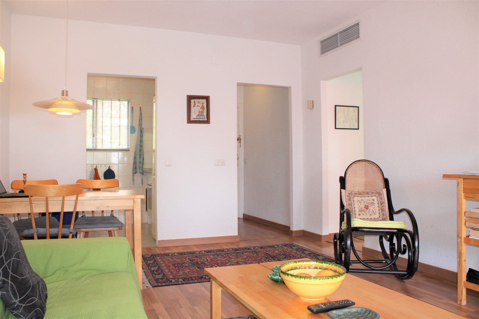 Ljus fin lägenhet med terrass på andra våningen, i en urbanization med en stor grönskande trädgård och en härlig swimming pool som är öppen året runt. Belägen i de östra delarna av Malaga och inom 5-10 minuters promenad når du flera restauranger, supermarket och British school of Malaga.
