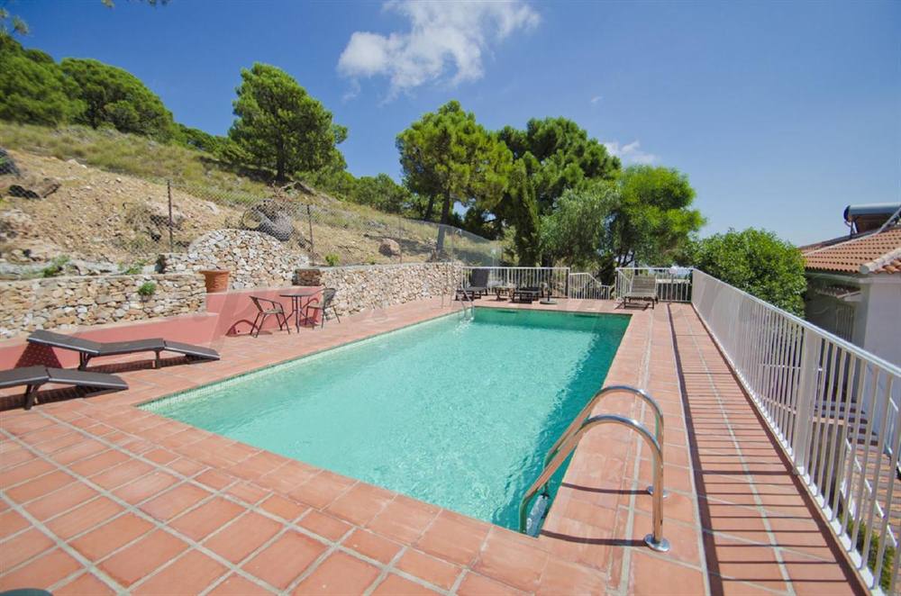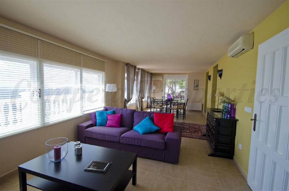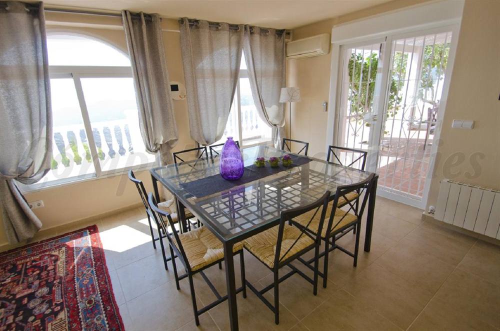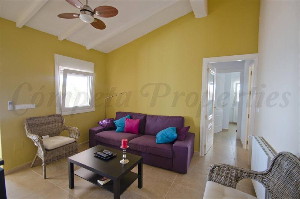 An elegant country property in Spain set in a plot of app 818m2 in a most sought after area on the edge of the pretty village of Cómpeta. Superb views to the Mediterranean with the impressive Sierras forming a stunning backdrop. 8x4 pool, garage and separate guest apartment. The main house has a magnificent open plan living area with an independent fully fitted kitchen, a charming sitting room, a master bedroom with ensuite facilities, a double and a single bedroom with interconnecting shower room, a twin bedroom and a separate guest wc. The apartment has an open plan living area with kitchen, a double bedroom and a shower room and a private terrace.