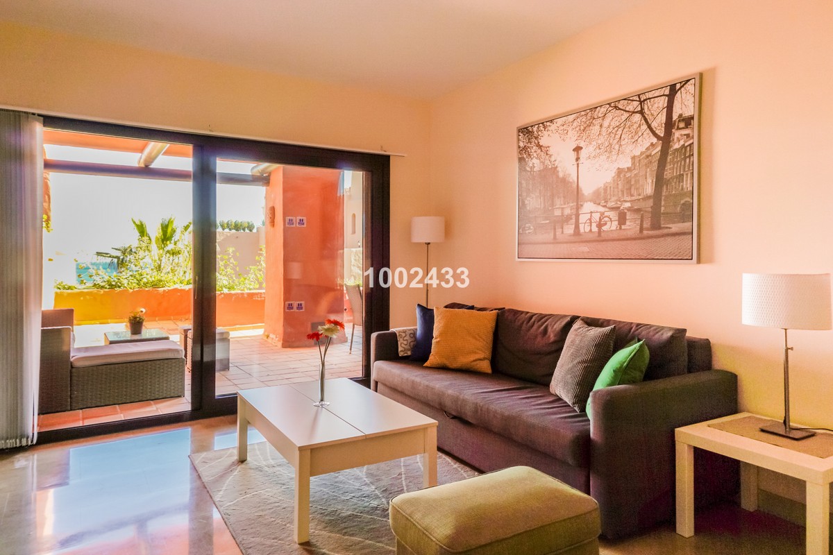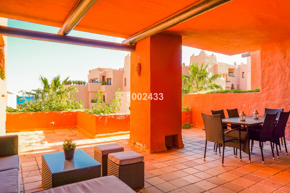 Ground Floor Apartment for sale in Sabinillas, Manilva with 2 bedrooms, 2 bathrooms and with orientation south, with communal swimming pool, private garage and communal garden. Regarding property dimensions, it has 81 m² built and 54 m² terrace. Has the following facilities garden view, sea view, amenities near, close to children playground, close to golf, close to port, close to schools, close to sea / beach, close to shops, close to town, transport near, air conditioning, central heating, excellent condition, covered terrace, fitted wardrobes, glass doors, guest toilet, lift, marble floors, private terrace, telephone, water tank, fully fitted kitchen, kitchen equipped, optional furniture, dining room, living room, storage room, double glazing, gated community and security entrance.