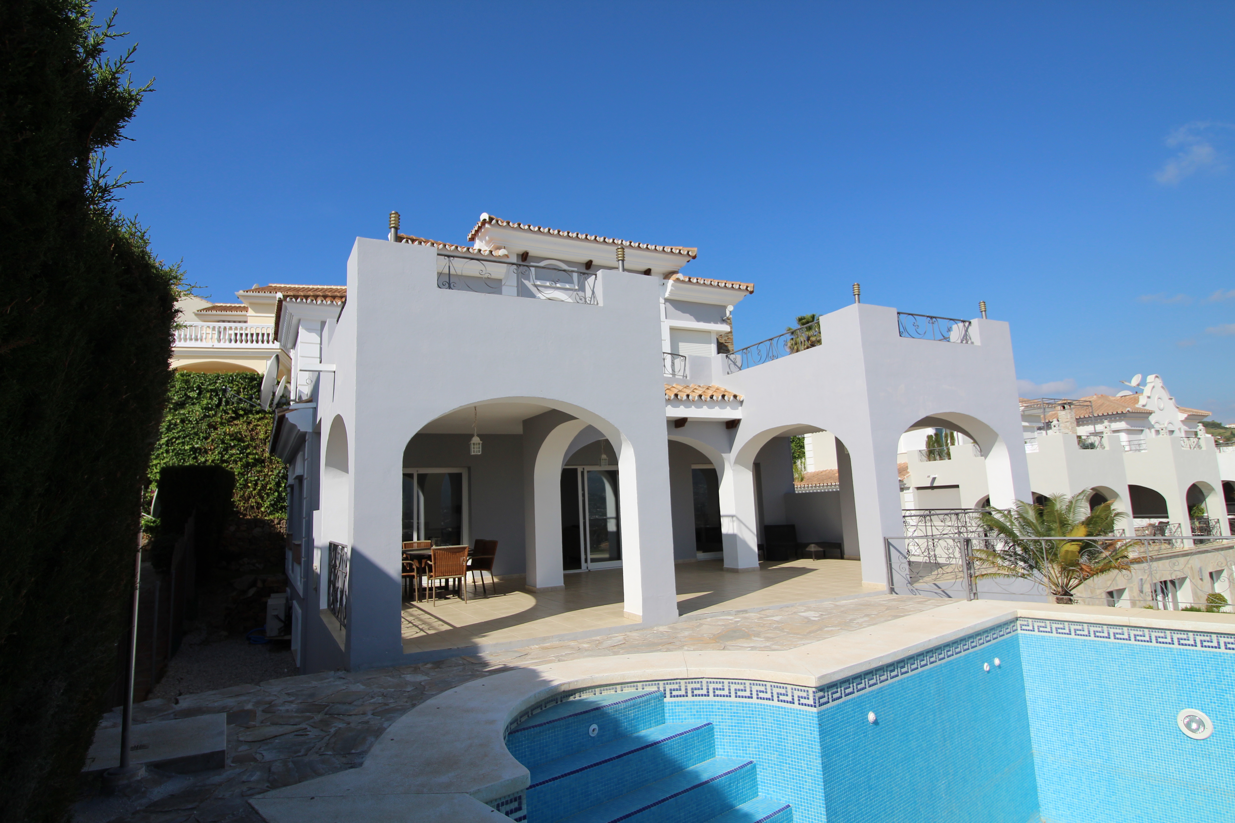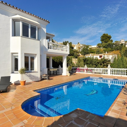 Beautiful villa located just outside of Fuengirola with views towards Mijas mountains, sea and Fuengirola town.
