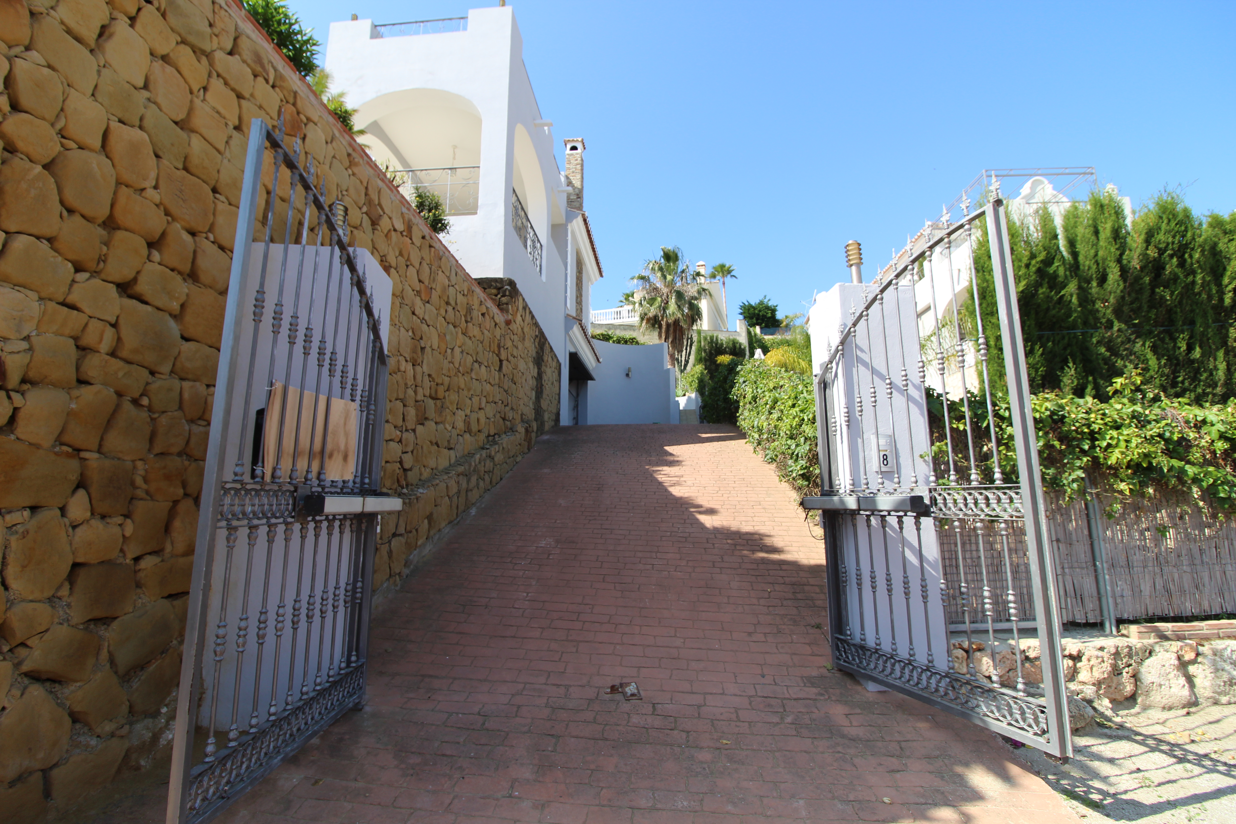 The entrance from the street you have an electric gate up to the garage, where you have another electric gate into the garage.