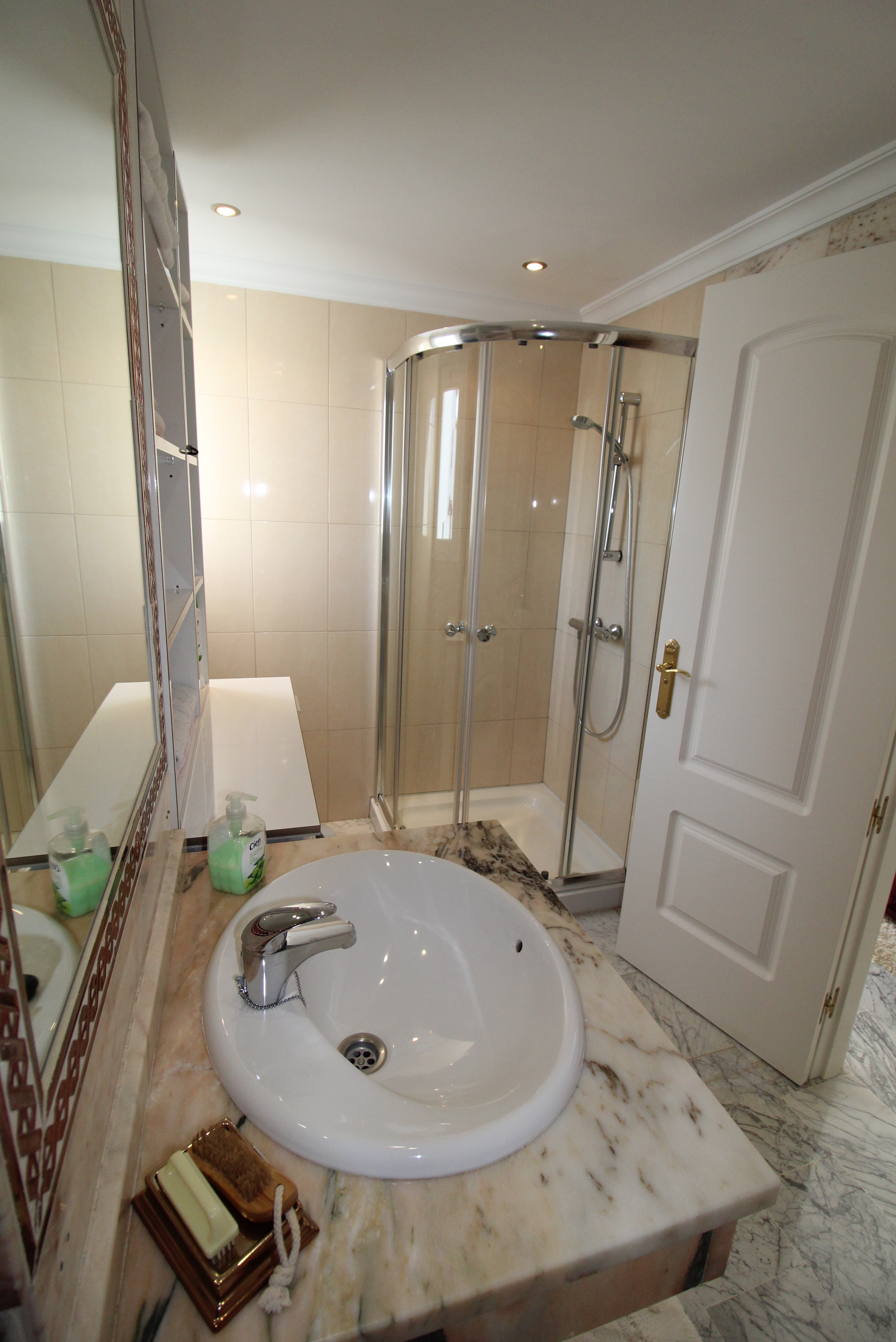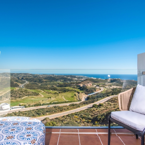 From the 30 m2 terrace you can enjoy the lovely view of the golf course and mountains. You will get the sun all afternoon and evening from here.