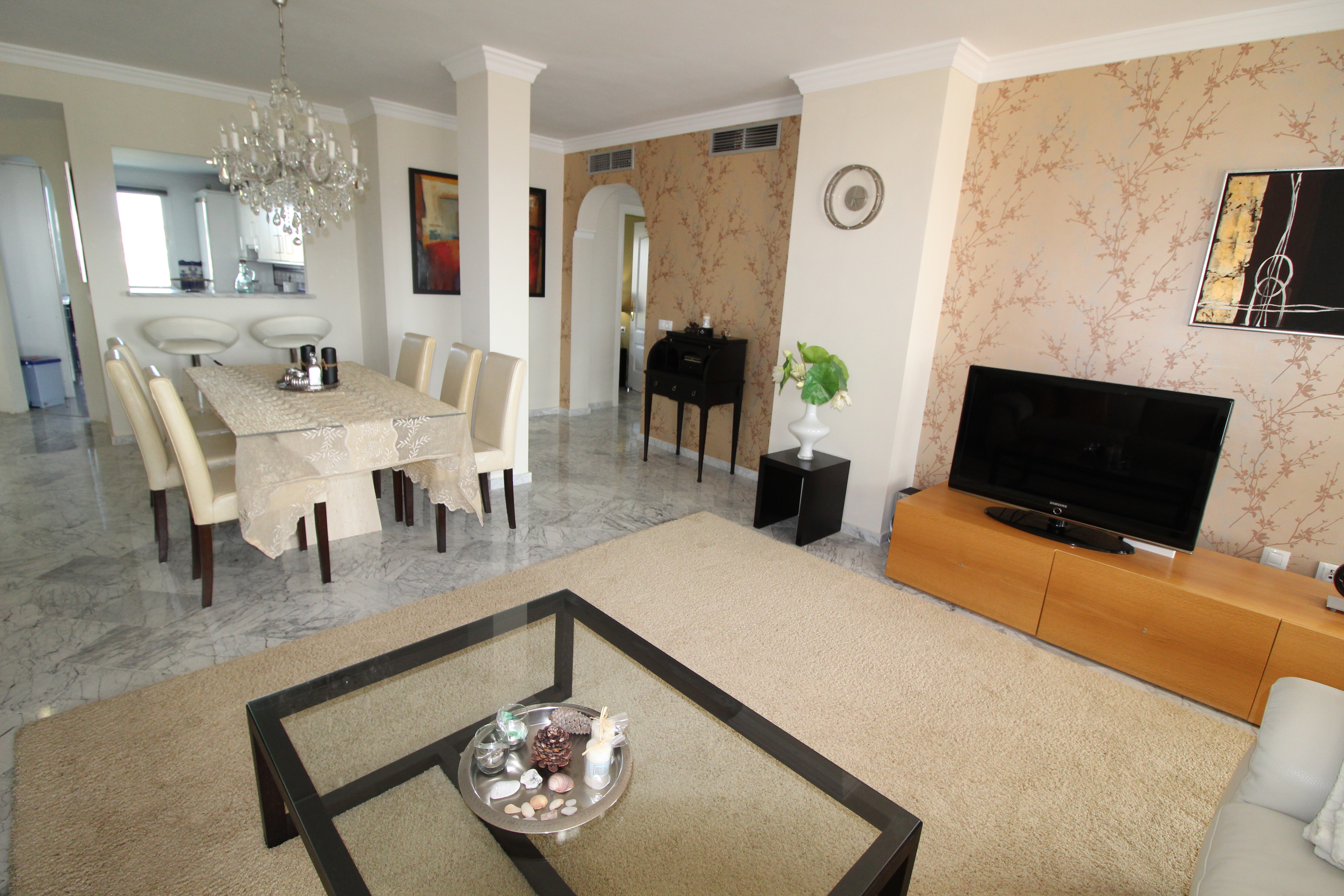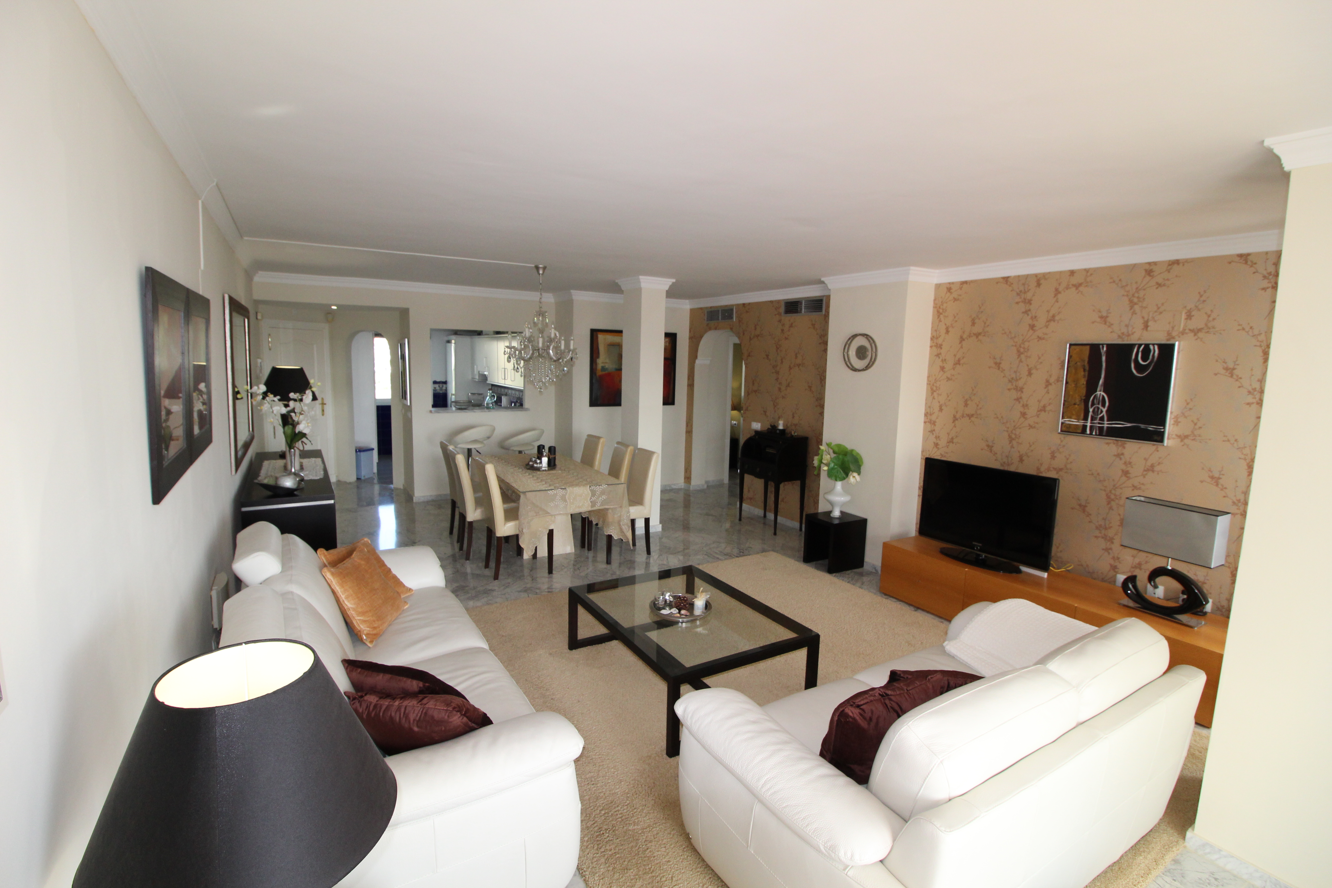 This 124 m2 corner apartment consists of 3 bedroom and 2 bathrooms with a great size living room and terrace! From the living room and master bedroom you will find double doors to access the sunny terrace, where part of it is covered and open, so you get the choice to sit in the sun or shade.