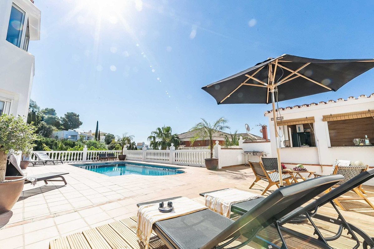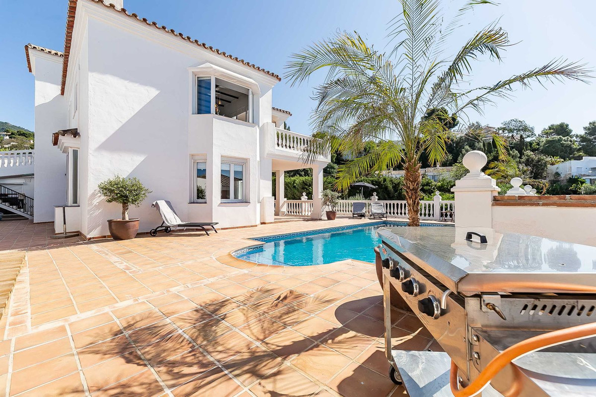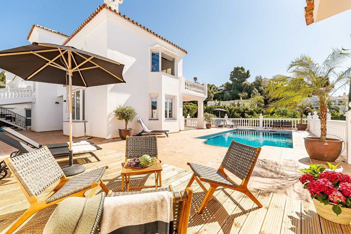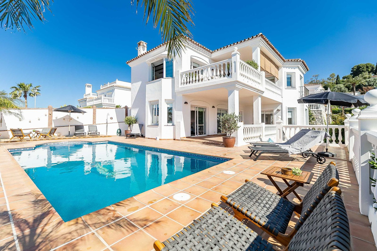 Fristående villa, Mijas, Costa del Sol. 4 Sovrum, 5 Badrum, Storlek 369 m², Terrass 51 m², Garden/Plot 906 m². Läge : Nära till affärer, Urbanisation. Väderstreck : Söder, Sydväst, Väst. Skick : Perfekt, Nyligen ombyggt. Pool : Privat pool. Klimatkontroll : Luftkonditionering, Varm A / C, Kall A / C. Utsikt : Havsutsikt, Bergsutsikt, Panorama utsikt, Trädgårdsutsikt, Utsikt pool. Egenskaper : Täckt terrass, Inbyggda garderober, Nära transport, Privat terrass, WiFi, Förrråd, Tvättstuga, Eget badrum, Jacuzzi, Grillplats, Dubbelglas. Möblering : Delvis möblerad. Kök : Fullt utrustad. Trädgård : Privat, Lätt underhåll trädgård. Säkerhet : Elektriska persienner, Larmsystem. Parkering : Garage, Privat parkering. El, vatten, gas o telefon : Elektricitet, Drickbart vatten. Kategori : Investering, Lyx.