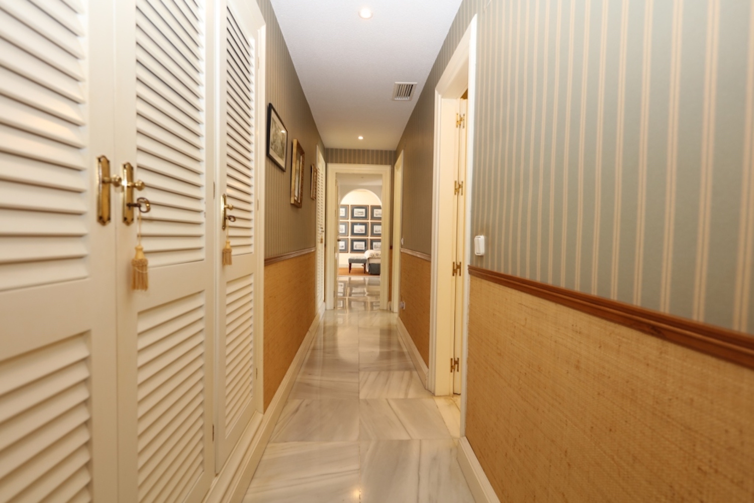 The apartment itself consists of 4 bedrooms and 3 bathrooms. From the entrance you have a spacious hallway which gives access to the kitchen, dining room and livingroom. From all these rooms you have access to a terrace. It is exactly the same from the 4 bedrooms, which also gives access to a terrace.