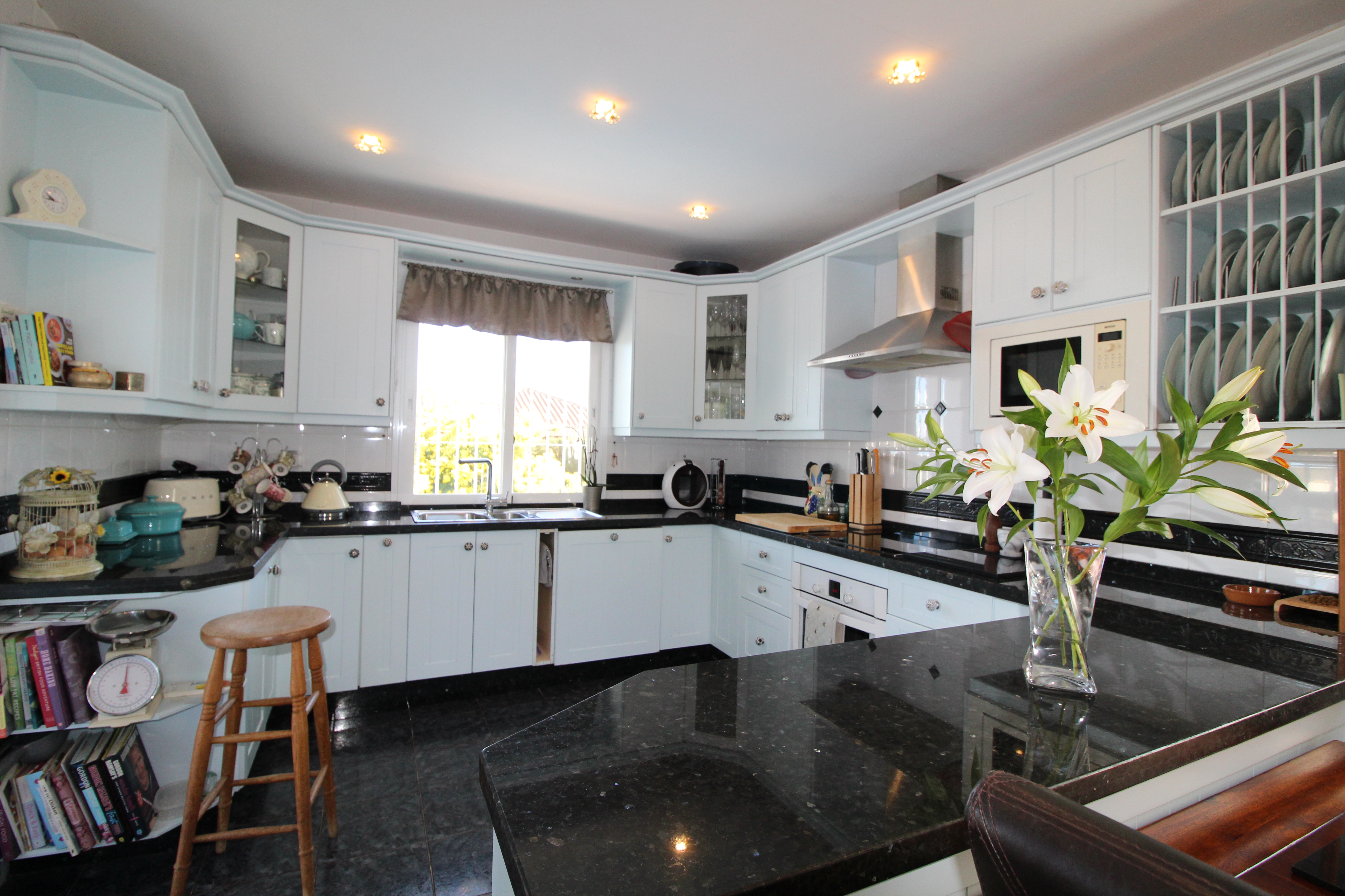 Downstairs you have another two bedrooms, bathrooms, kitchen and lounge with access to the garden and pool area.