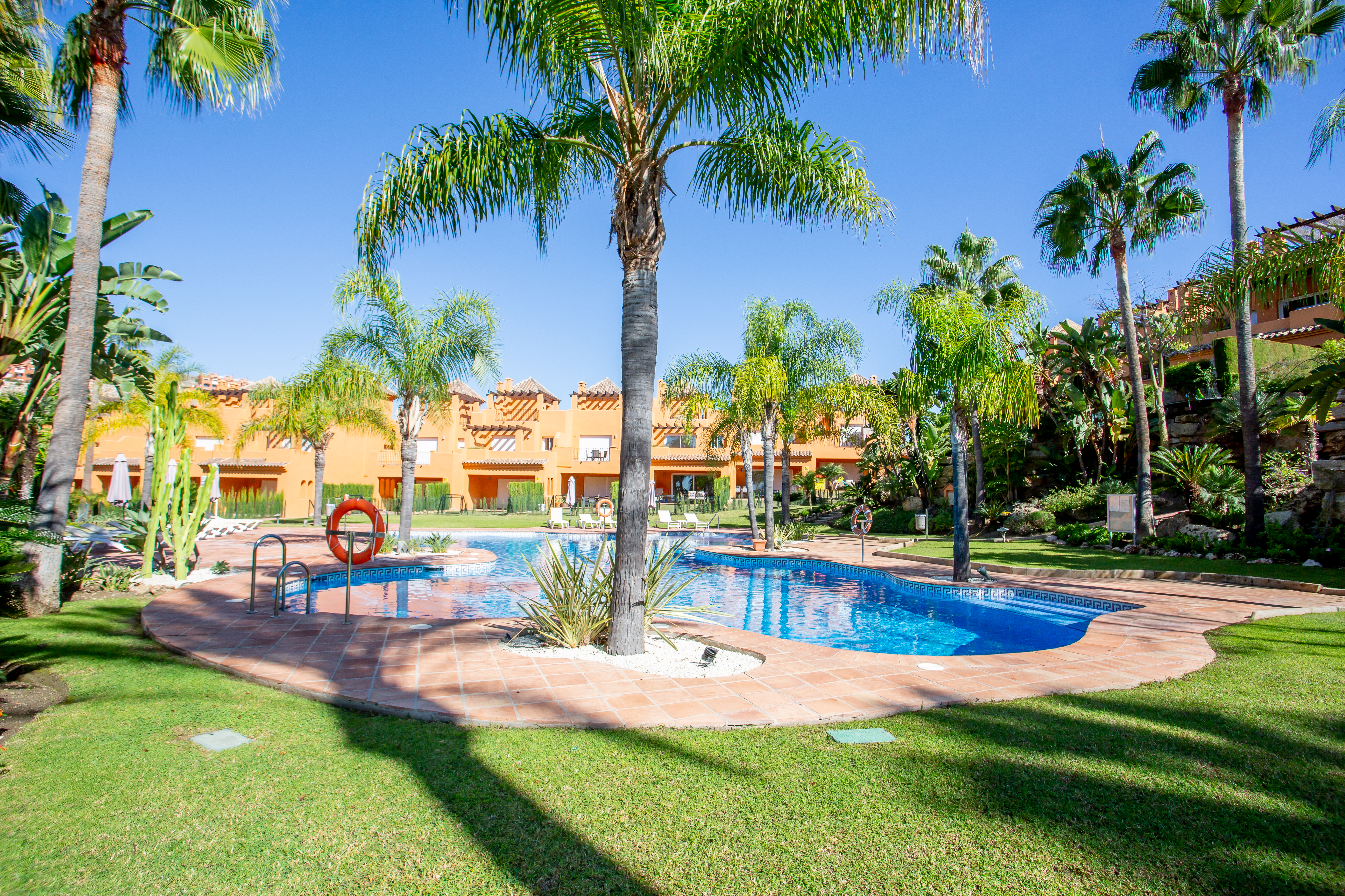 Spacious 3 bedroom , 2,5 bathroom townhouse with panoramic sea views for sale in Benahavis, The townhouse is located close to 4 golf clubs- El Paraiso Golf Club, Flamingos Golf Club, El Campanario Golf Club, Villa Padierna Golf Club and 900m to the beach.