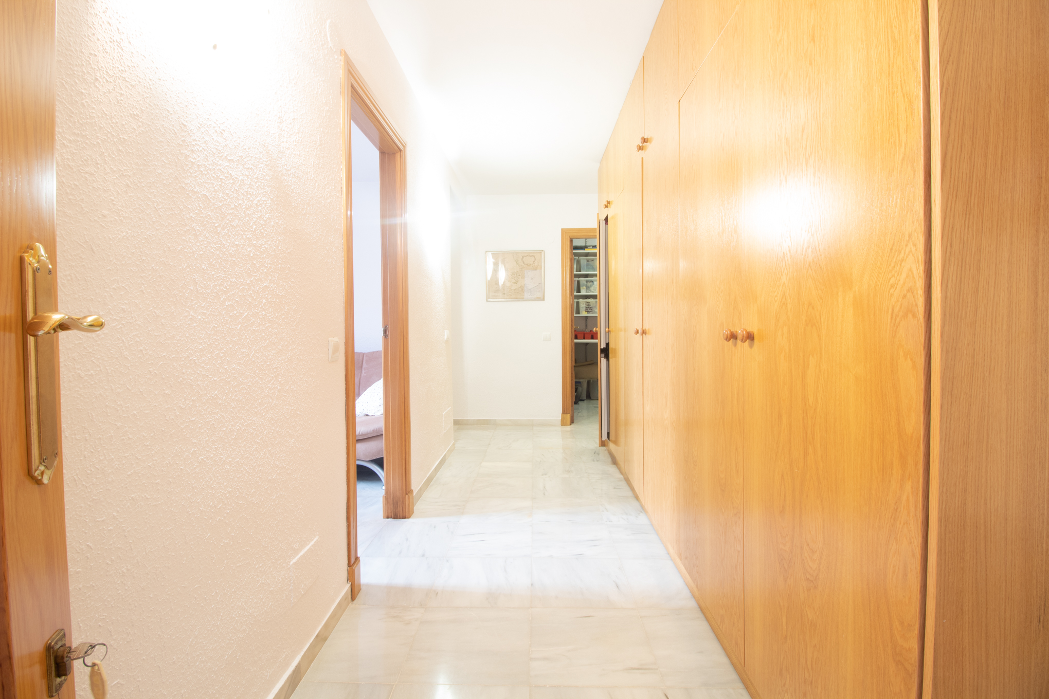 From the entrance into the hallway you will find one bedroom and bathroom on this floor together with the open kitchen and livingroom.