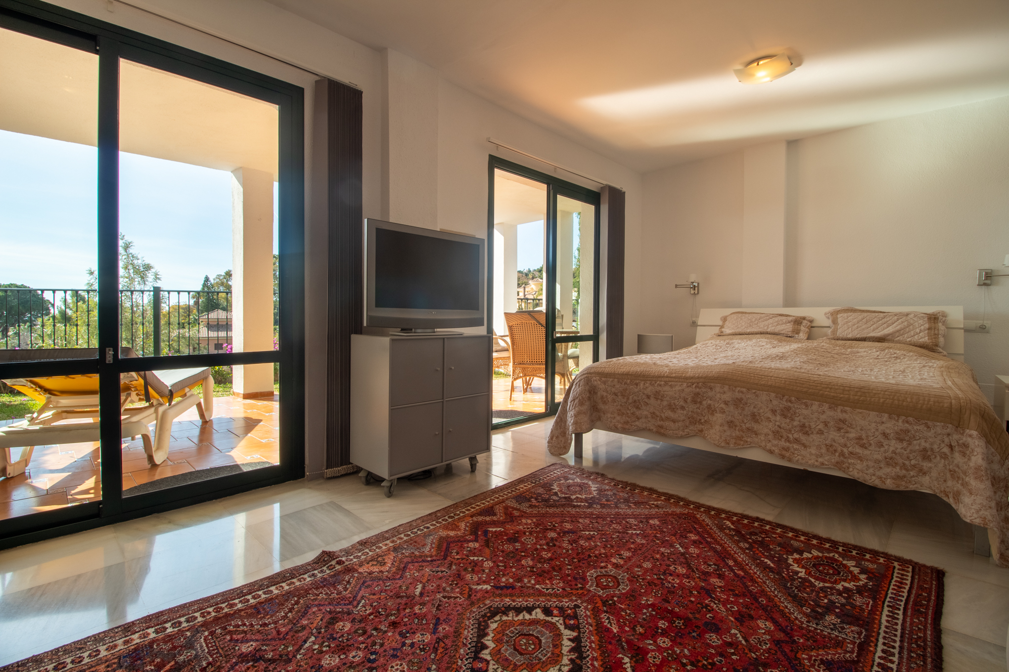 The huge master bedroom has direct acces to the garden and terrace.