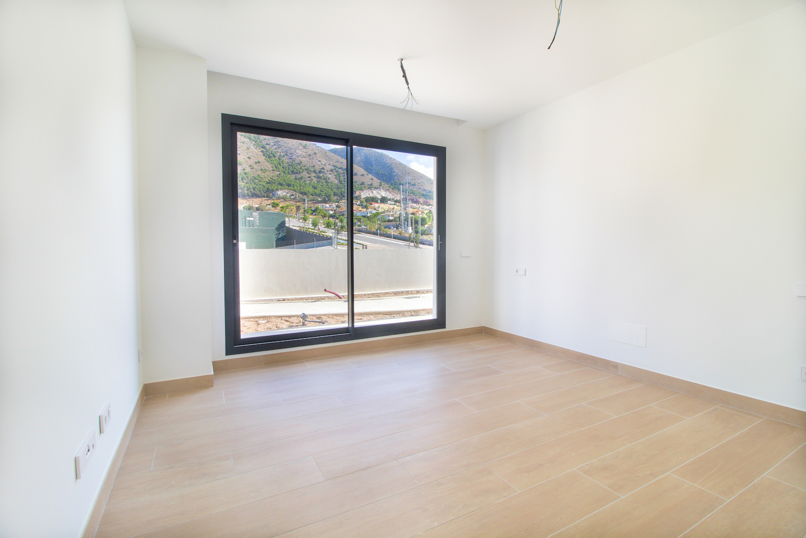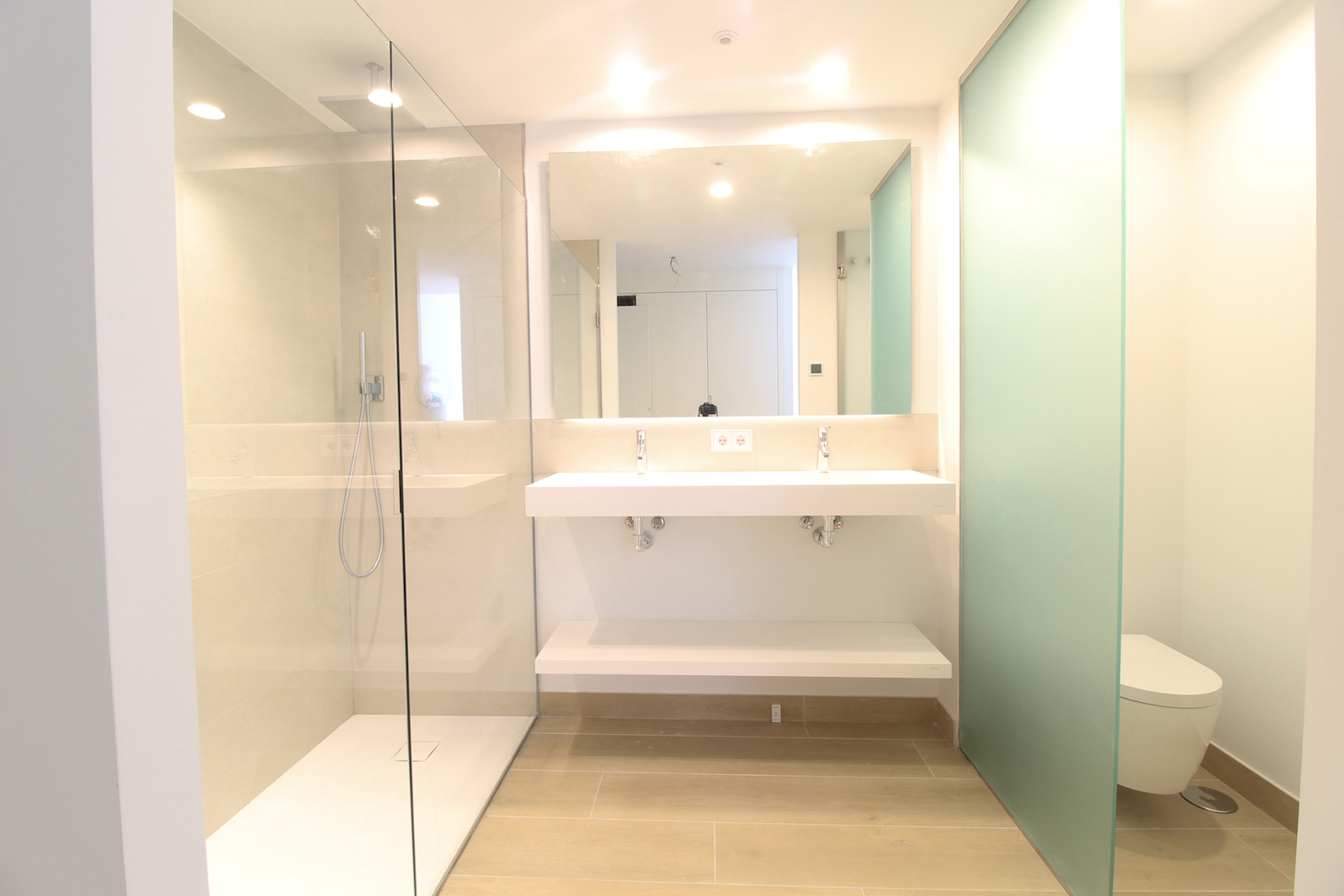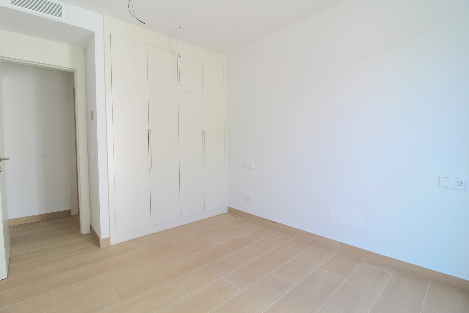 From the large open kitchen and living room there are sliding doors all the way to the south-facing terrace of 25m2, where there is a beautiful sea view over the Mediterranean. All patio doors are from floor to ceiling, so when you open them up the whole kitchen and living room area will blend in with the terrace and you will get a nice big outside space together with the indoor.