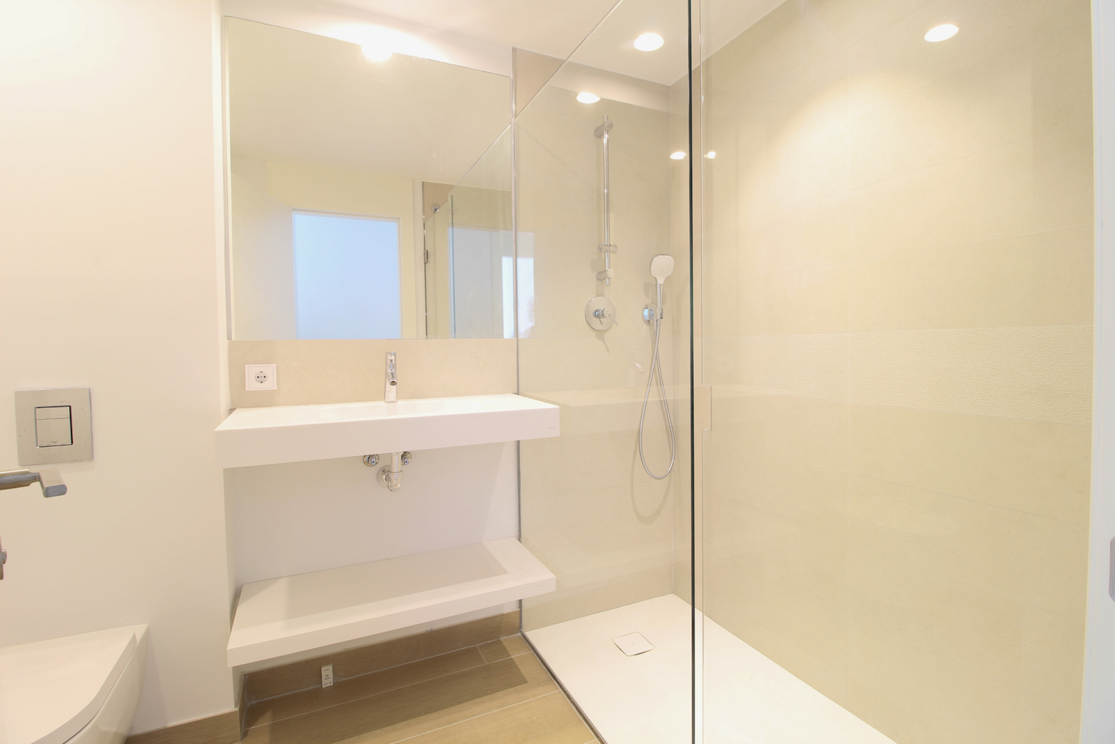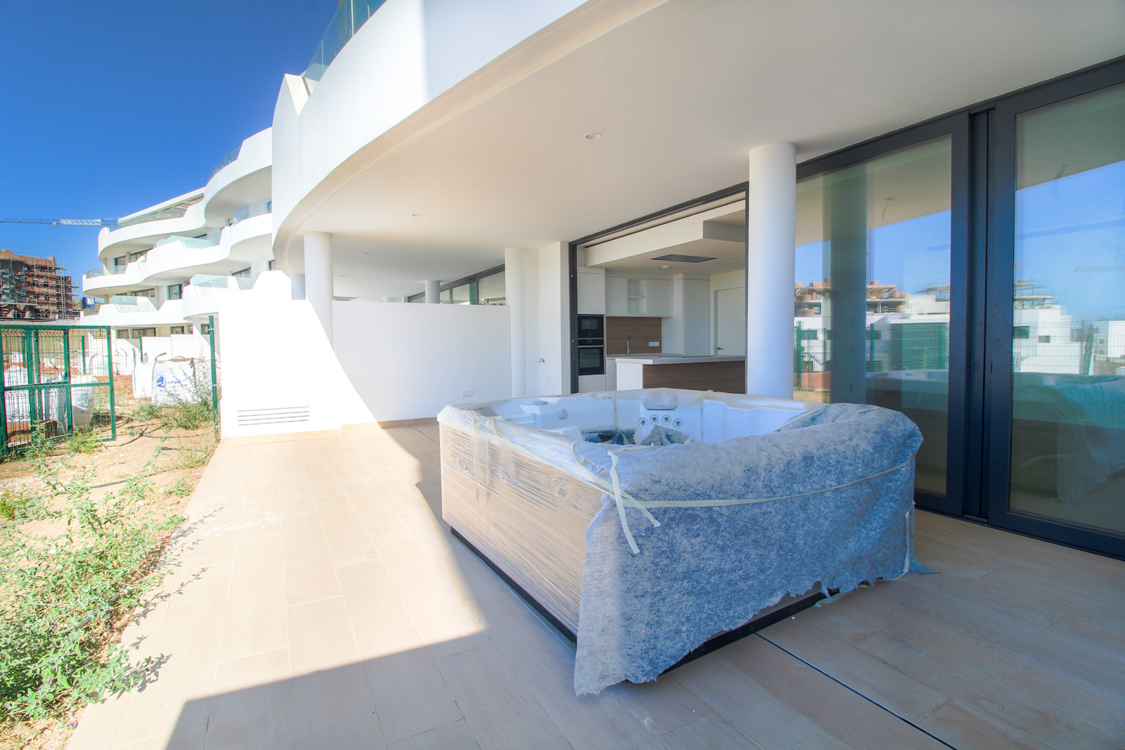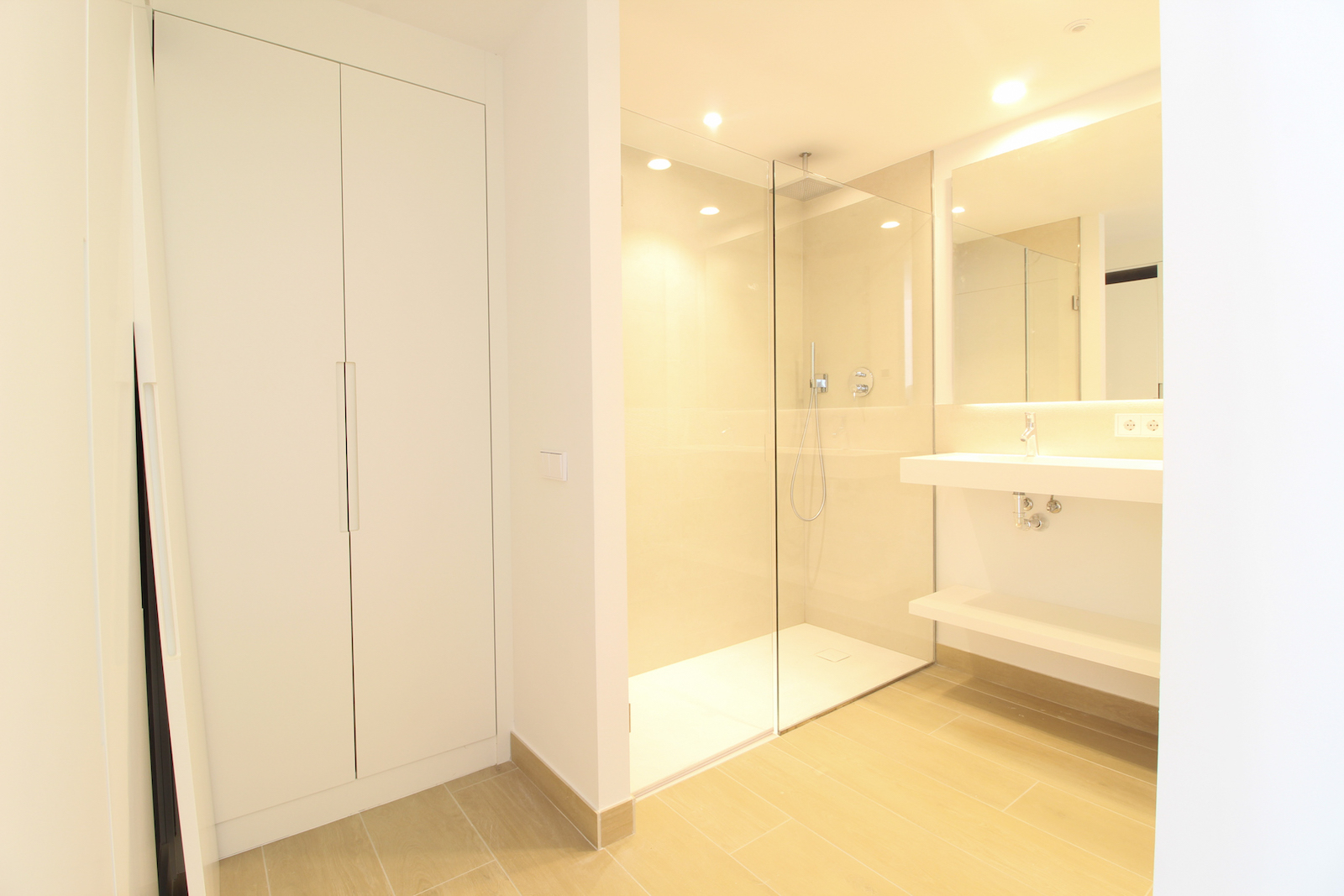 From the large open kitchen and living room there are sliding doors all the way to the south-facing terrace of 25m2, where there is a beautiful sea view over the Mediterranean. All patio doors are from floor to ceiling, so when you open them up the whole kitchen and living room area will blend in with the terrace and you will get a nice big outside space together with the indoor.