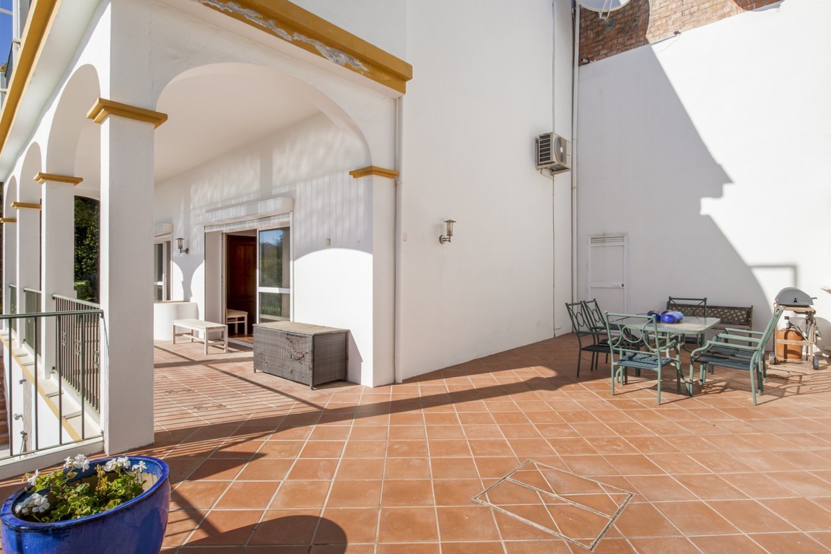 From both the bar area and the bedroom you have direct access to the south-facing terrace of this floor. From here you have access to the pool area and the green garden.