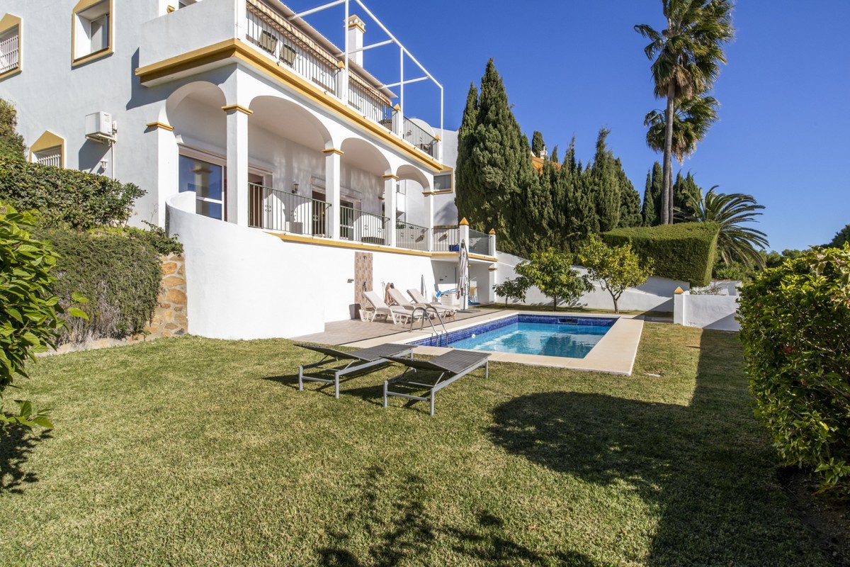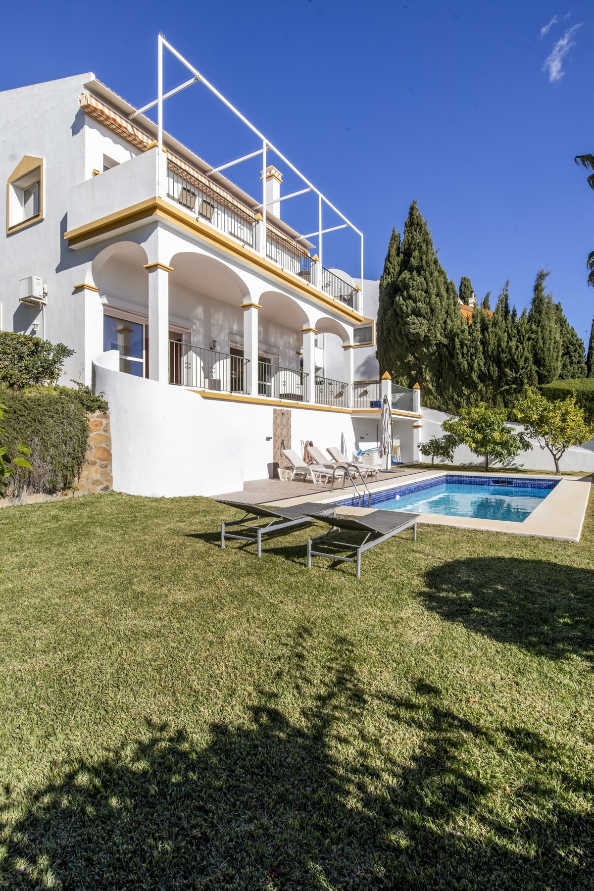 The villa consists of a total of 3 bedrooms and 3 bathrooms on two levels. Indoors you will also find a large bar area and a sauna. Outdoors you have your large private pool and associated area for sunbathing, terraces on all levels, large garden with lawn incl. irrigation systems, fruit trees and flower beds, tool shed and private enclosed garage.