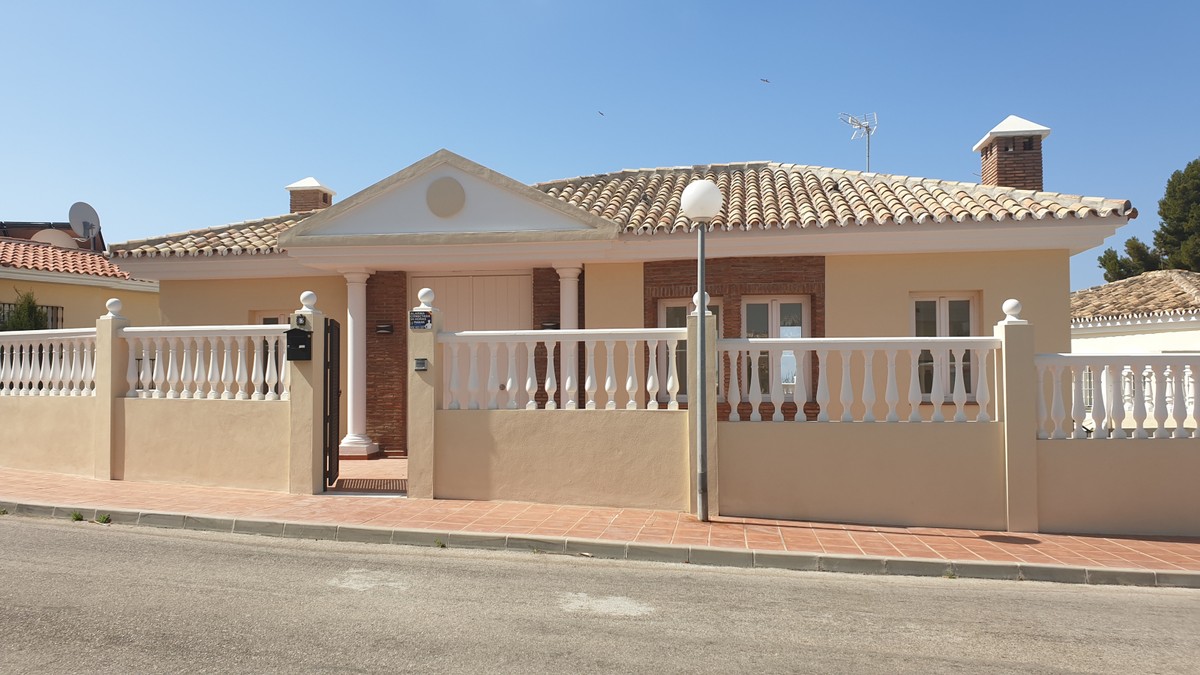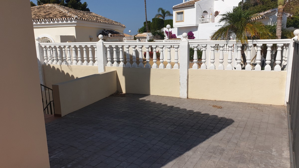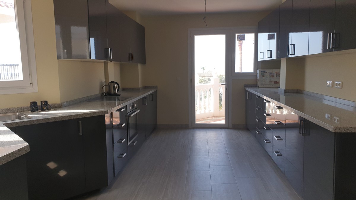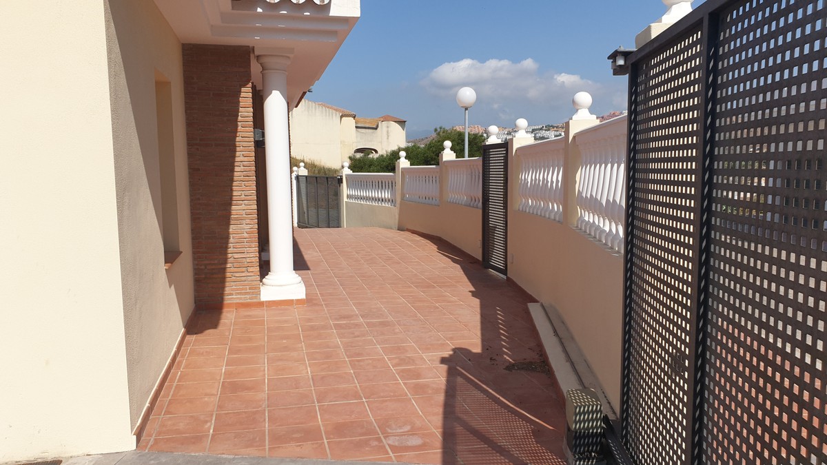 Built on 3 floors the villa is distributed as follows: Main entrance via a floor to ceiling double door leading into a nice sized entrance hall, to the left of the entrance there is a large fully fitted, top of the range kitchen with integrated appliances and granite worktops, together with a small utility room which leads off from the kitchen. To the right of the hall is a large bright and airy lounge with a fireplace leading onto an open terrace that runs the length of the villa. Off the entrance hall we find a lovely good sized contemporary guest bathroom and stairs leading to the lower levels. Down one flight of stairs we find a very large master bedroom with an en suite full sized bathroom and enough partitioned space ready to install a walk in dressing room, a further 2 good sized bedrooms with fitted wardrobes, one of these bedrooms has a privately accessed covered terrace, there is also another full large contemporary bathroom and also another large covered terrace that runs the length of the villa on this level. The lower floor has direct access to the garden and comprises of a very large bedroom/games room and a large storage room