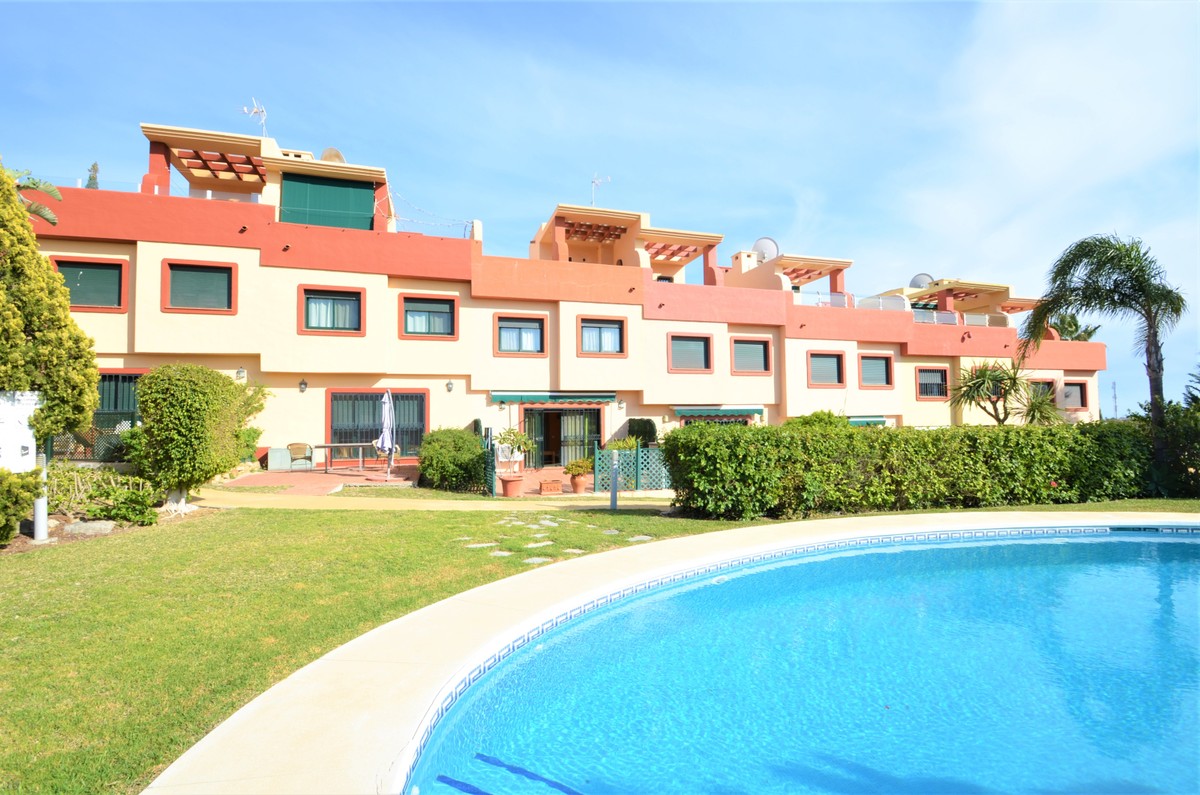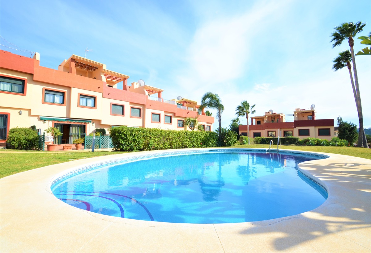 MAGNIFICENT TOWNHOUSE, spacious and bright with impressive PANORAMIC VIEWS. Close to the sea and the best golf courses on the Costa del Sol. House with large private terrace with access to the pool. The urbanization has large well-maintained gardens. It is a quiet urbanization, just 30 minutes from Marbella and 10 minutes from Estepona. It is the ideal location to enjoy golf, the sea, the sun and the best gastronomy and nature. The house has two private parking spaces included in the price, with air conditioning and appliances, ready to move into.