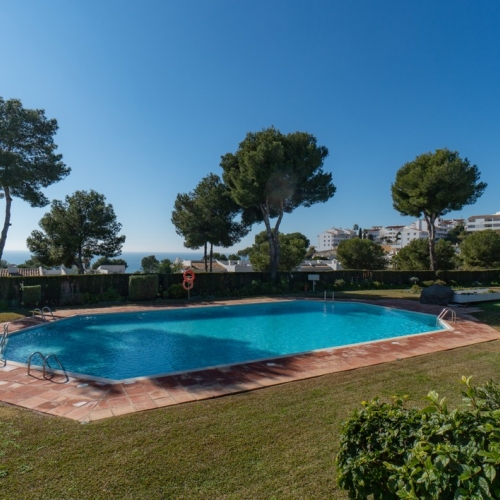Sitting on a good sized flat plot, mature gardens surround the property. A path leads from the covered terrace down to the enclosed pool area which is surrounded by wooden decking and fruit trees.