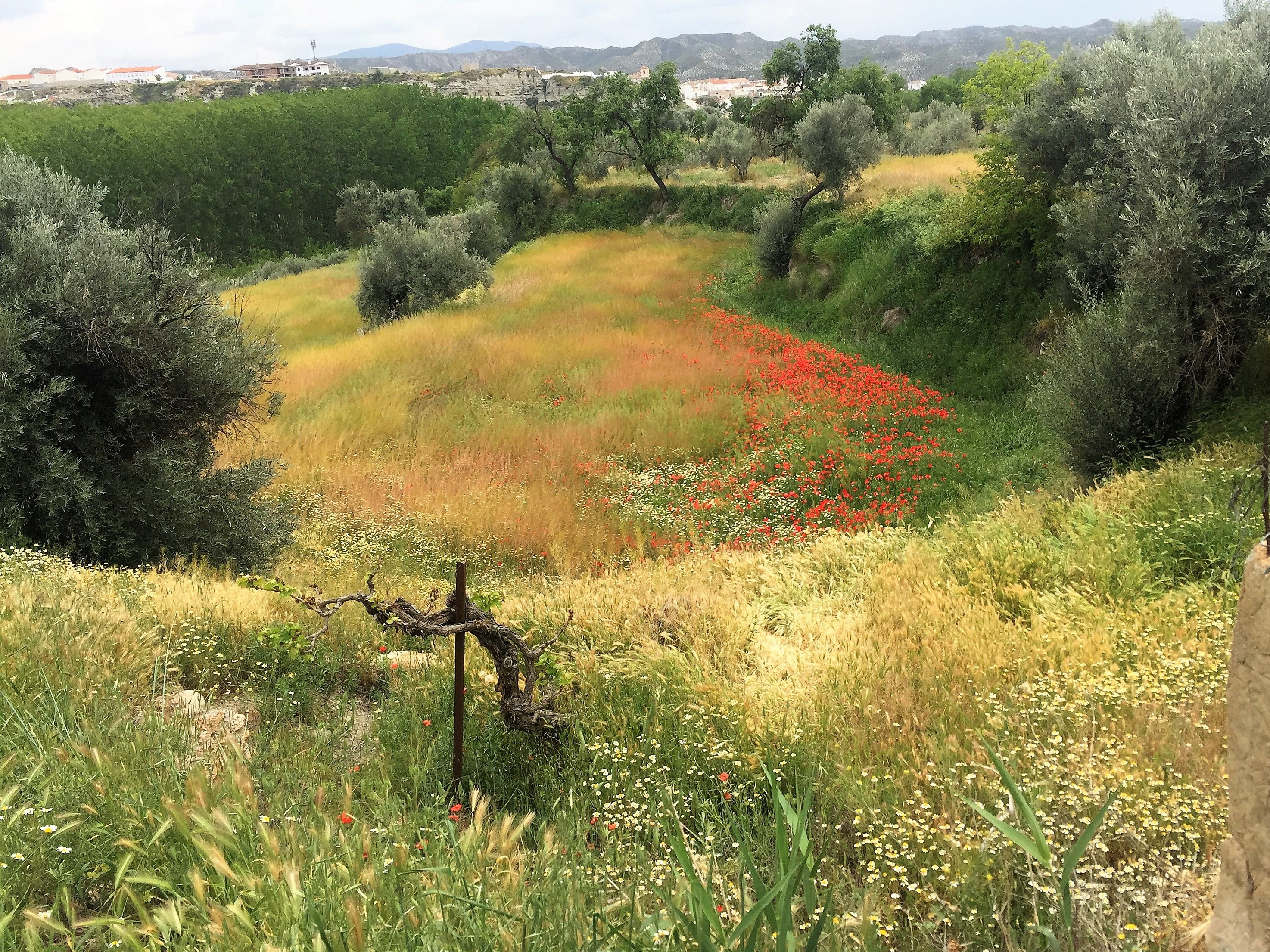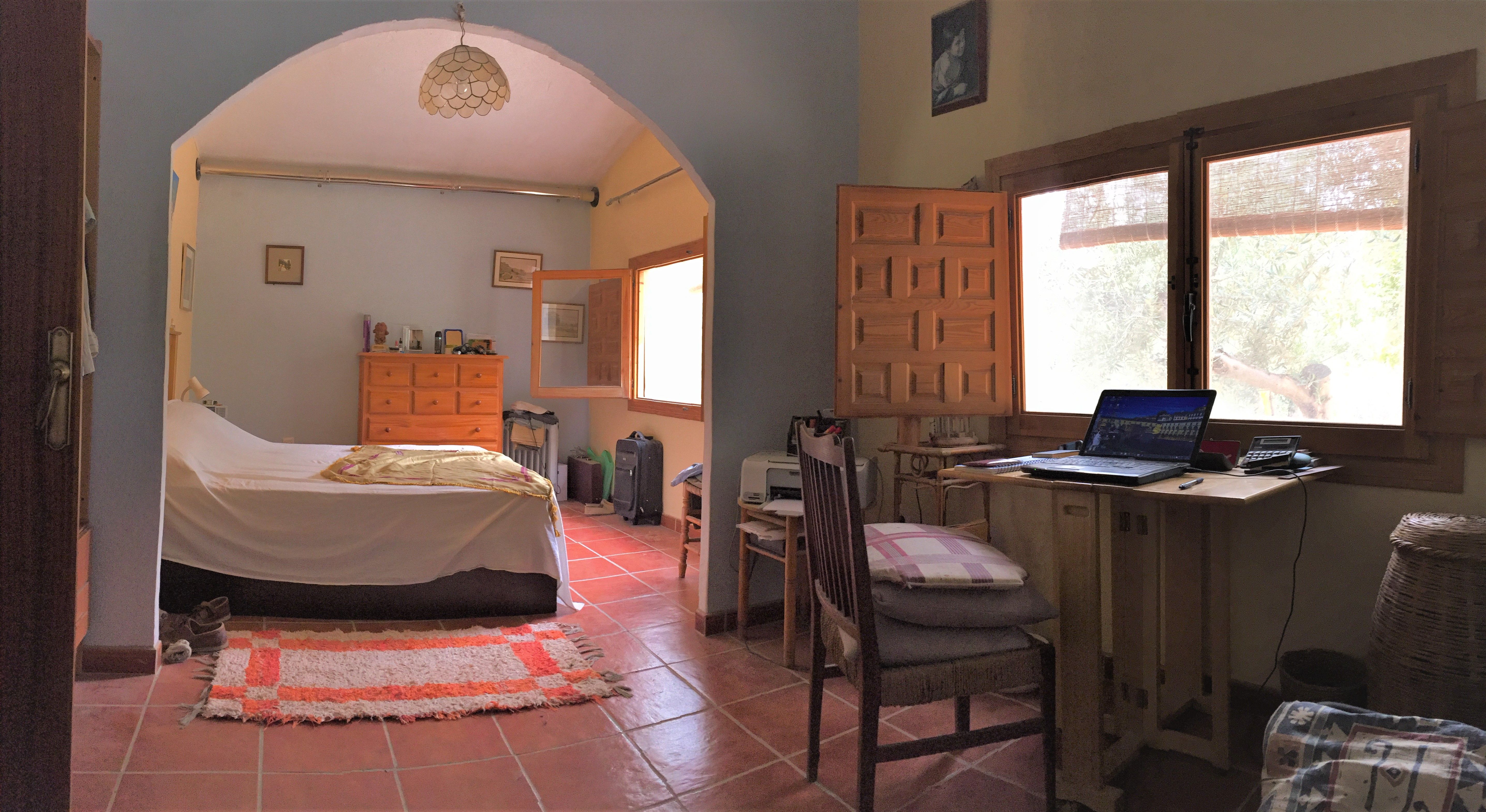 Hidden away in a stunning location – in the province of Granada - with fabulous views of distant mountains, this house has some absolutely unique qualities. Set in 5.500 sq metres of land, with 2 olive groves; 2 orchards (with nectarine, pear, apricot, peach, almond, apple, cherry and plum); and secluded corners to explore, yielding wild pomegranate, rocket, spinach and chard – all on different levels, and all irrigated by a continually flowing tributary of the river. “You can take a walk through the Spanish countryside without even leaving the property”, observed one visitor.