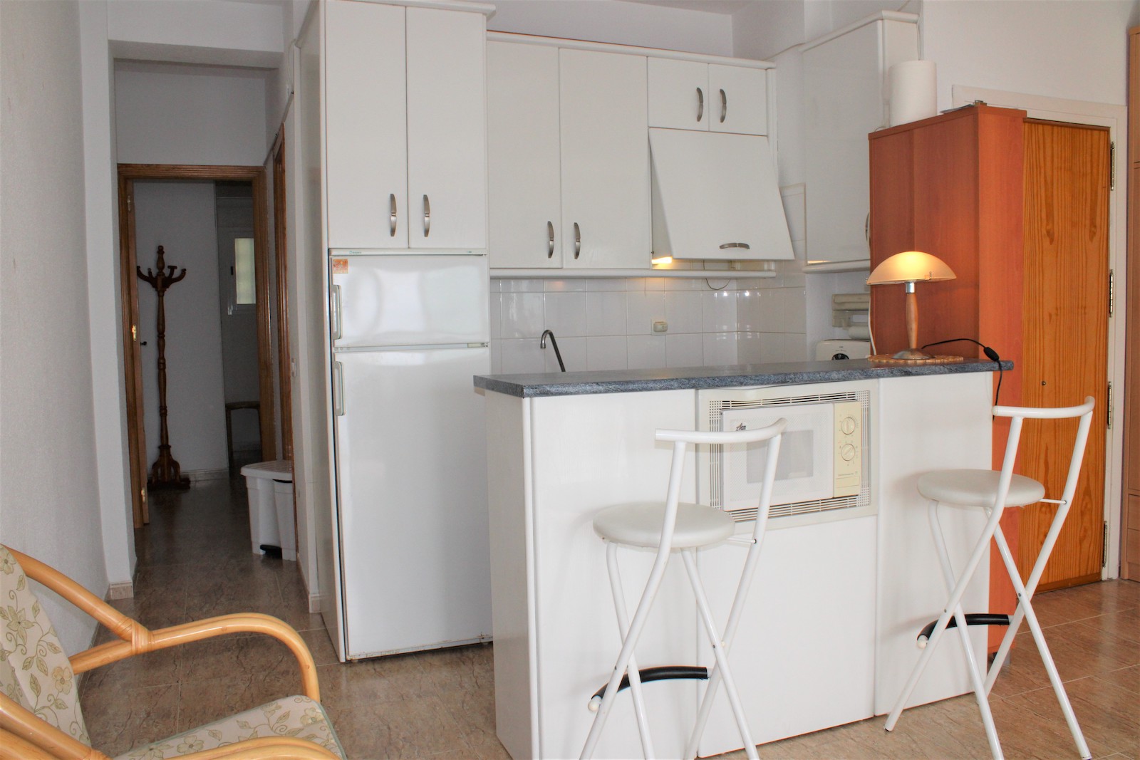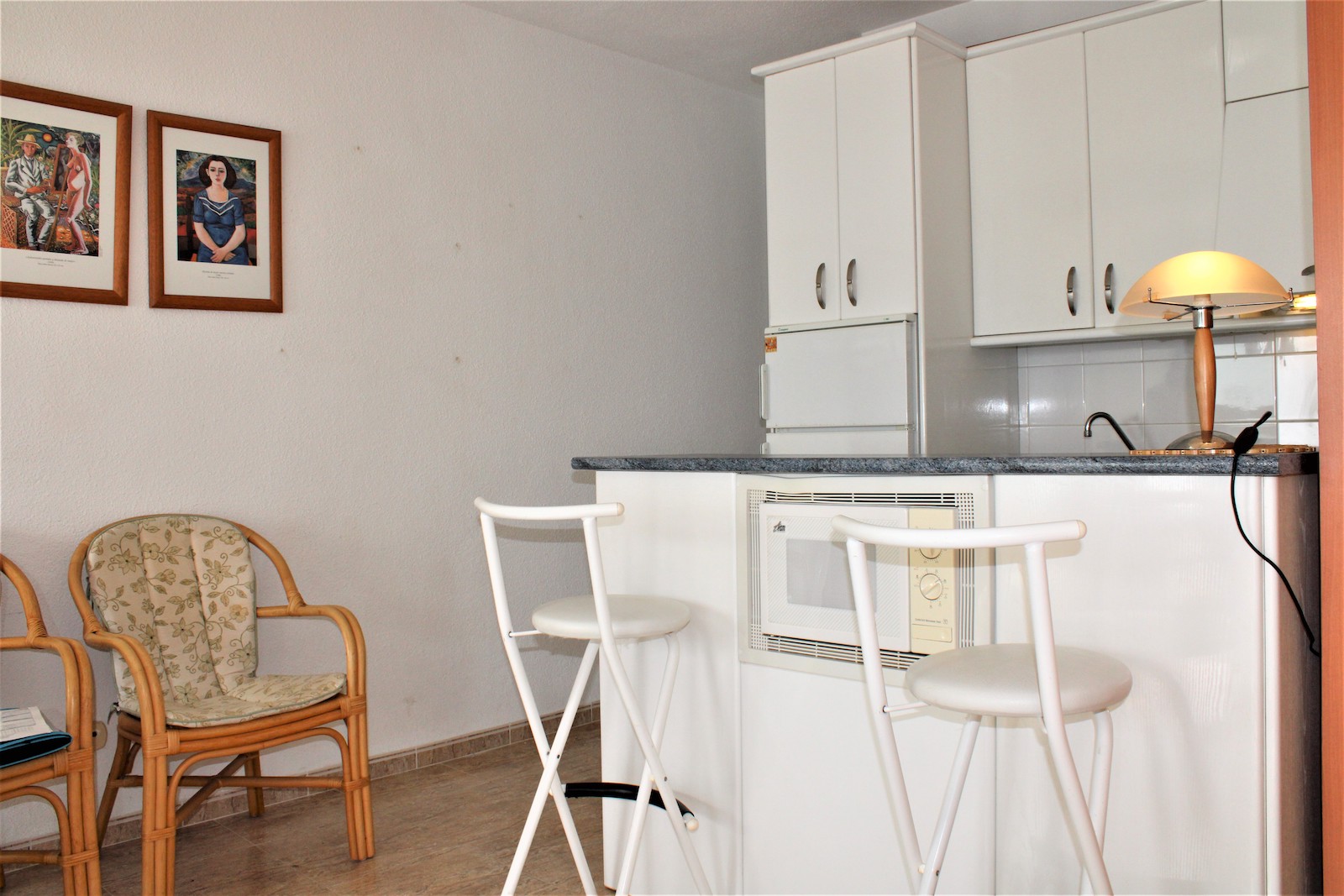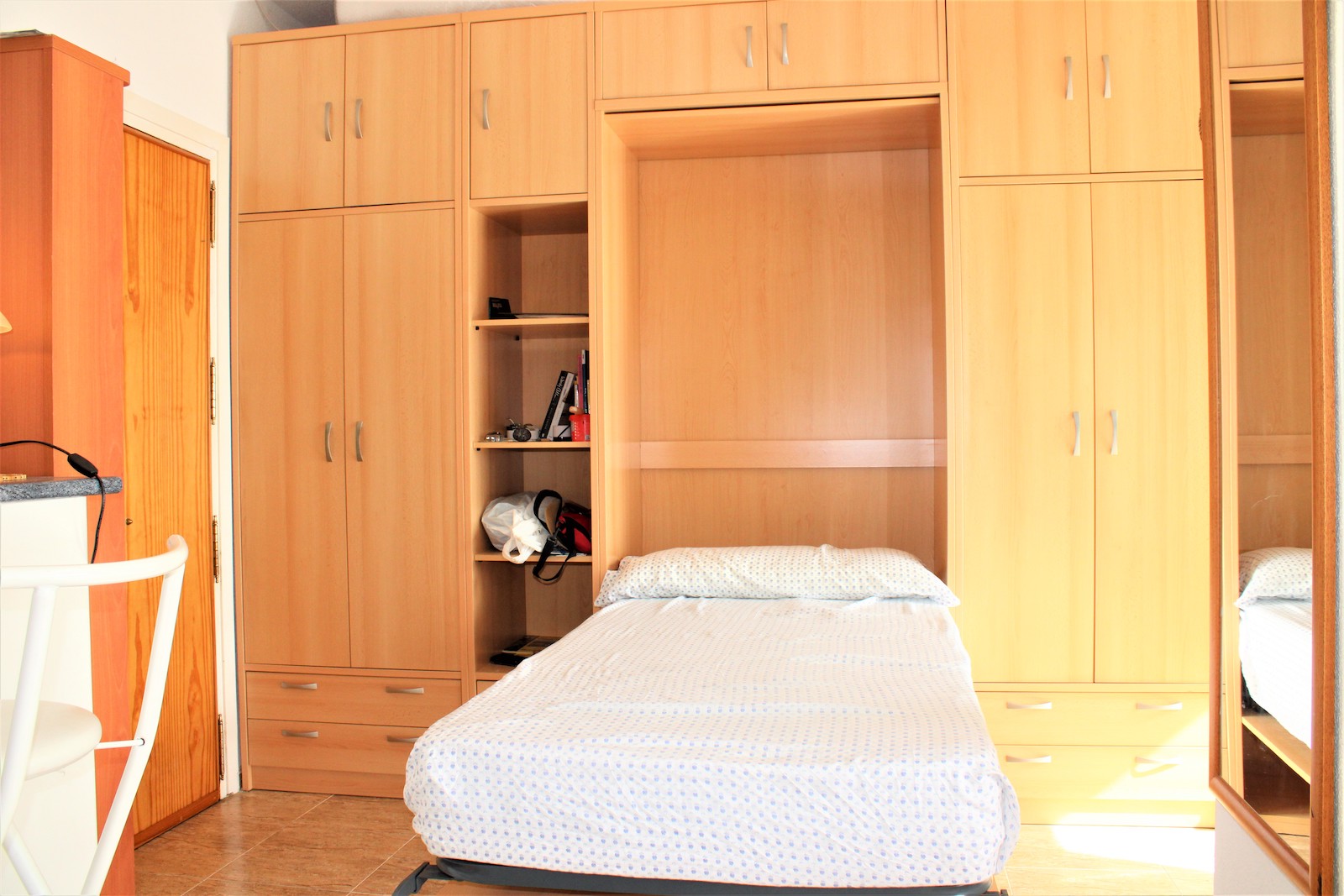Lägenheten har ett sovrum och ett badrum med dusch, med en öppen planlösning för kök och vardagsrum. Sovrummet har fläkt i taket och badrummet har tvättmaskin installerat. Lägenheten har gott om förvaringsutrymmen och det finns även en utfällbar säng i bokhyllan i vardagsrummet, samt att soffan är en bäddsoffa. Totalt plats för sex personer att sova. Boytan är på 58 kvm och inkluderar en inbyggd terrass. Säljs med alla möbler och vitvaror inkluderat. Fönster från golv till tak, vilket ger en fantastisk utsikt över Medelhavet och mycket ljus.