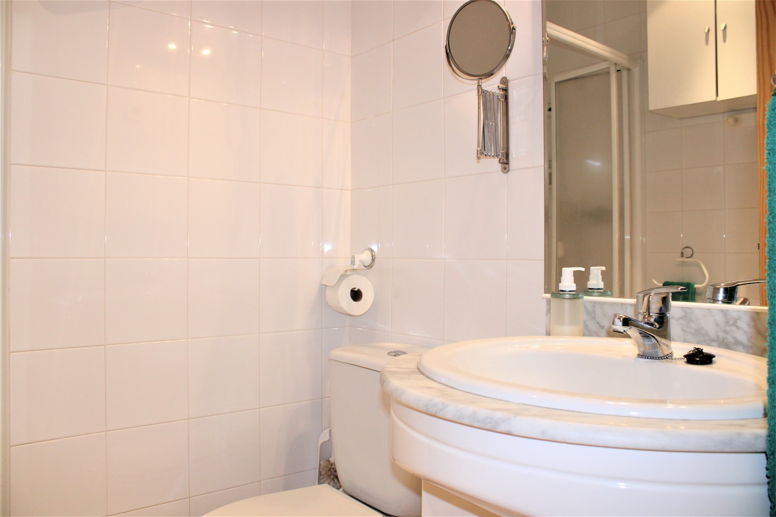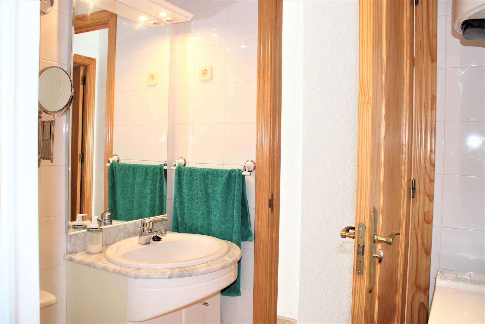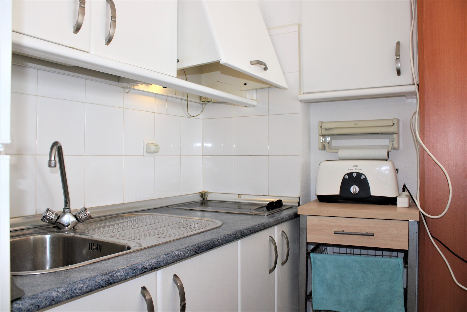 Lägenheten har ett sovrum och ett badrum med dusch, med en öppen planlösning för kök och vardagsrum. Sovrummet har fläkt i taket och badrummet har tvättmaskin installerat. Lägenheten har gott om förvaringsutrymmen och det finns även en utfällbar säng i bokhyllan i vardagsrummet, samt att soffan är en bäddsoffa. Totalt plats för sex personer att sova. Boytan är på 58 kvm och inkluderar en inbyggd terrass. Säljs med alla möbler och vitvaror inkluderat. Fönster från golv till tak, vilket ger en fantastisk utsikt över Medelhavet och mycket ljus.
