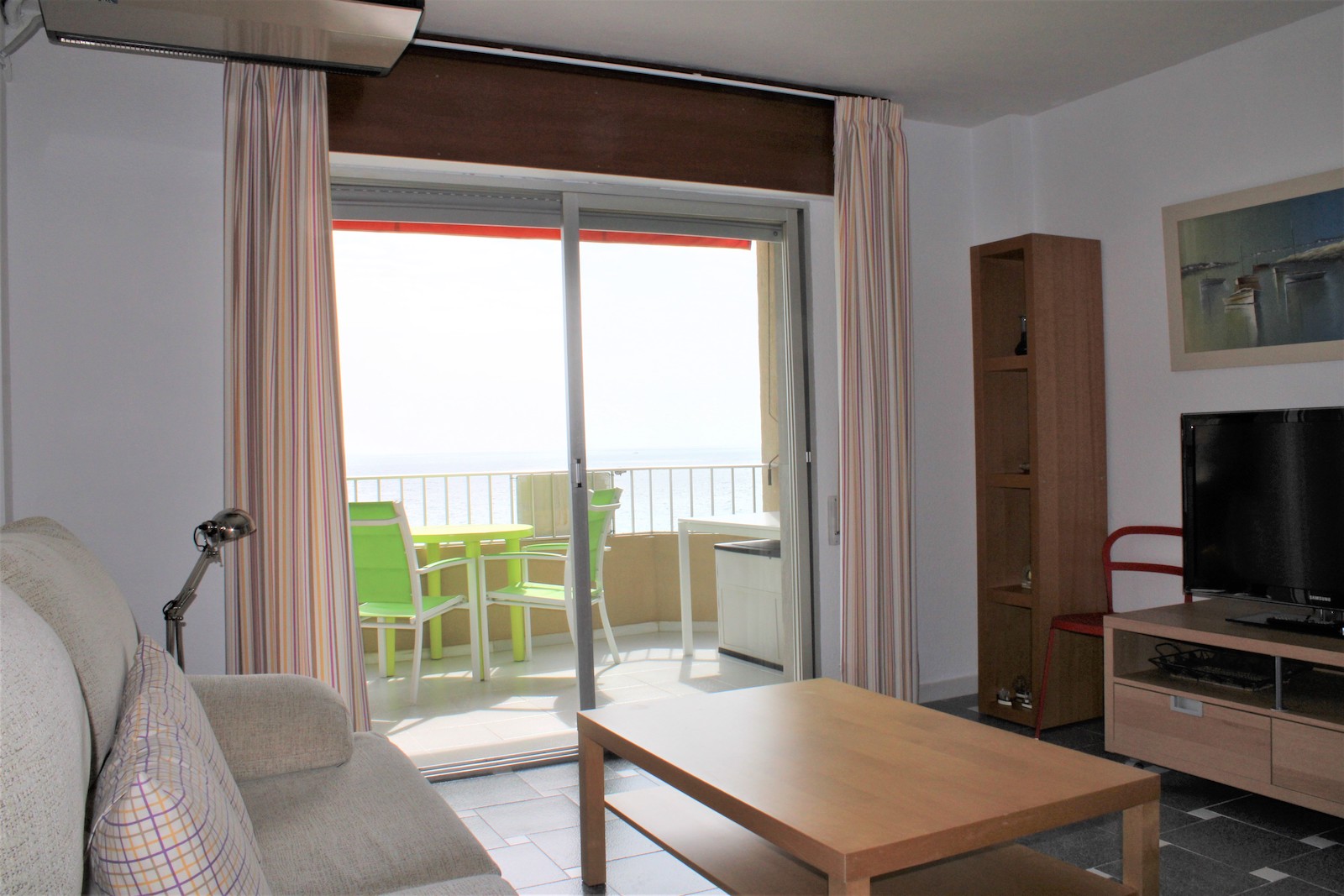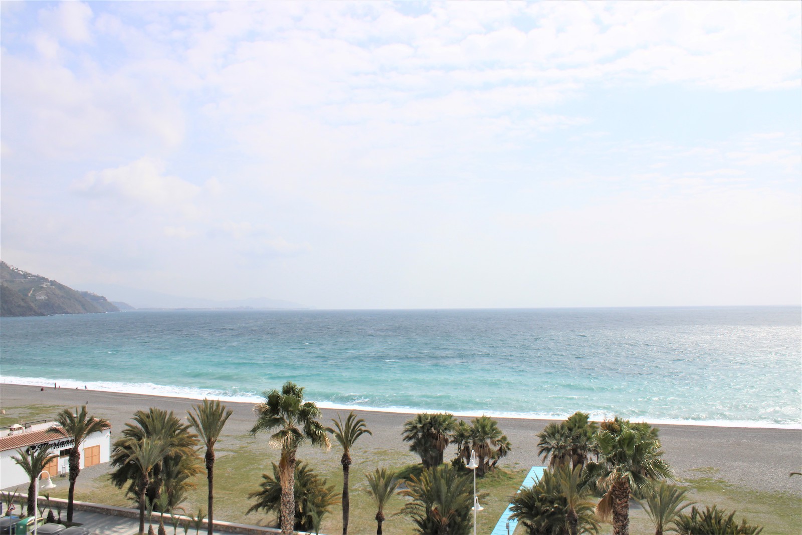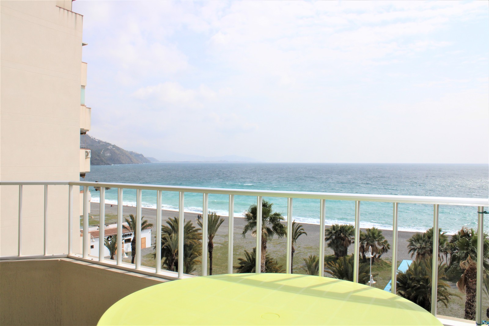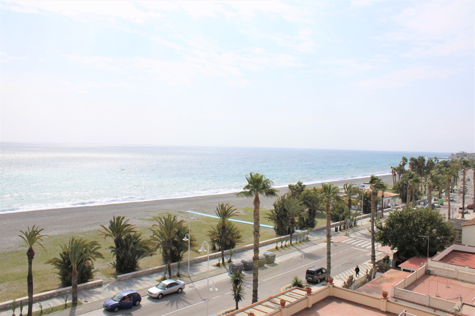 Ljus lägenhet med förstklassig utsikt över Medelhavet, belägen på femte våningen i en fastighet på första linjen i Almuñécar med 200 meter till stranden. Välskött lägenhet med air-condition för varm- och kalluft, två hissar finns i huset.