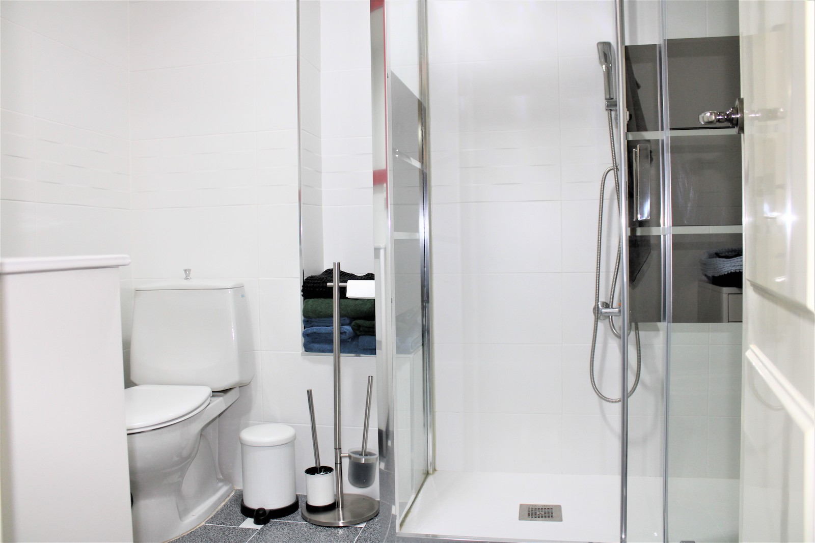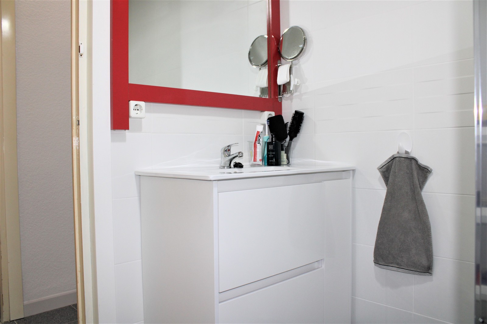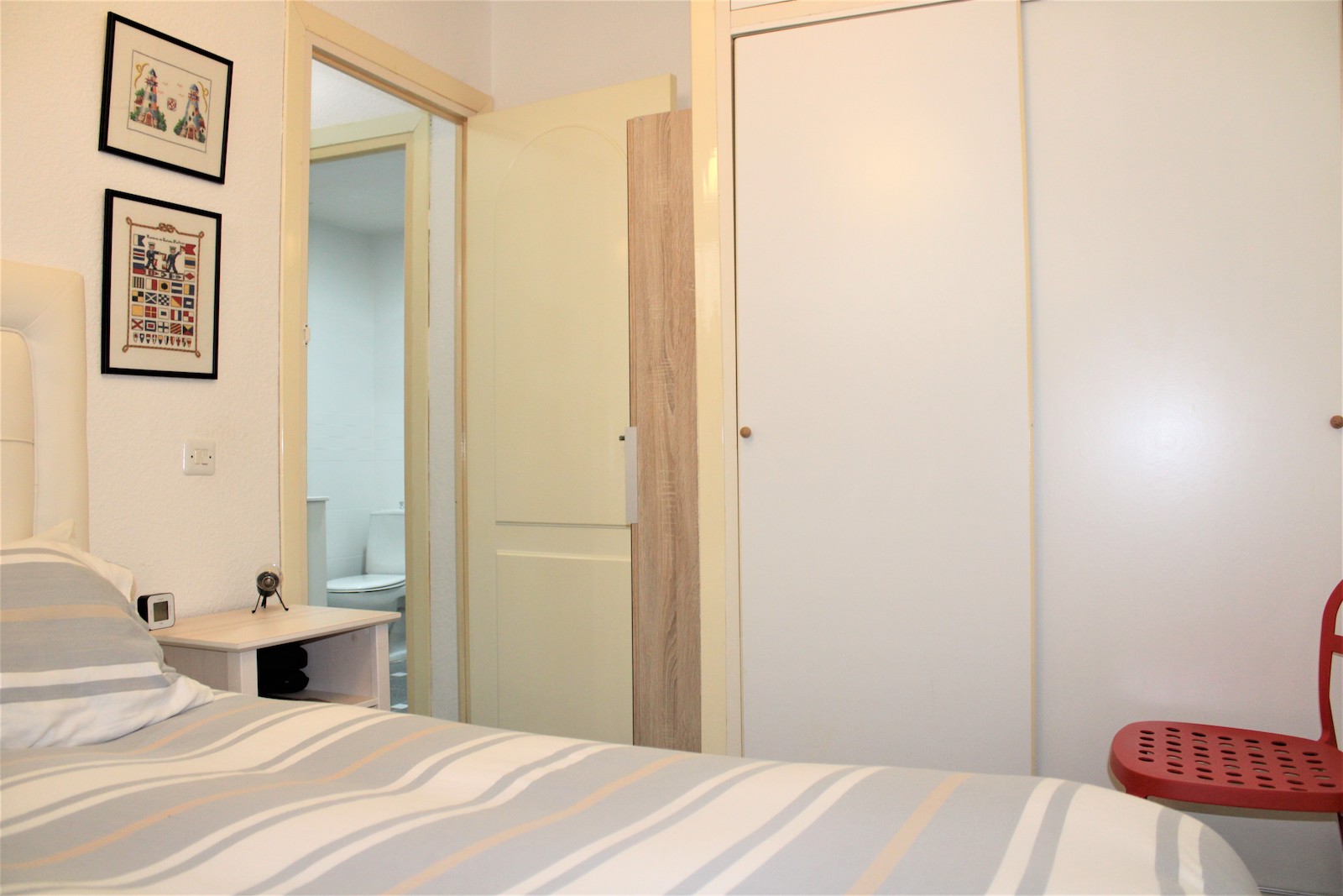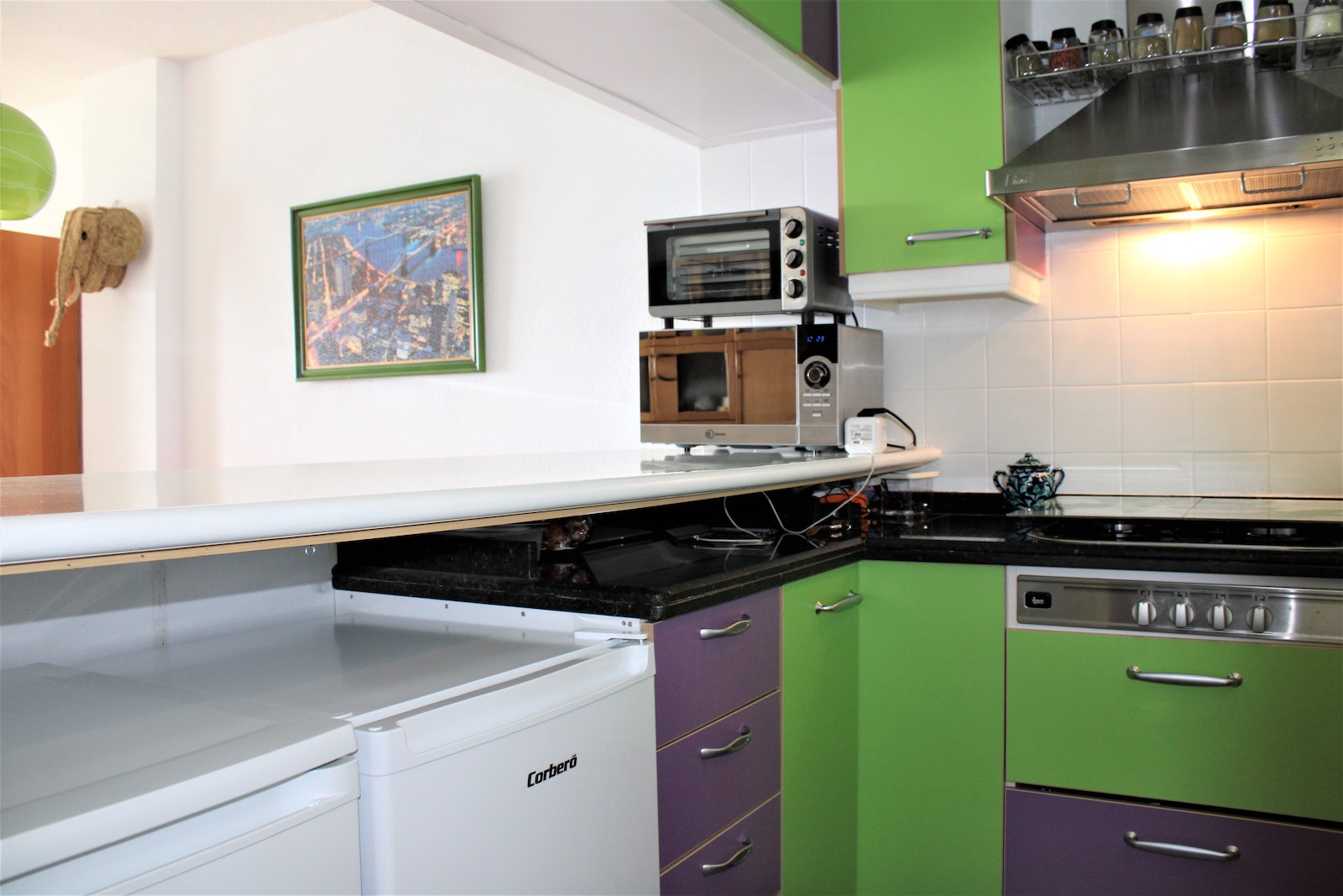 Lägenheten har två sovrum och ett badrum med dusch och bidé, öppen planlösning för kök och vardagsrum. Köket har tvättmaskin installerat. Den totala boytan är på 90 kvm, vilket inkluderar den härliga terrassen. Terrassen har givetvis havsutsikt och är vindskyddad på sidorna, så du kan njuta till fullo. Fönster från golv till tak i vardagsrummet, vilket ger en fantastisk utsikt över Medelhavet och mycket ljus.