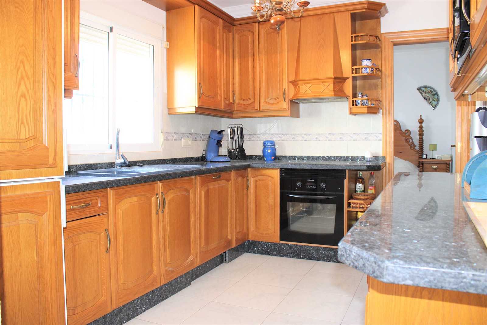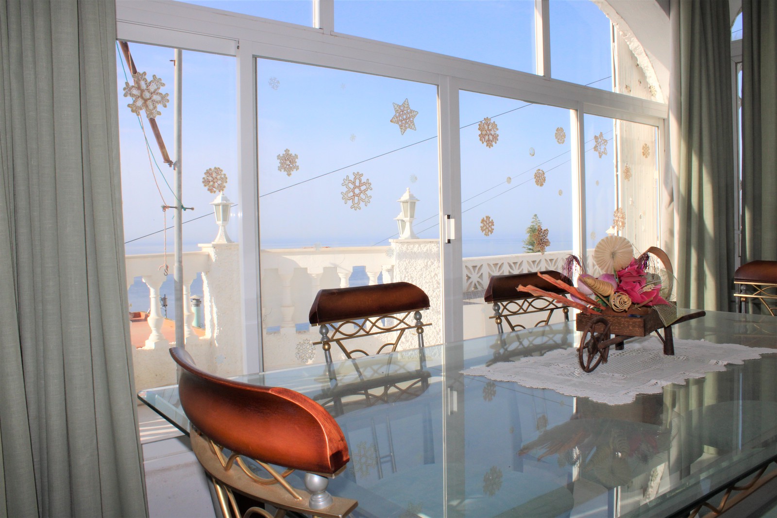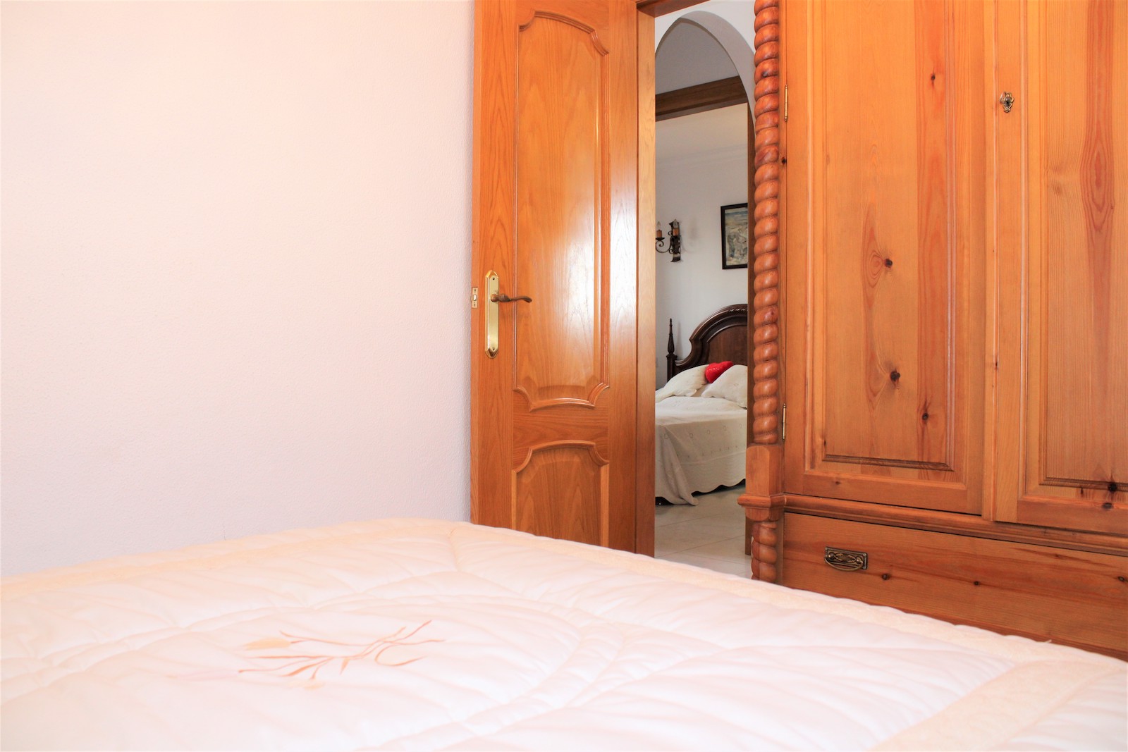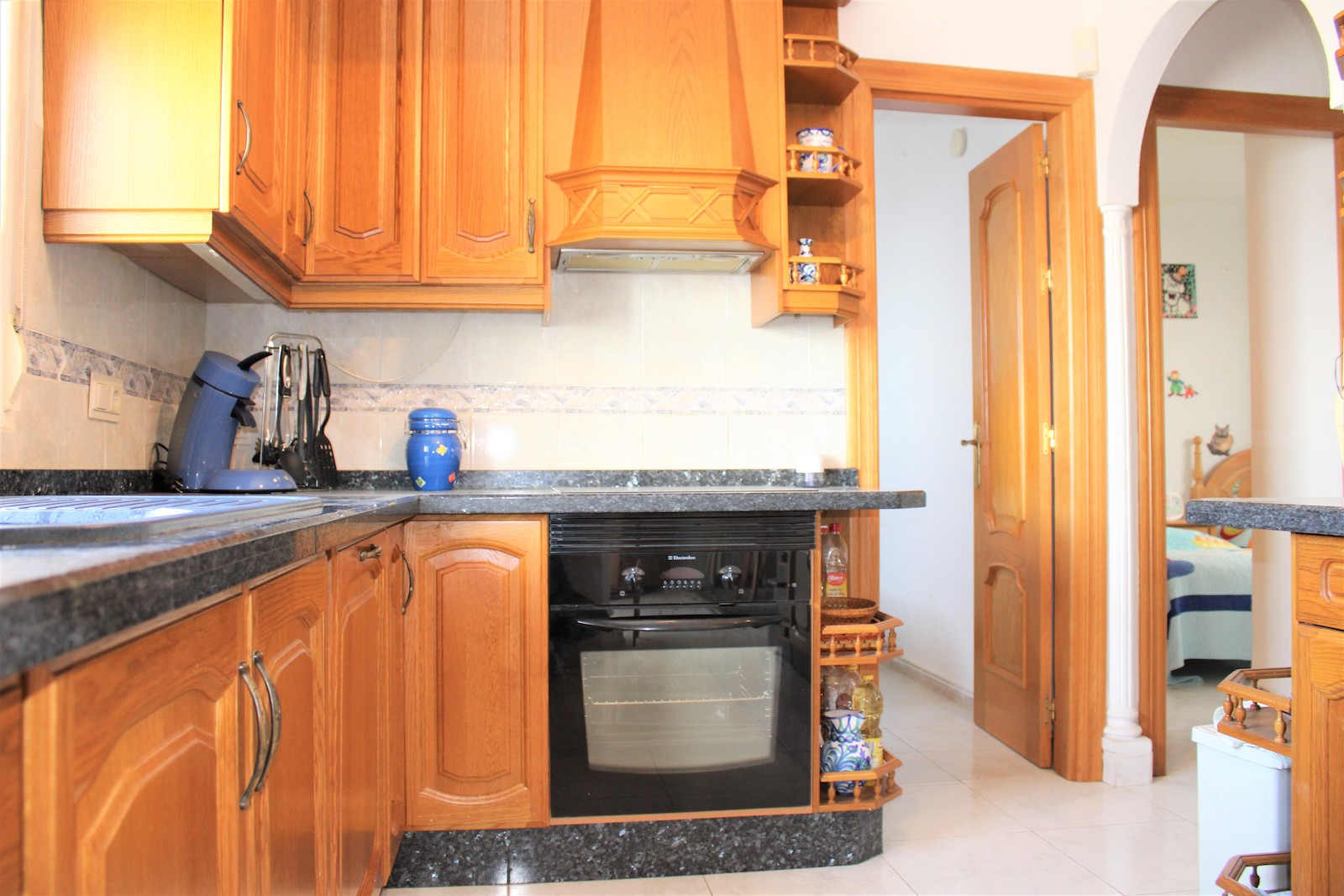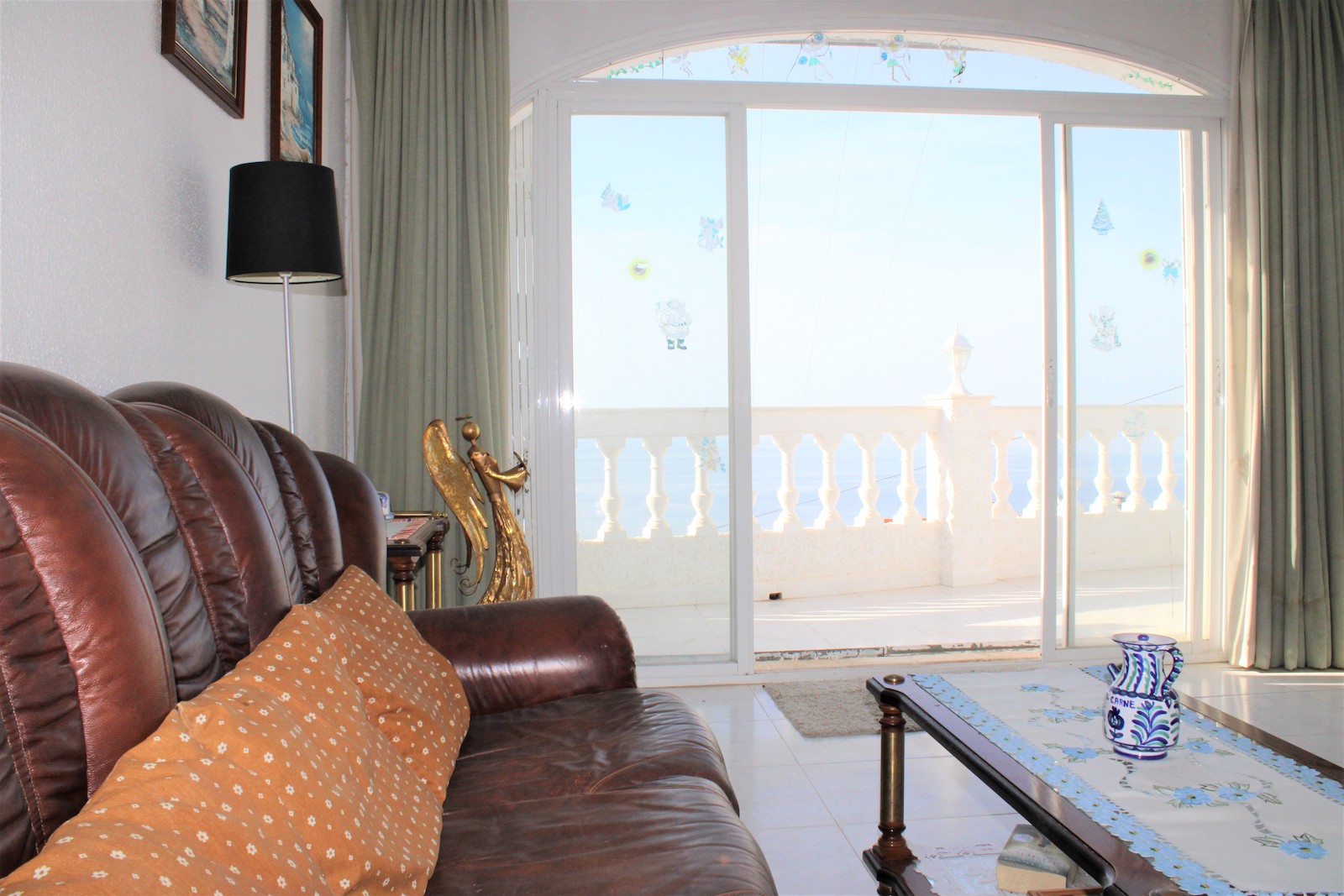 En välkomnande mosaikdekorerad trappa tar dig upp till terrassen som omgärdar villan, runt om finns även en medelhavsträdgård. När vi kommer in i huset, har vi vardagsrum, tv-rum och matplats i ett. Fönster från golv till tak i söderläge erbjuder dig en härlig utsikt över medelhavet och ger mycket ljus åt villan. Därefter kommer ett normalstort fullt utrustat kök, tre sovrum och ett badrum med dusch.