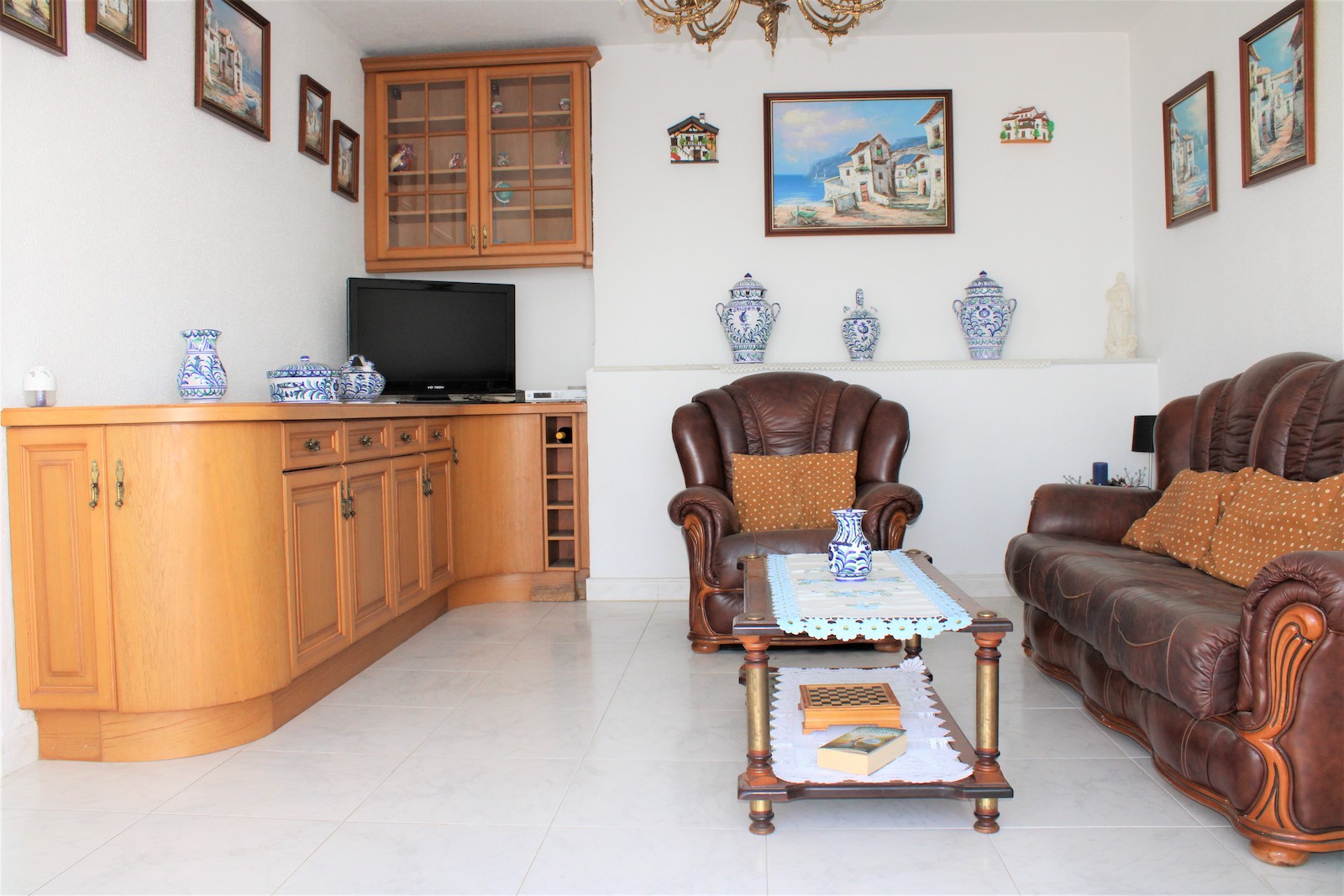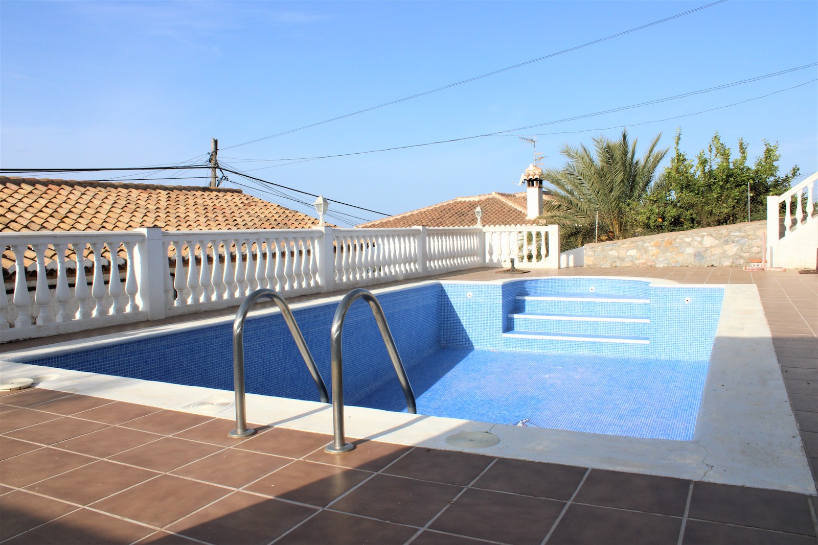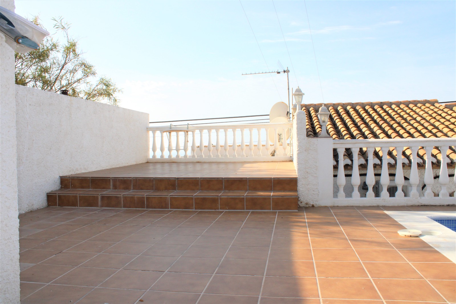 Gedigen enplansvilla i urbanisationen Alfa Mar, belägen mellan Almuñécar och Salobreña. Lättskött tomt på 482 kvm, boyta 100 kvm och ett privat garage på 9 kvm. Den stora poolen och solariet ligger en trappa upp från huset sett och erbjuder en underbar utsikt från den terrass som ligger där, här finns även en gäststuga med toalett.
