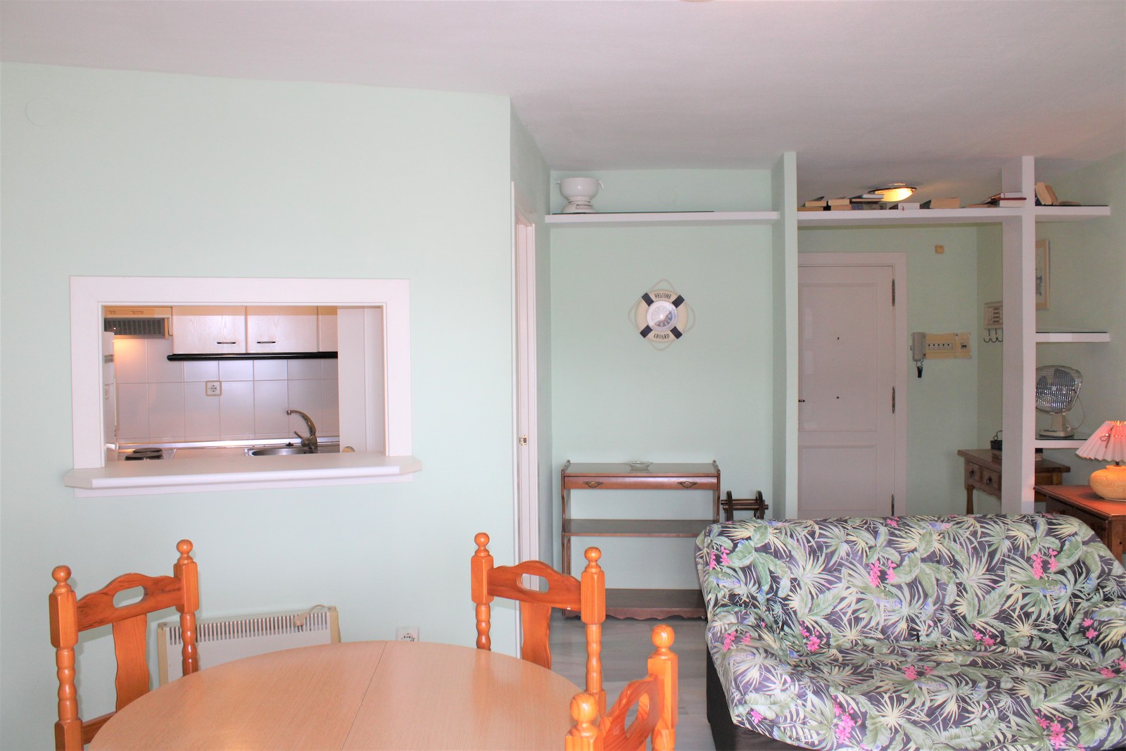 Ljus rymlig lägenhet på första linjen med härlig utsikt över Medelhavet, belägen högst upp på elfte våningen i en välskött fastighet med endast 50 meter till stranden i Velilla-Taramay. Tre hissar finns i huset och gemensam pool på området, lägenheten säljs möblerad.