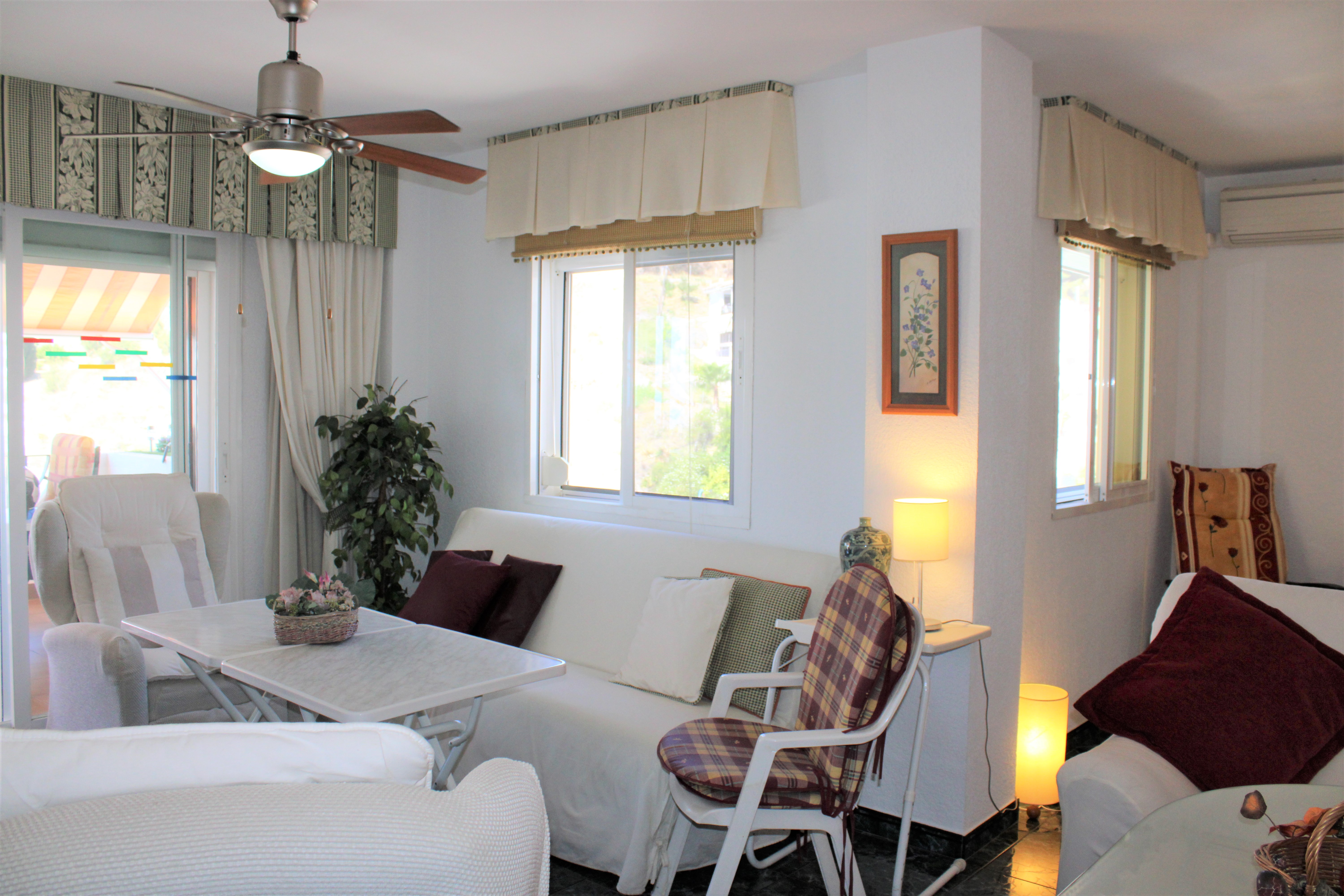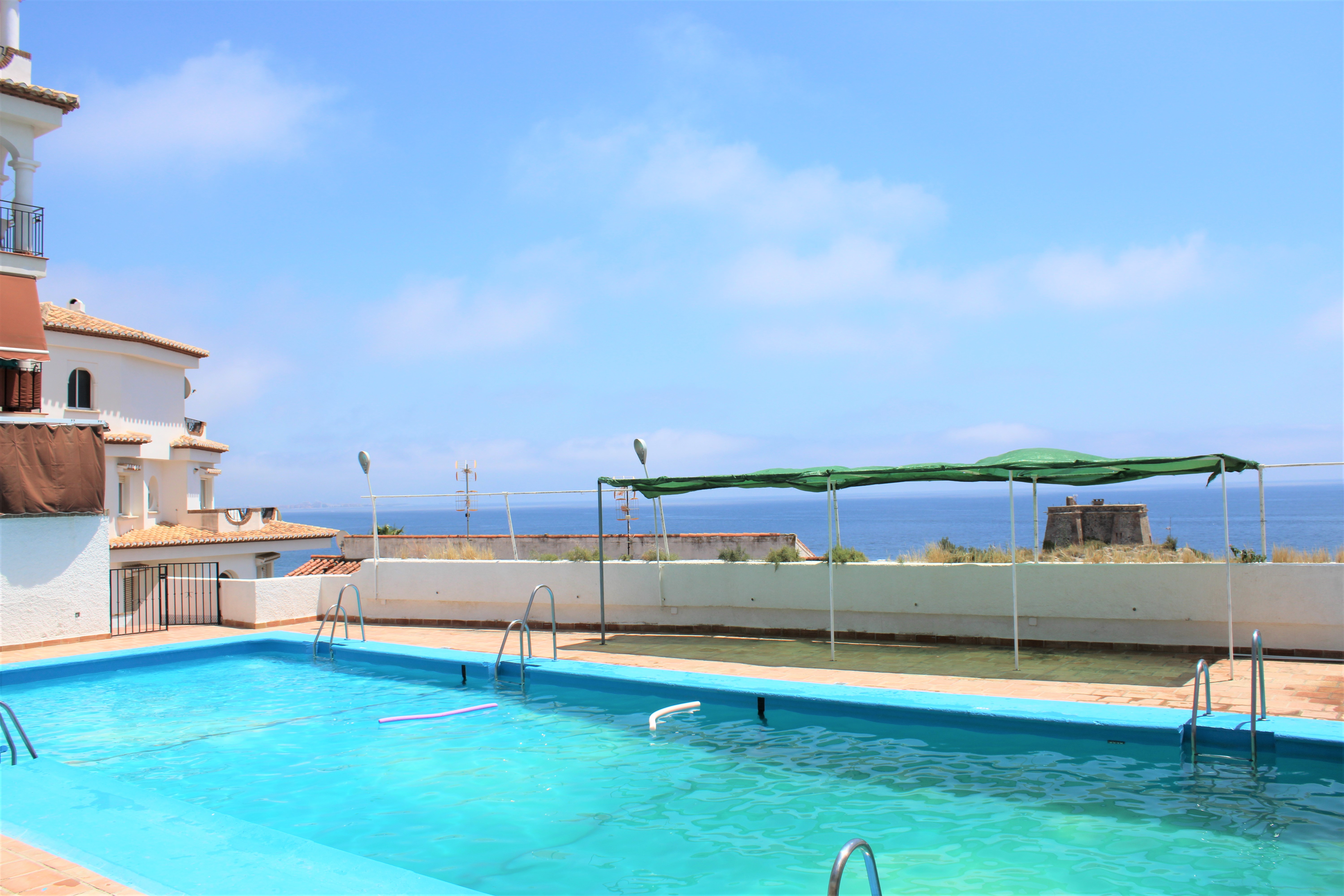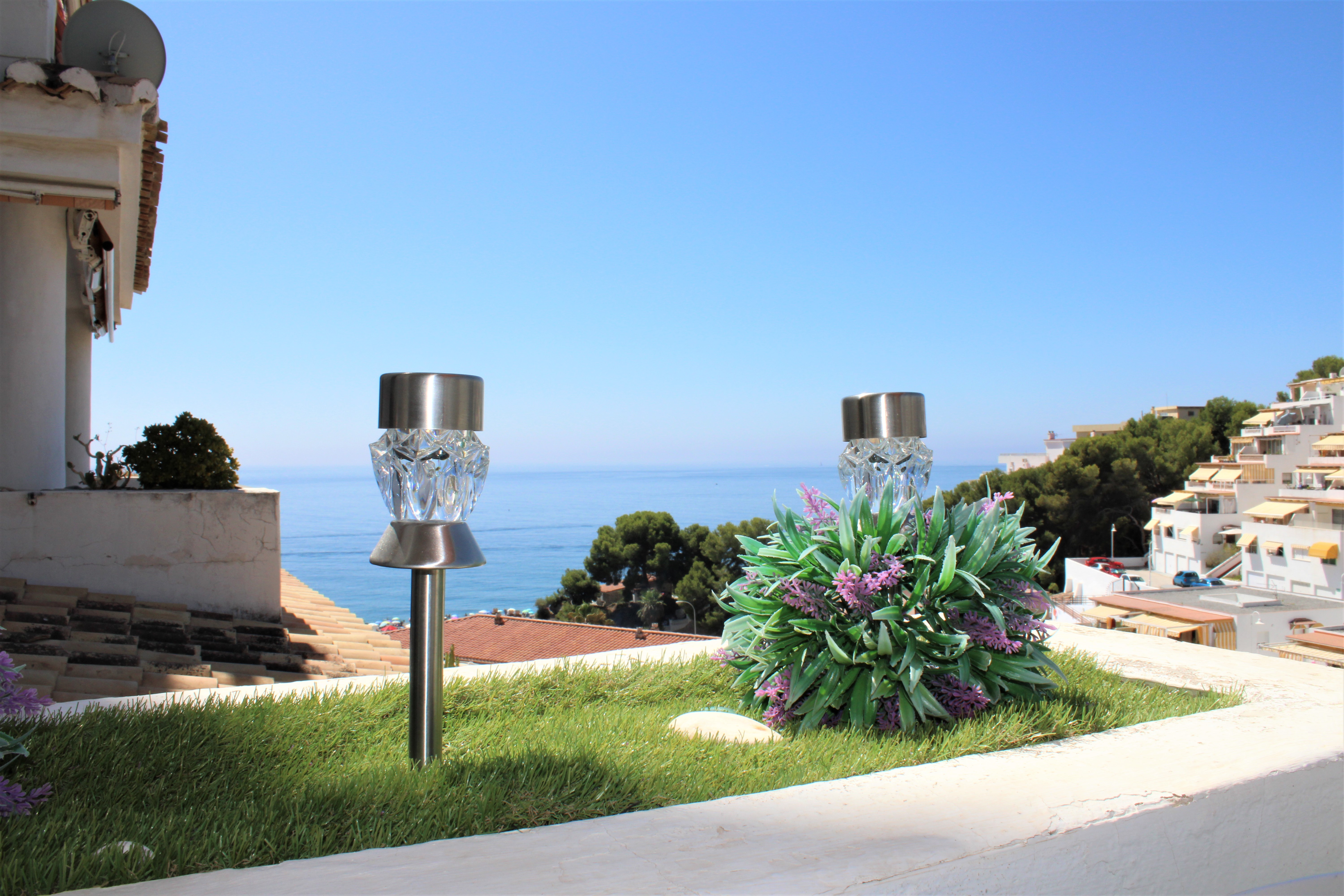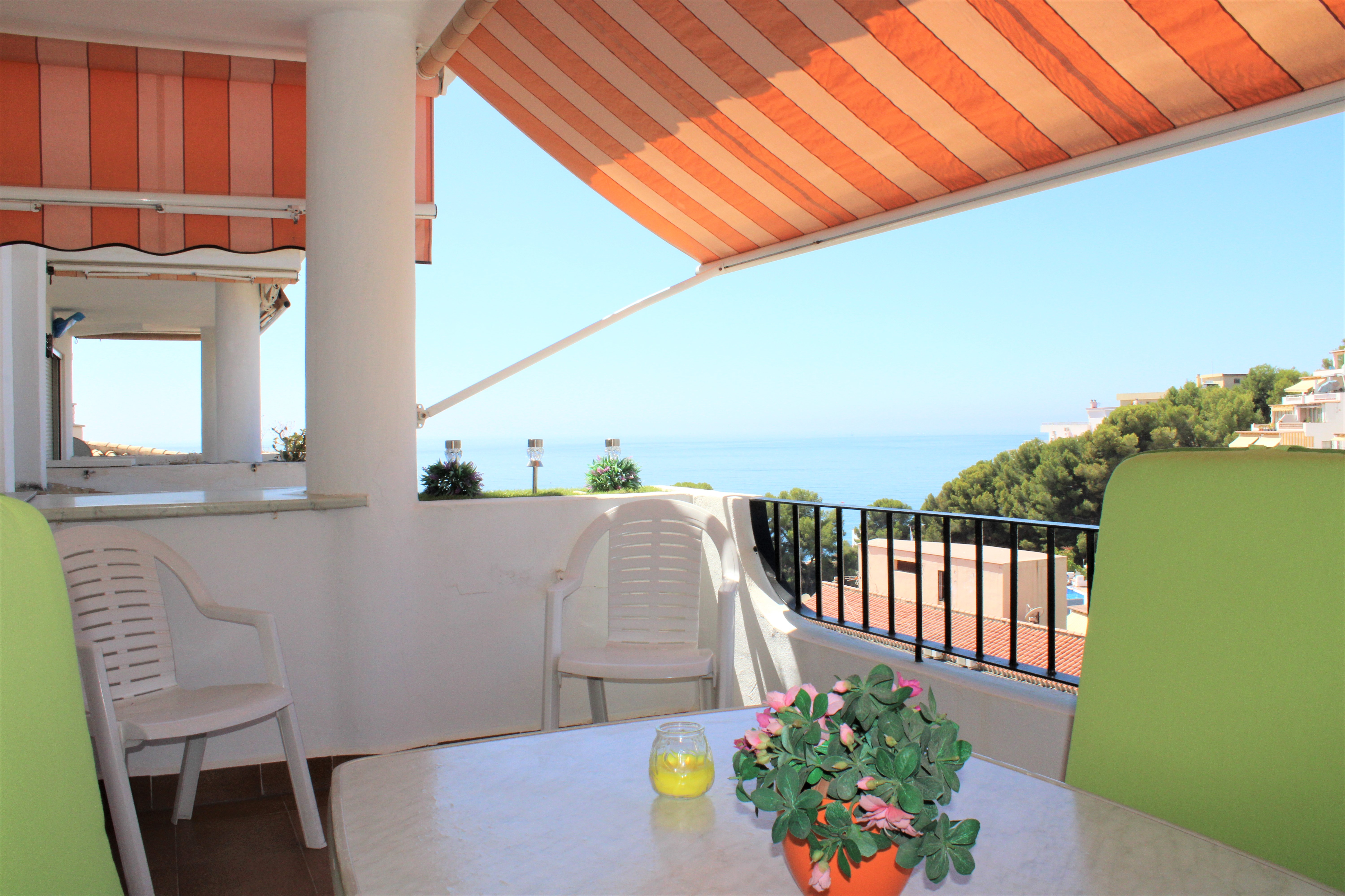 Välskött stor ljus lägenhet med en härlig terrass och underbar utsikt över Medelhavet och bergen, belägen i en ”gated community” och endast 150 meter från stranden. Ligger på sjunde våningen och hissen stannar precis framför entrédörren, porttelefon finns. Inga grannar på någon av sidorna av lägenheten, vilket gör att ni slipper höra prat genom väggarna. Stor gemensam pool på området, ligger endast en trappa ned från lägenheten. Utöver den gemensamma parkeringen som finns, finns för trapphuset där lägenheten är belägen, ett låsbart område som till exempel passar utmärkt för långtidsparkering.