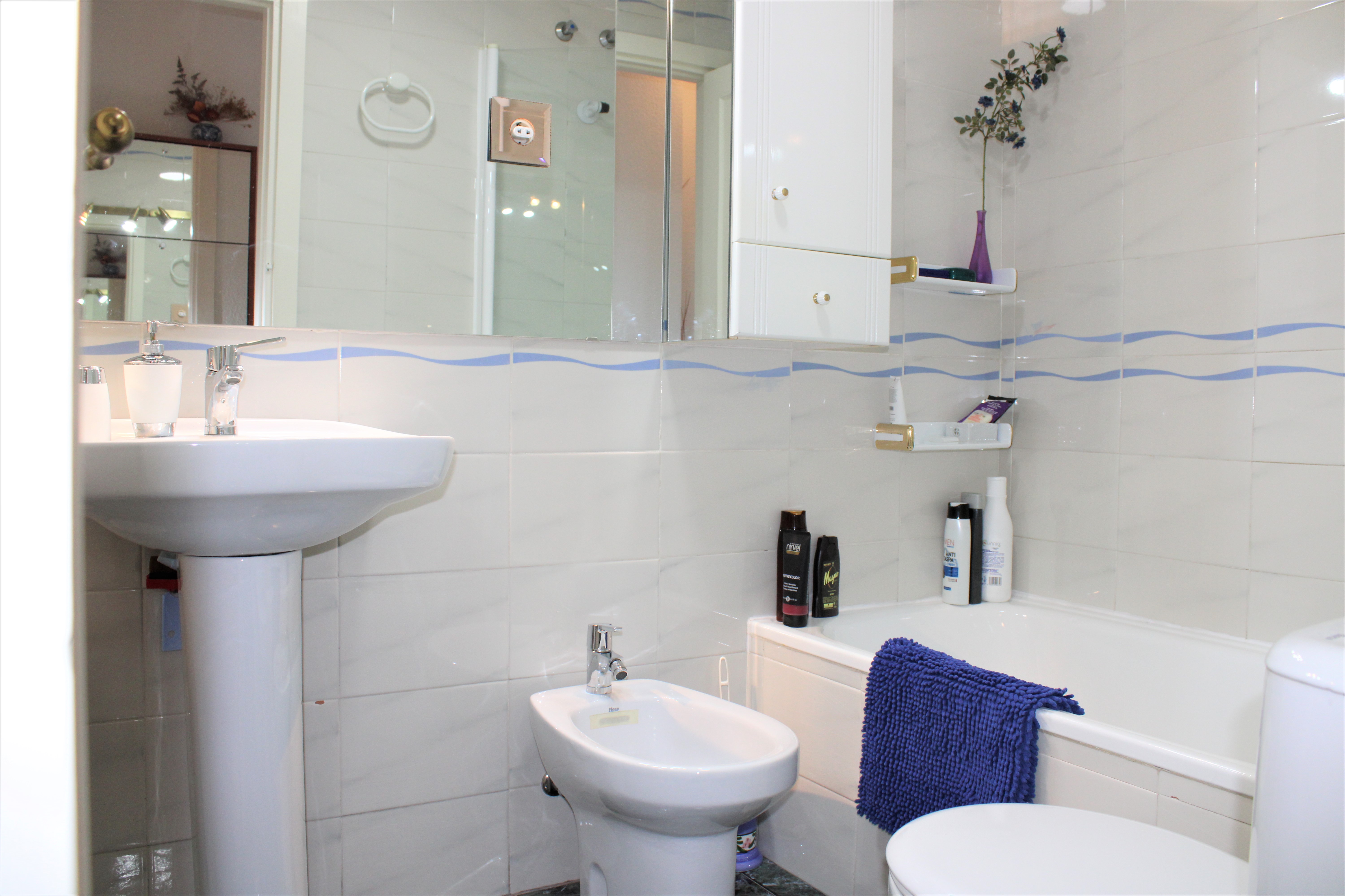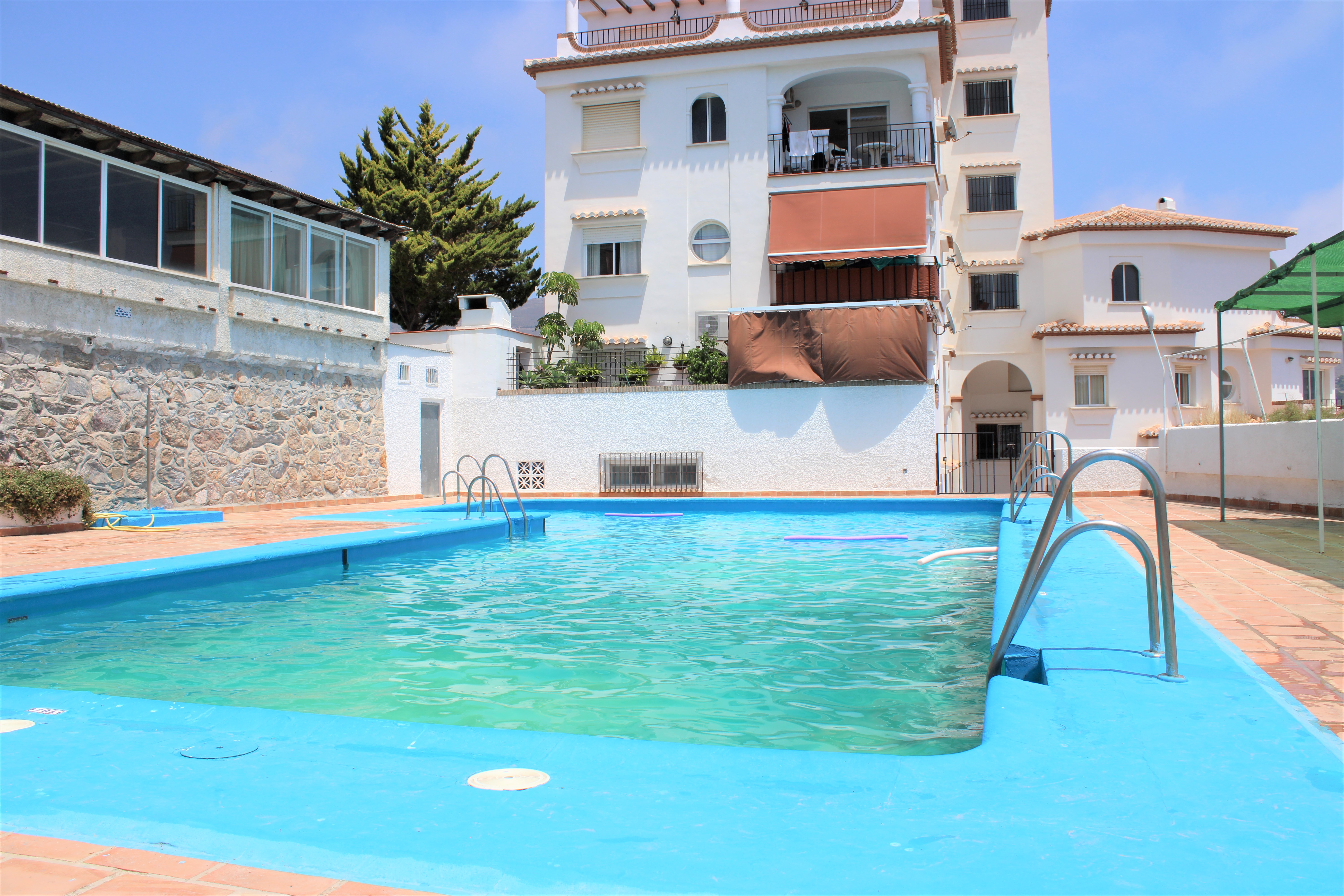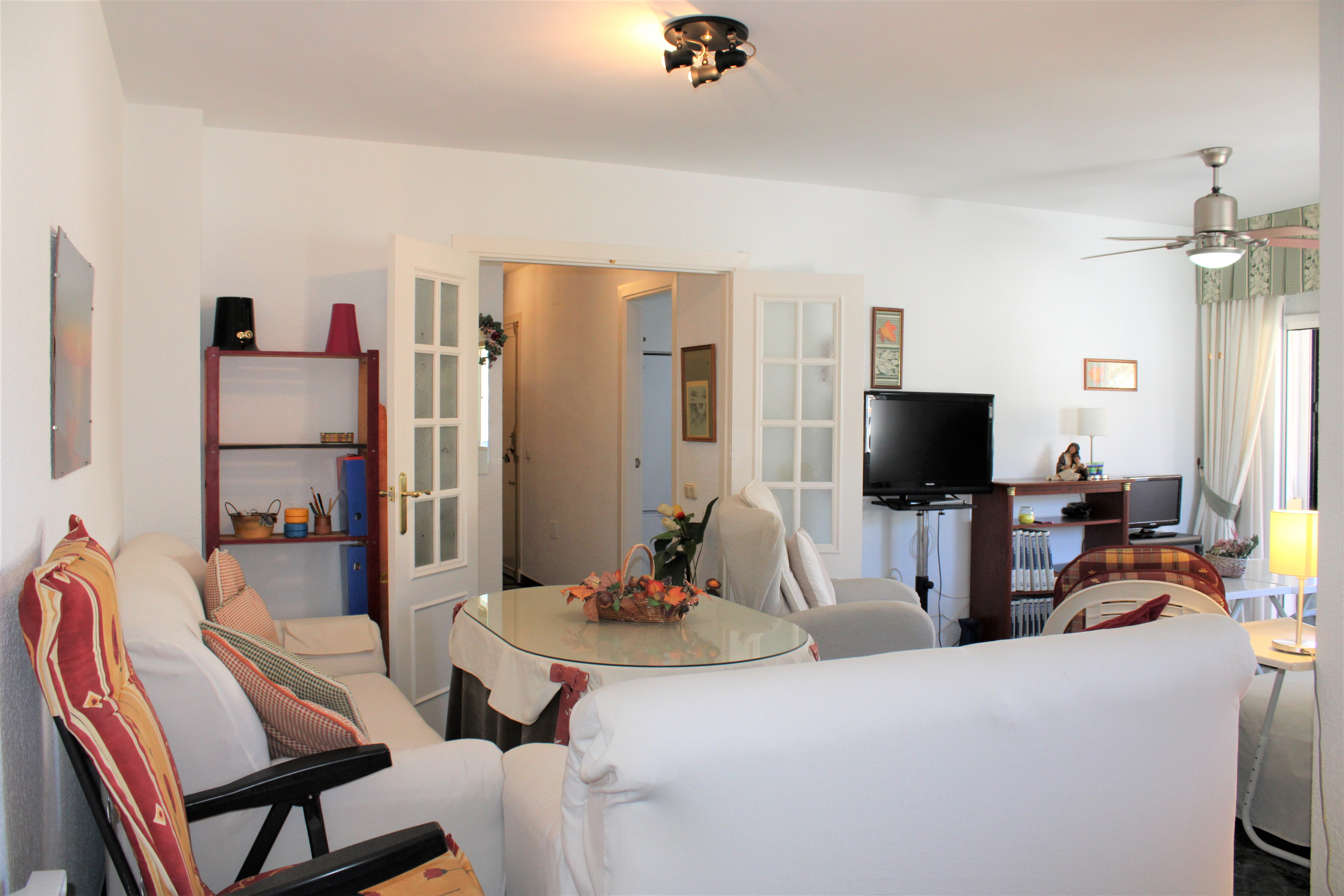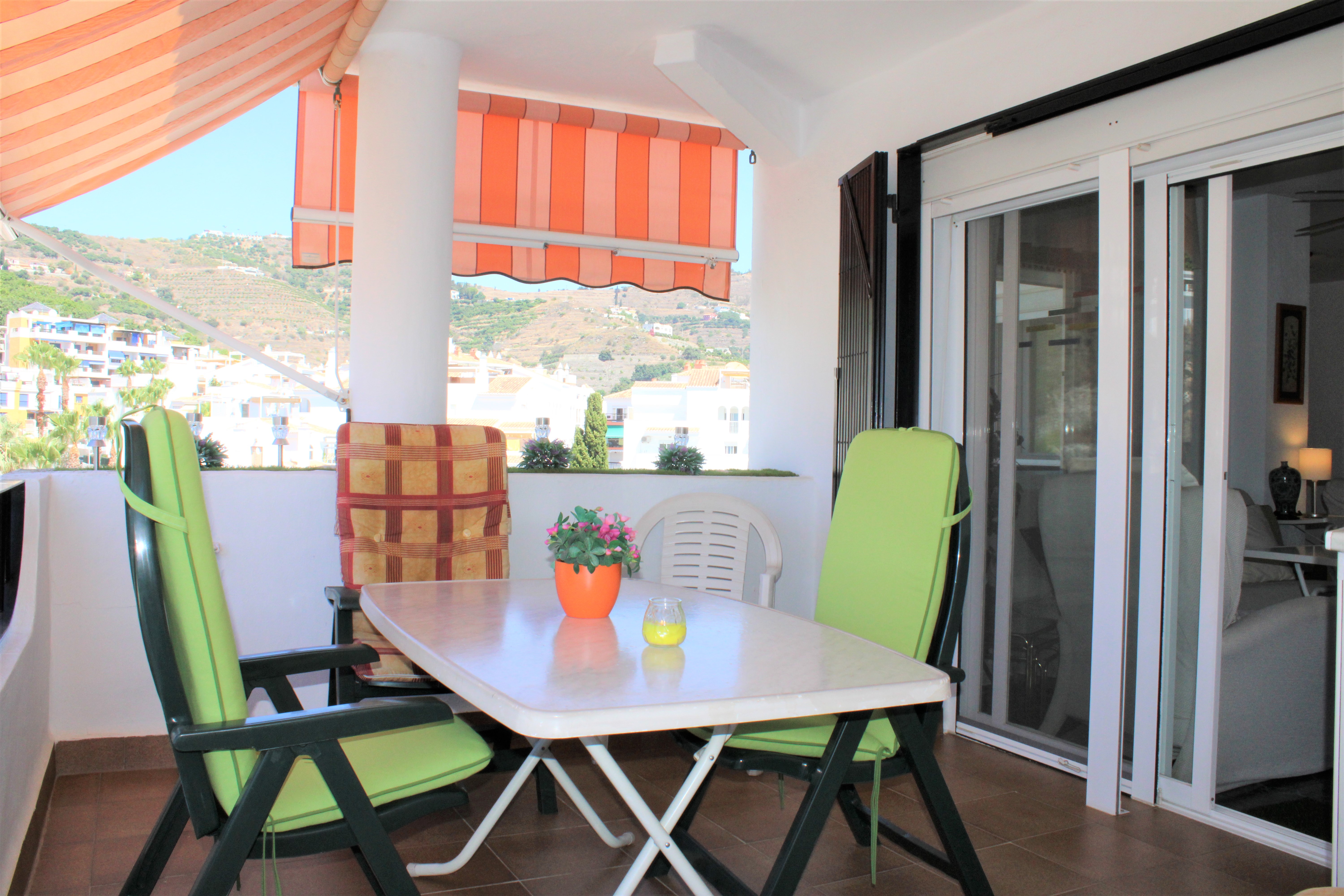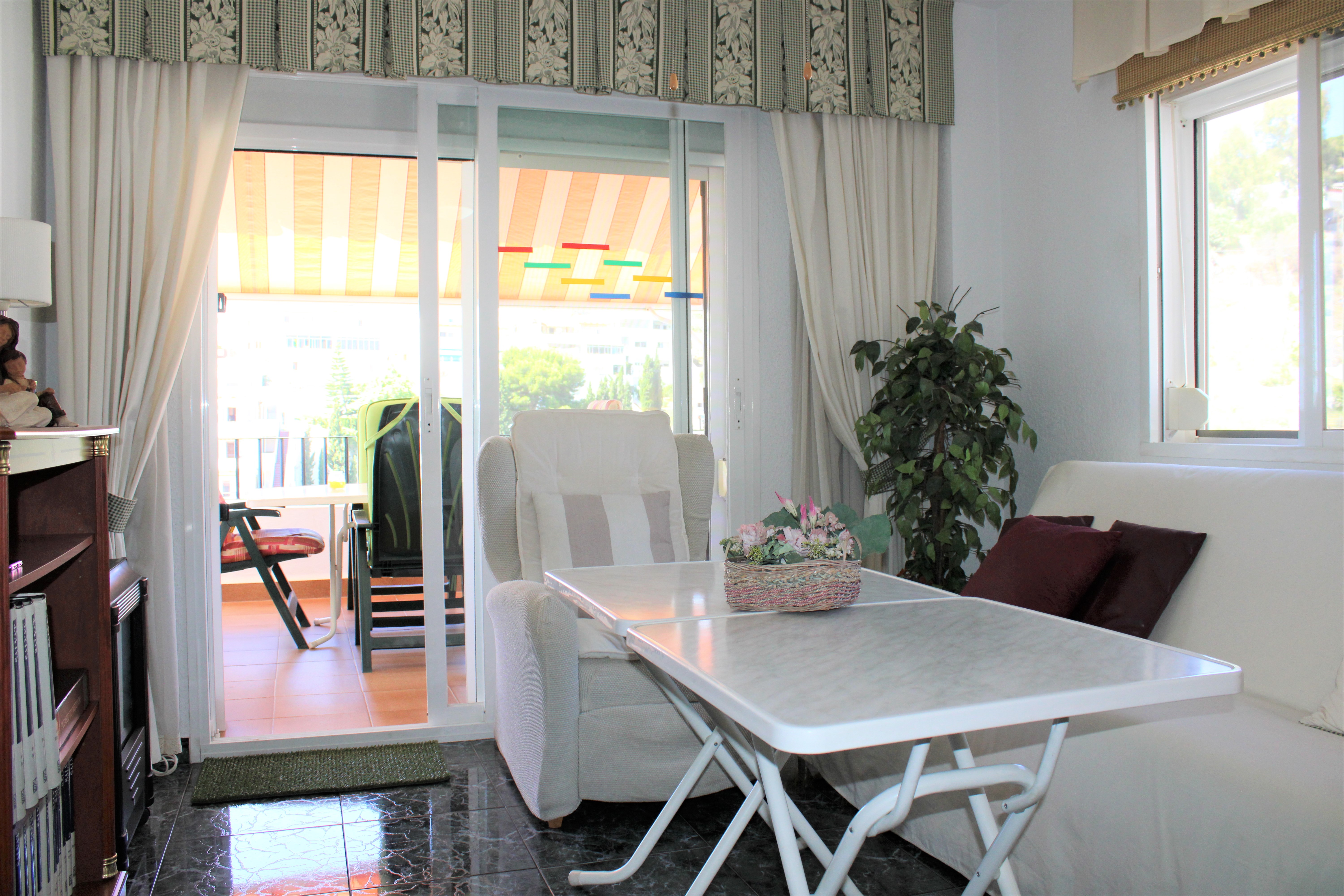 Välskött stor ljus lägenhet med en härlig terrass och underbar utsikt över Medelhavet och bergen, belägen i en ”gated community” och endast 150 meter från stranden. Ligger på sjunde våningen och hissen stannar precis framför entrédörren, porttelefon finns. Inga grannar på någon av sidorna av lägenheten, vilket gör att ni slipper höra prat genom väggarna. Stor gemensam pool på området, ligger endast en trappa ned från lägenheten. Utöver den gemensamma parkeringen som finns, finns för trapphuset där lägenheten är belägen, ett låsbart område som till exempel passar utmärkt för långtidsparkering.