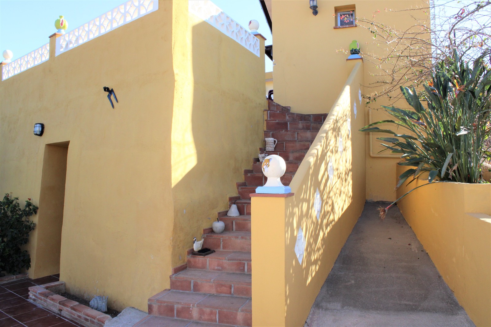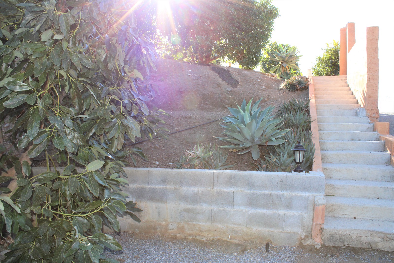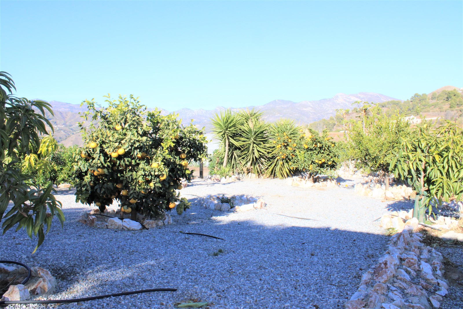 Vi går nerför trappan och hittar den första av två, välskötta fruktträdgårdar. Här ligger det andra boendet, med ett sovrum och ett badrum med dusch. Ni hittar även en stor källare med stora möjligheter och förvaringsutrymmen, här har ägaren påbörjat en spa-avdelning. Väl ute ur källaren, går vi ned en trappa till och hittar där den andra välskötta fruktträdgården.